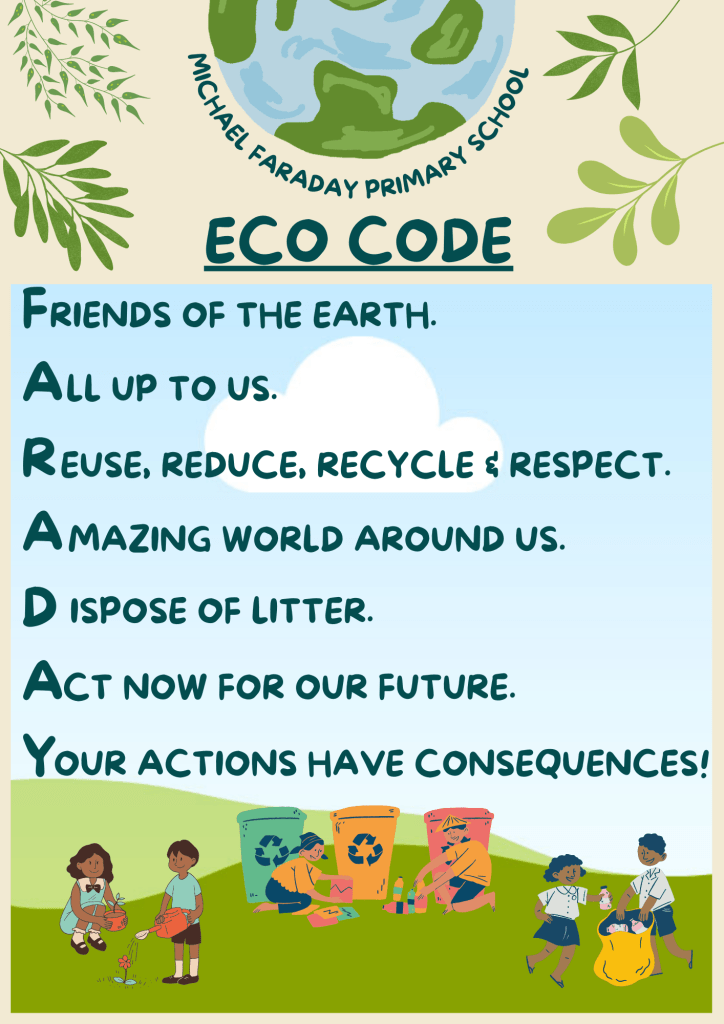 Our application for the Eco Schools Green Flag represents the culmination of our dedication to building a sustainable future for generations to come which is reflected in our whole school eco code.