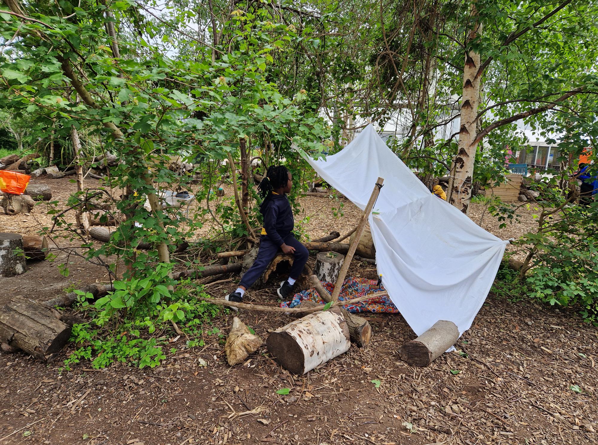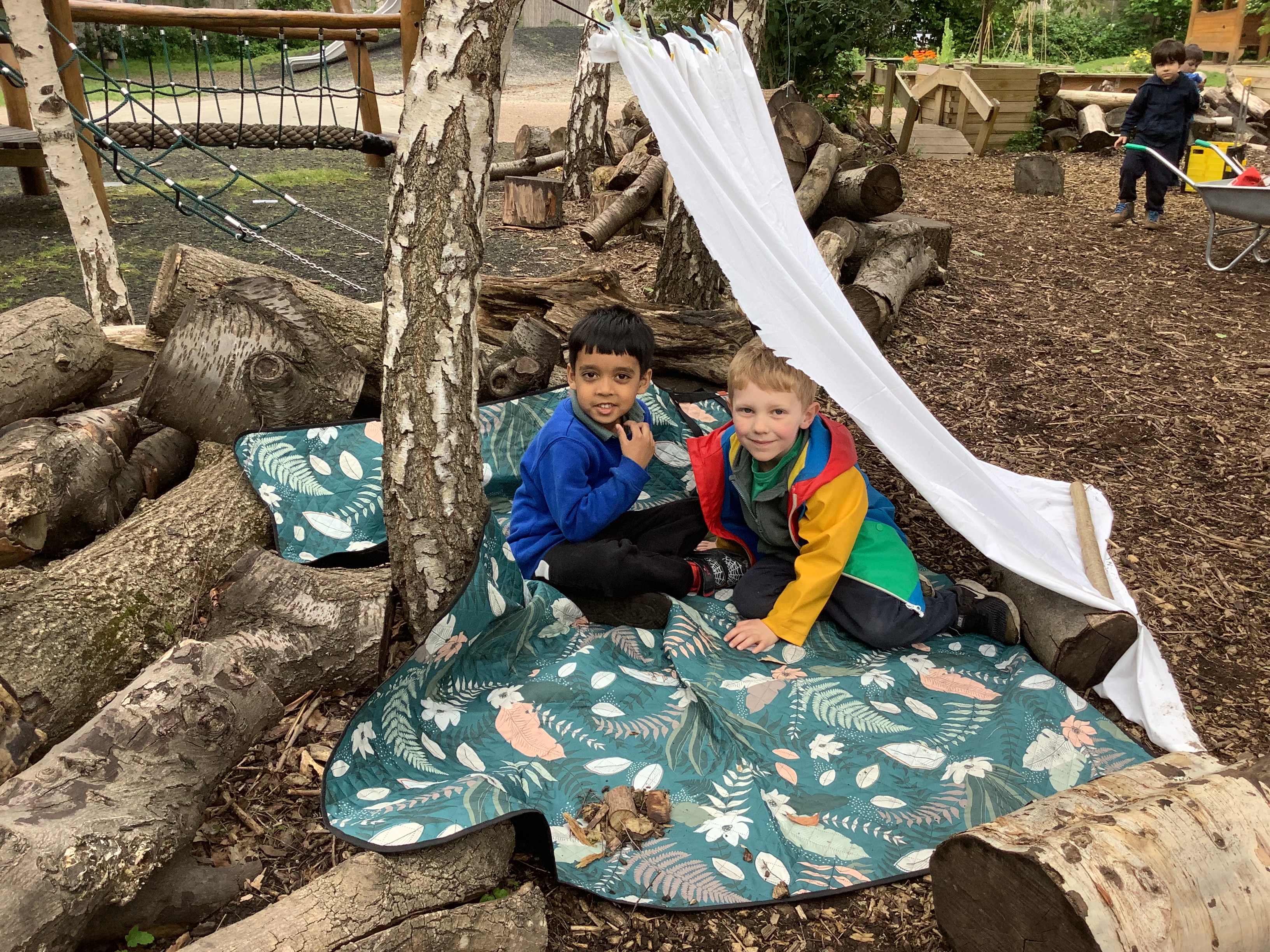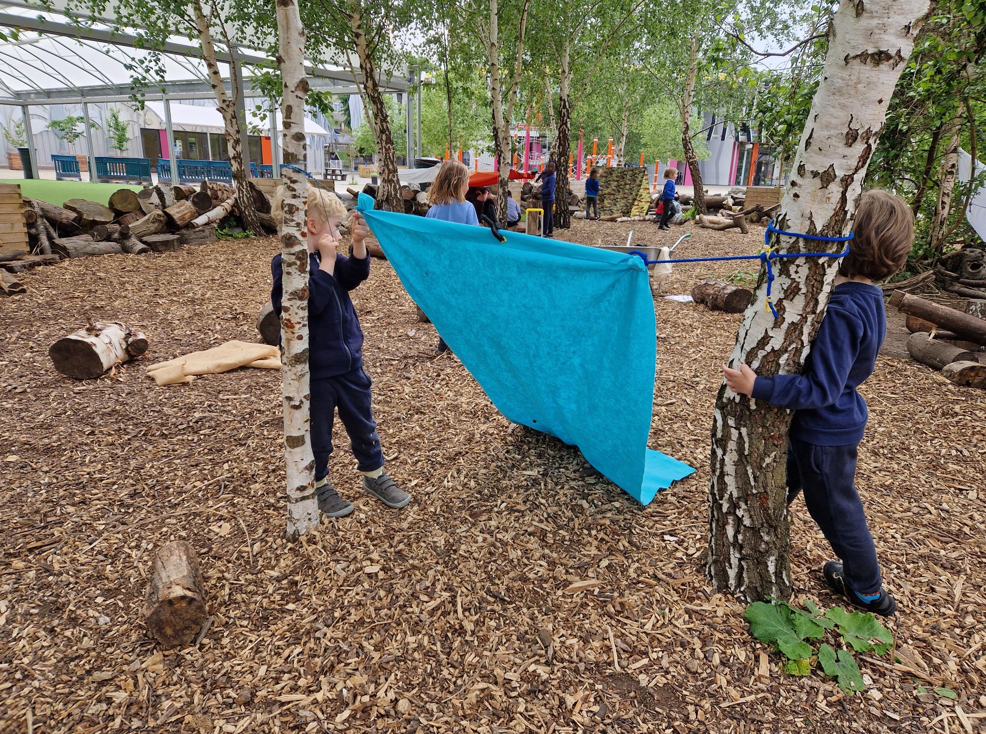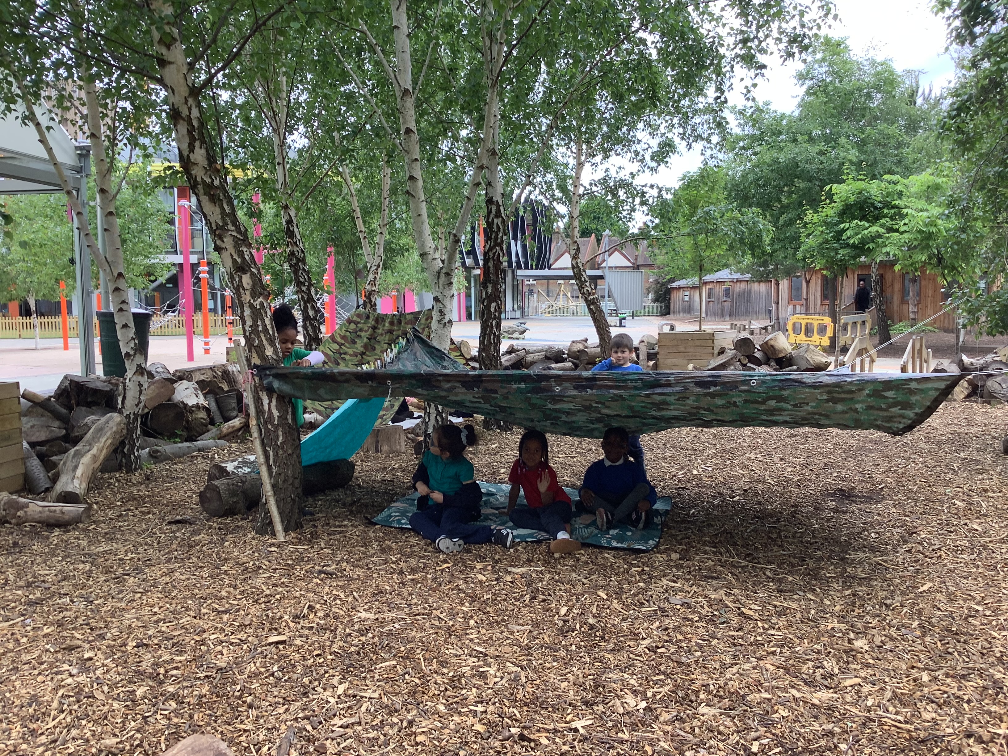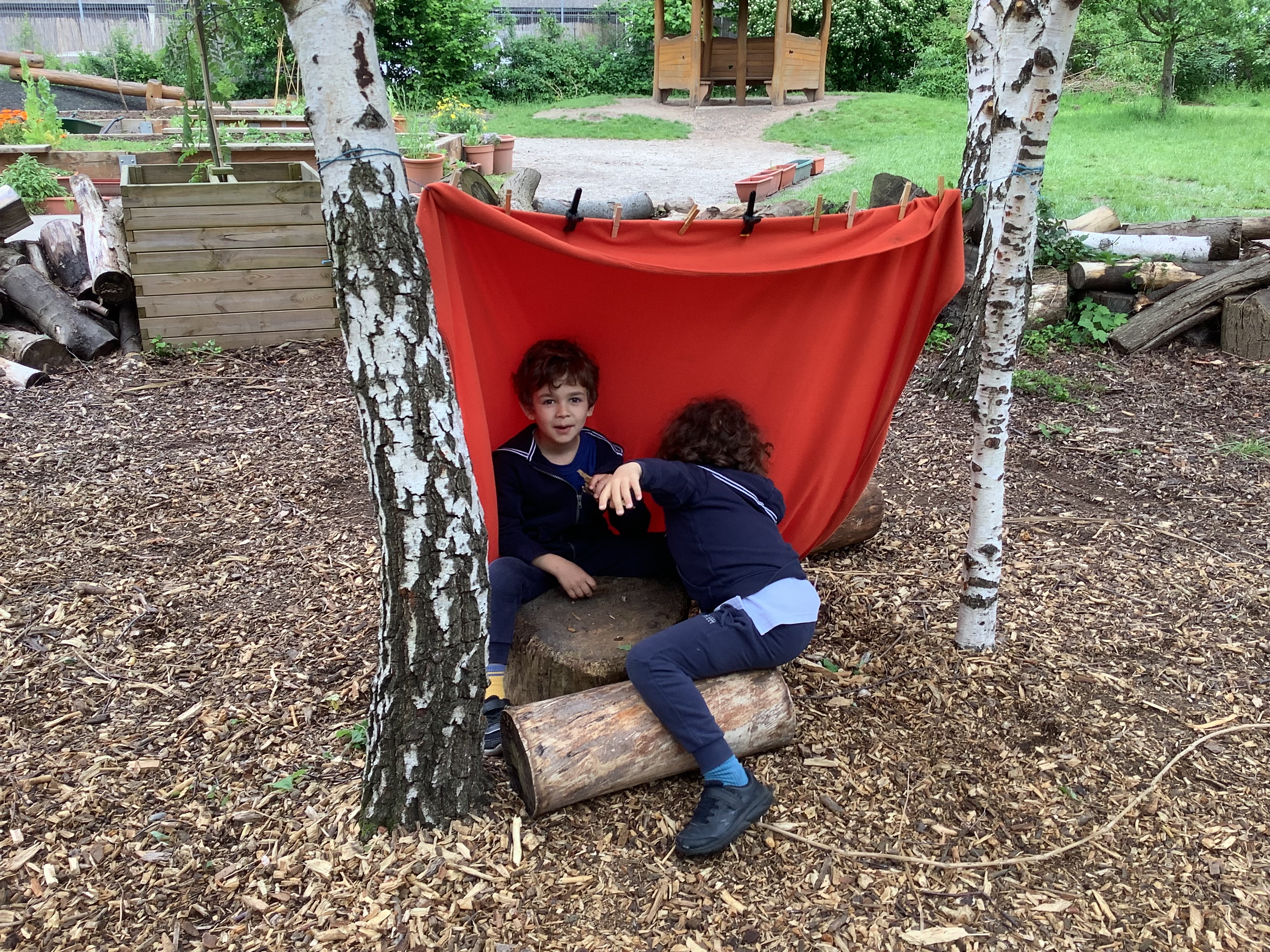Last week, we had the chance to make really big shelters using tarpaulins, pegs, cord, string, sheets, blankets and clips. The children learned how to use pegs and clips to attach items and enjoyed having a go at tying simple knots! They also learned that we need to pack everything away afterwards!