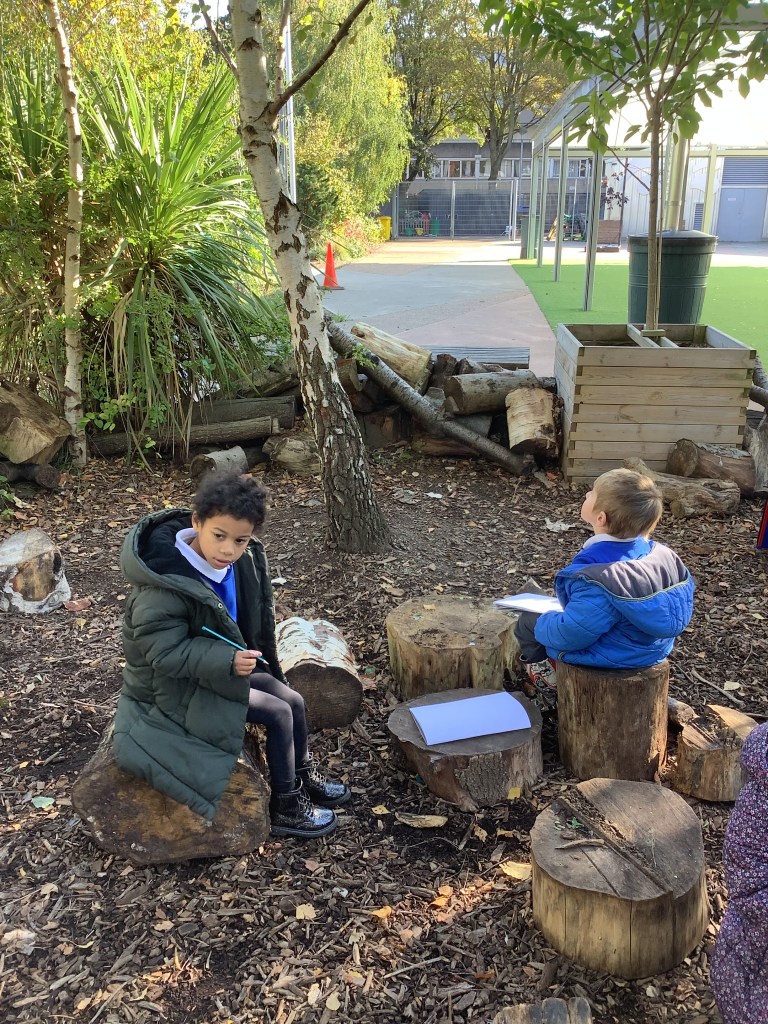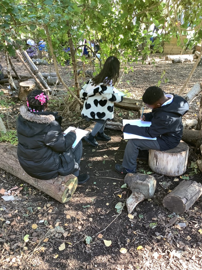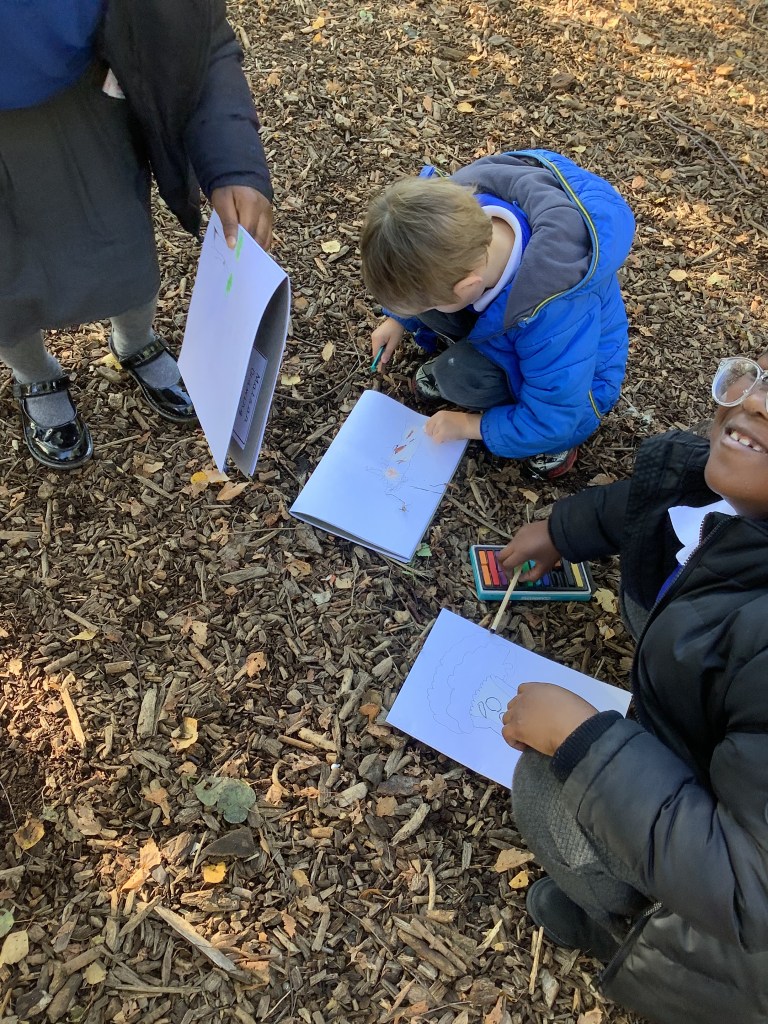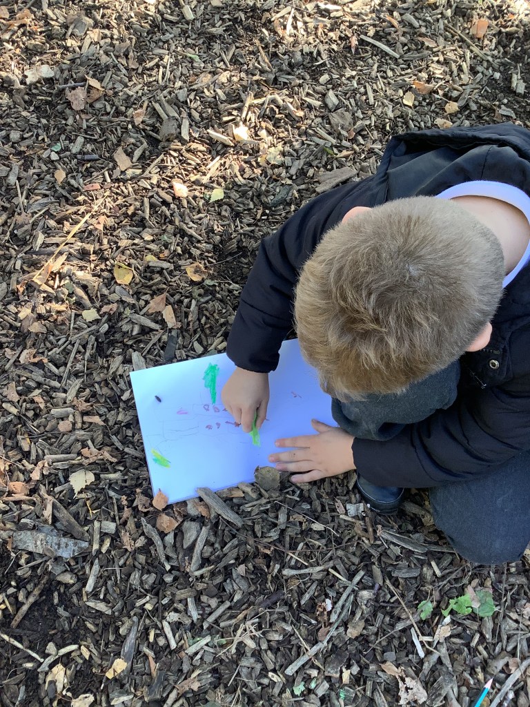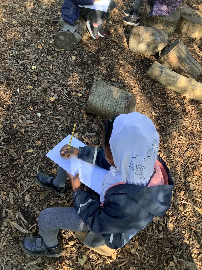 To put our new skills into action, we took a trip to Forest School to draw from observation. We looked closely at the trees, noticing the unique lines, textures, and colours they had. Each tree gave us fresh ideas, and we loved capturing the details with our pencils. 🌳