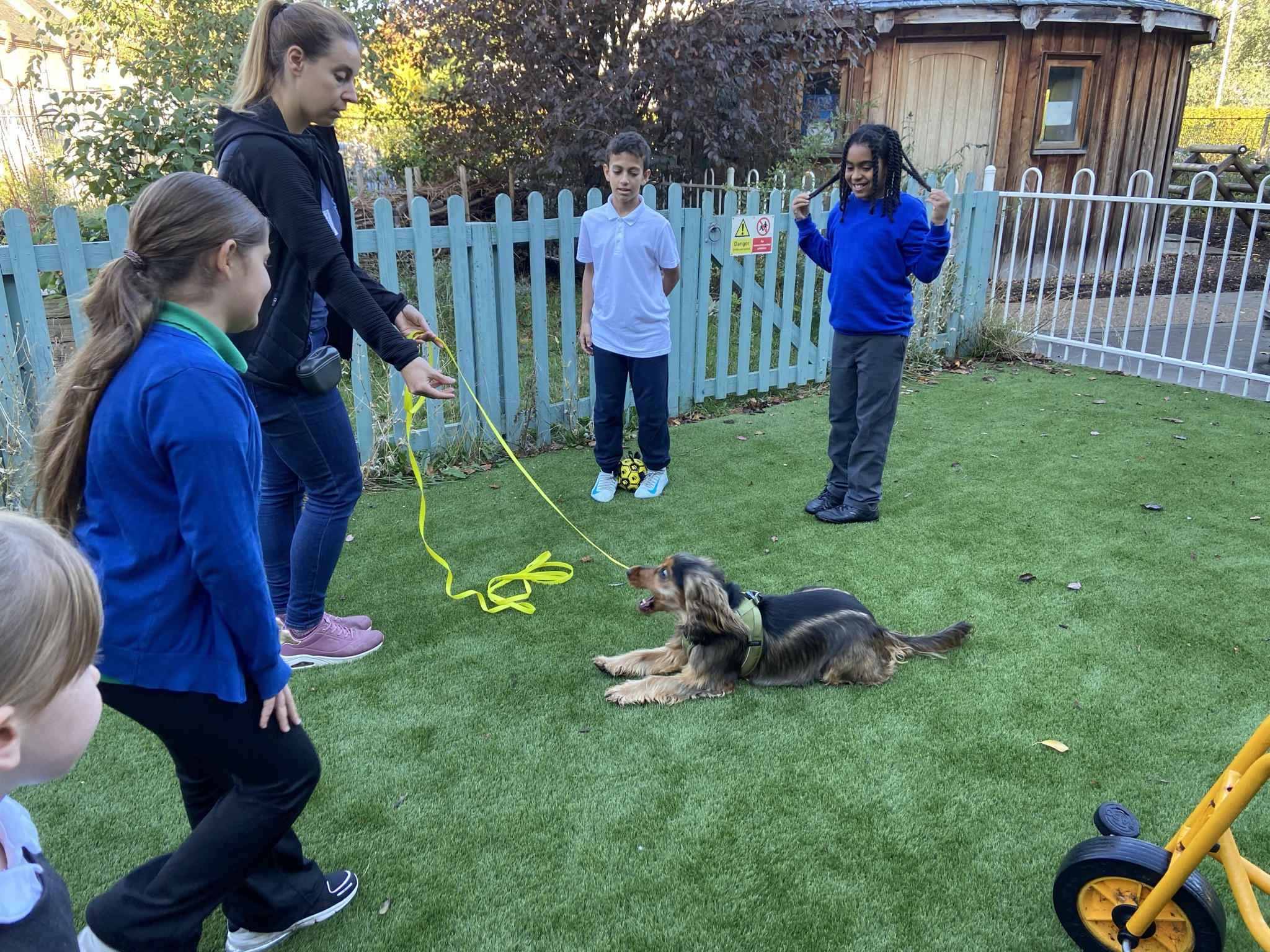 Before half-term, Middi had his last in-school training session with Kay from Wanderdogs Dog Training. Kay guided some of our children in teaching Middi new tricks, understanding his body language, and learning how to play respectfully. It was a fun and educational experience, and everyone had a fantastic time bonding with our beloved school dog!