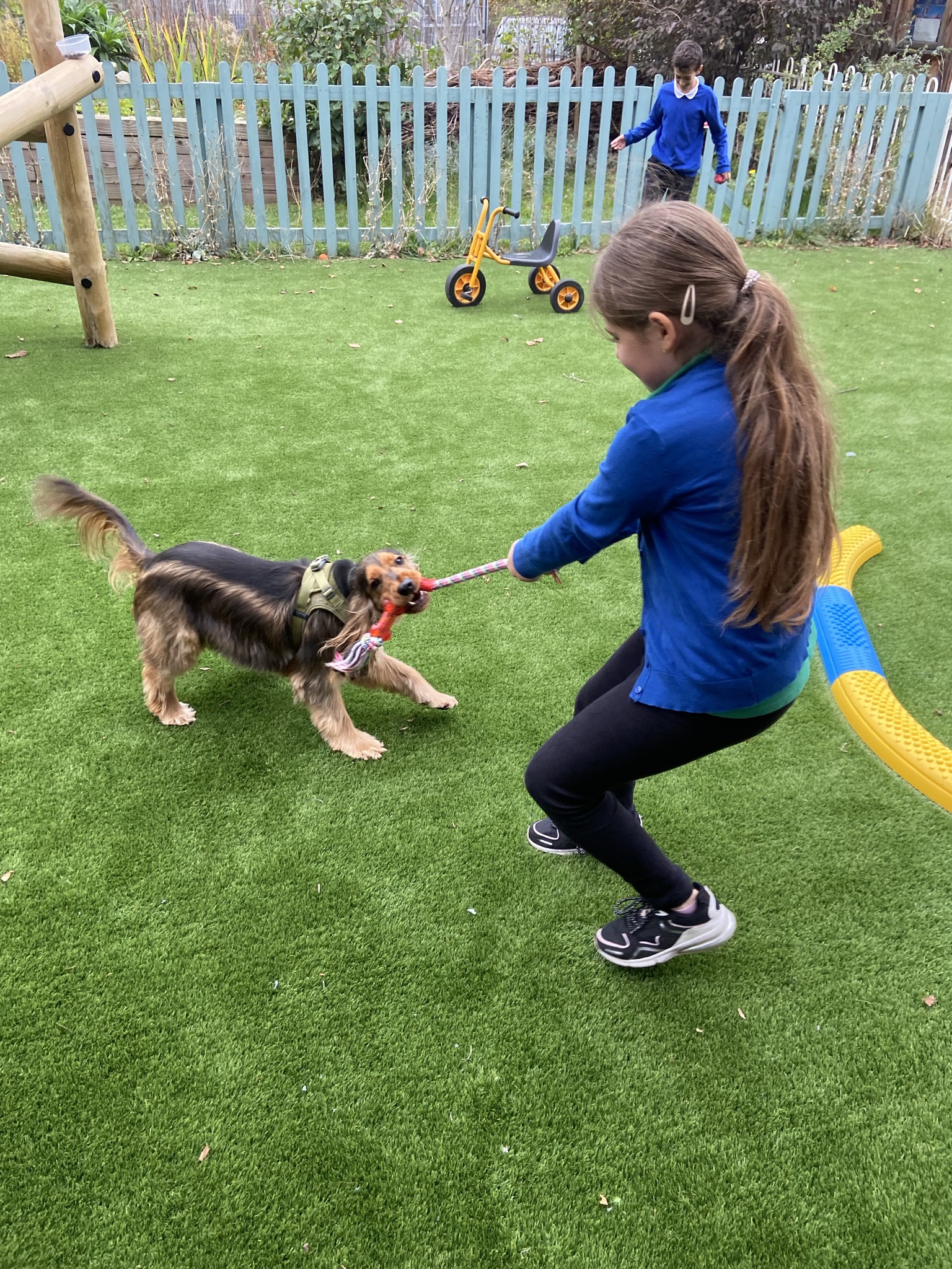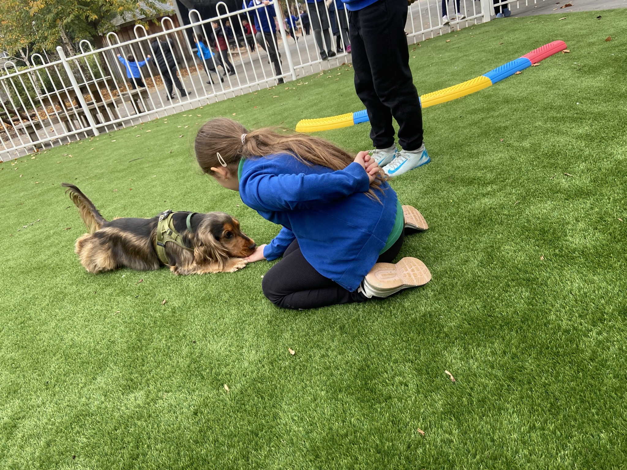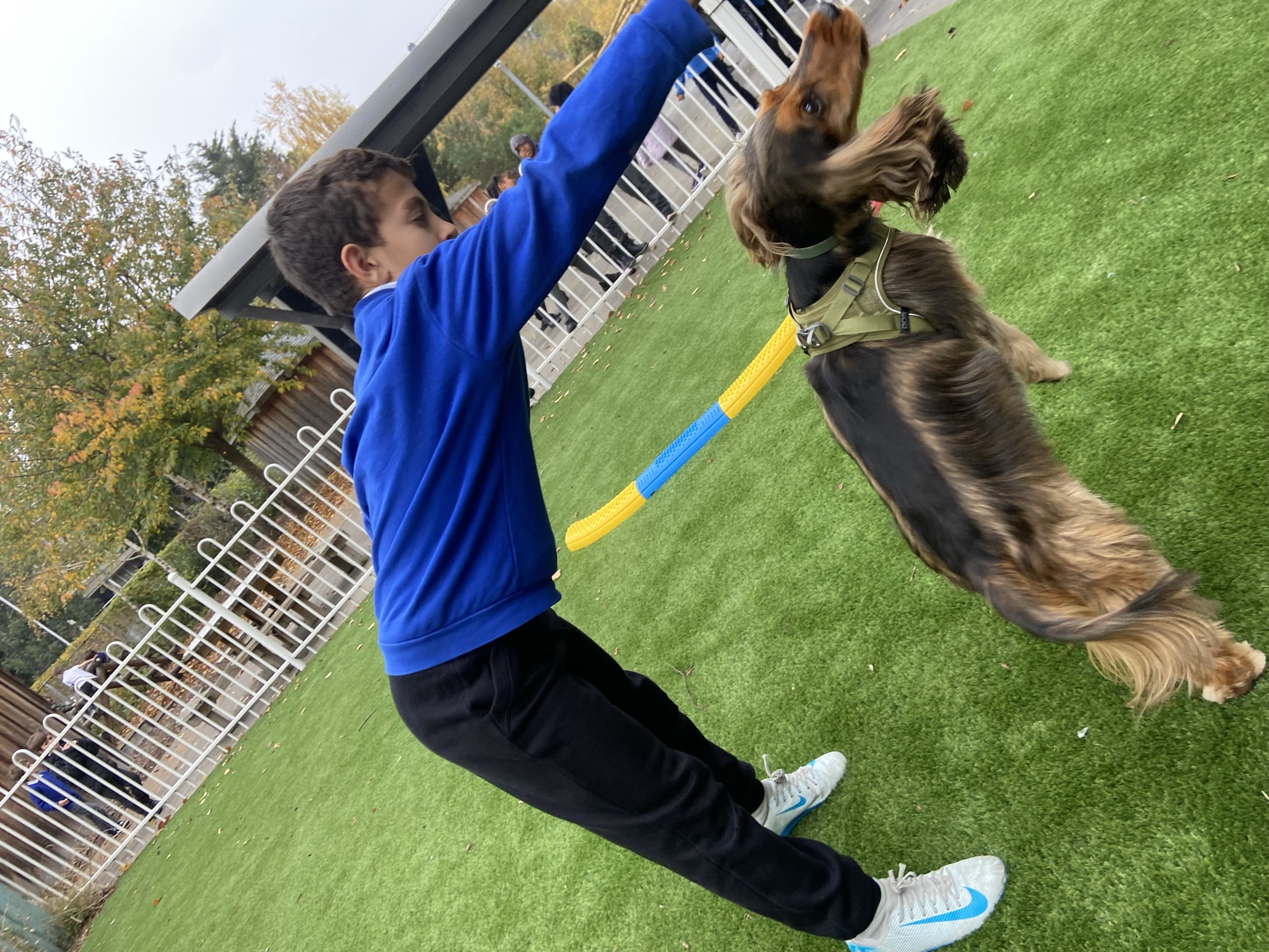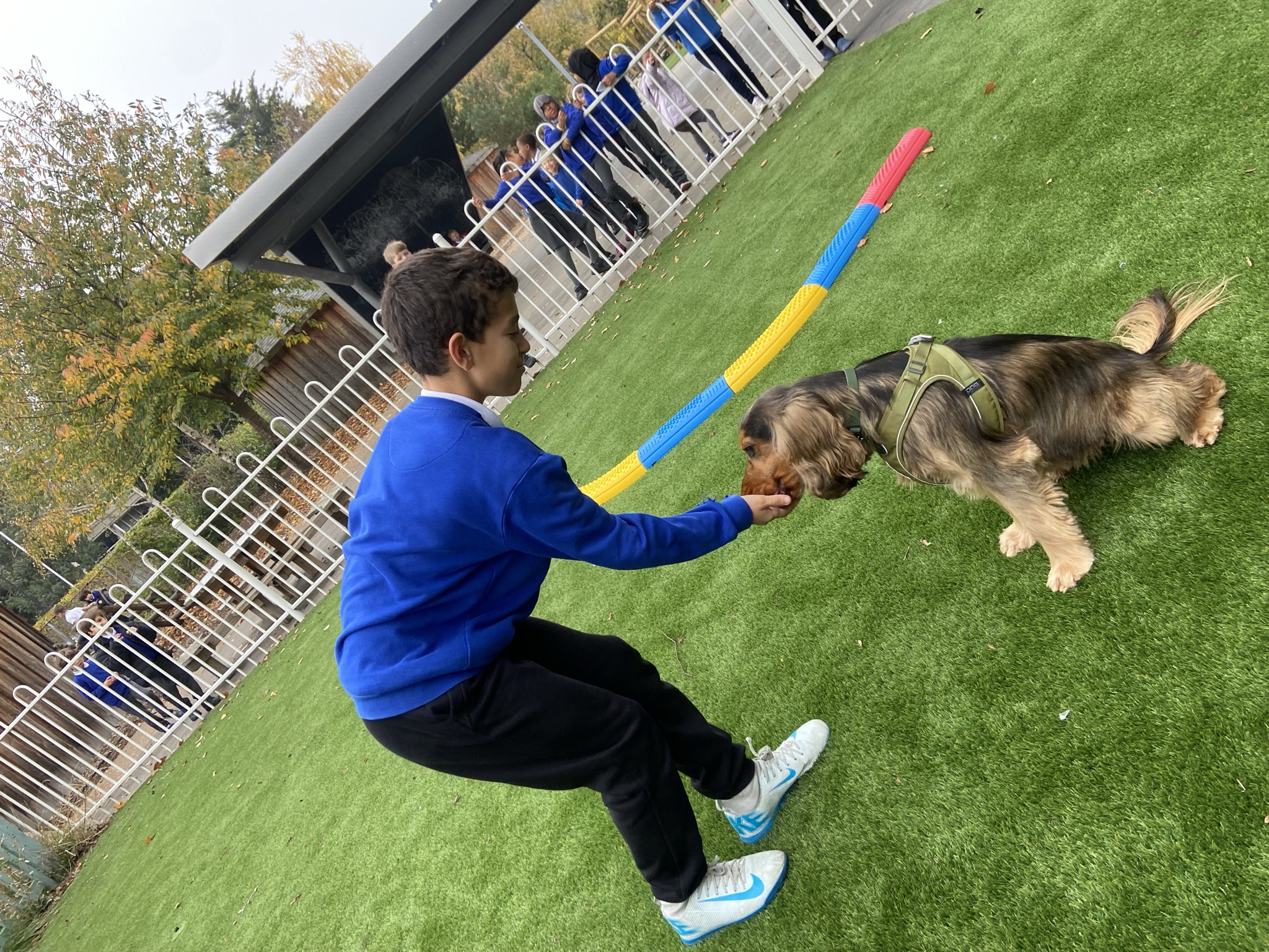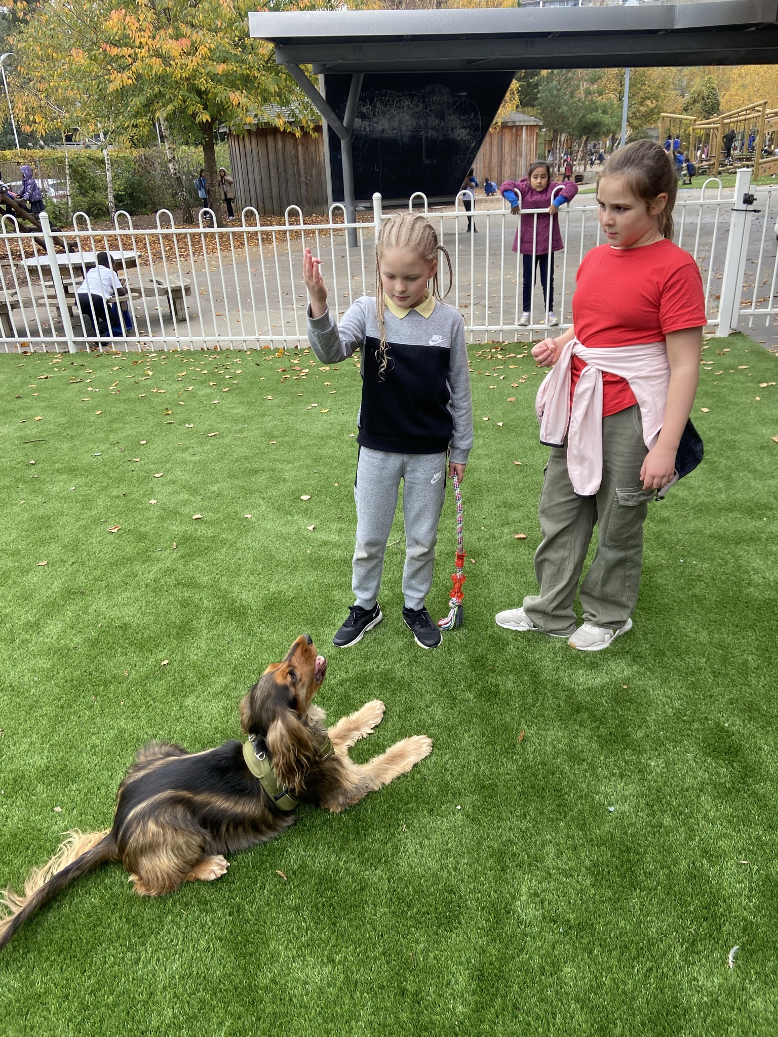 This week, we’ve started our lunchtime Middi Helpers program again. Key Stage 2 children have enjoyed spending their lunchtimes playing with Middi, practising tricks, and sharing special moments with him. It’s a wonderful way for our childrento connect with Middi while learning responsibility and respect for animals.