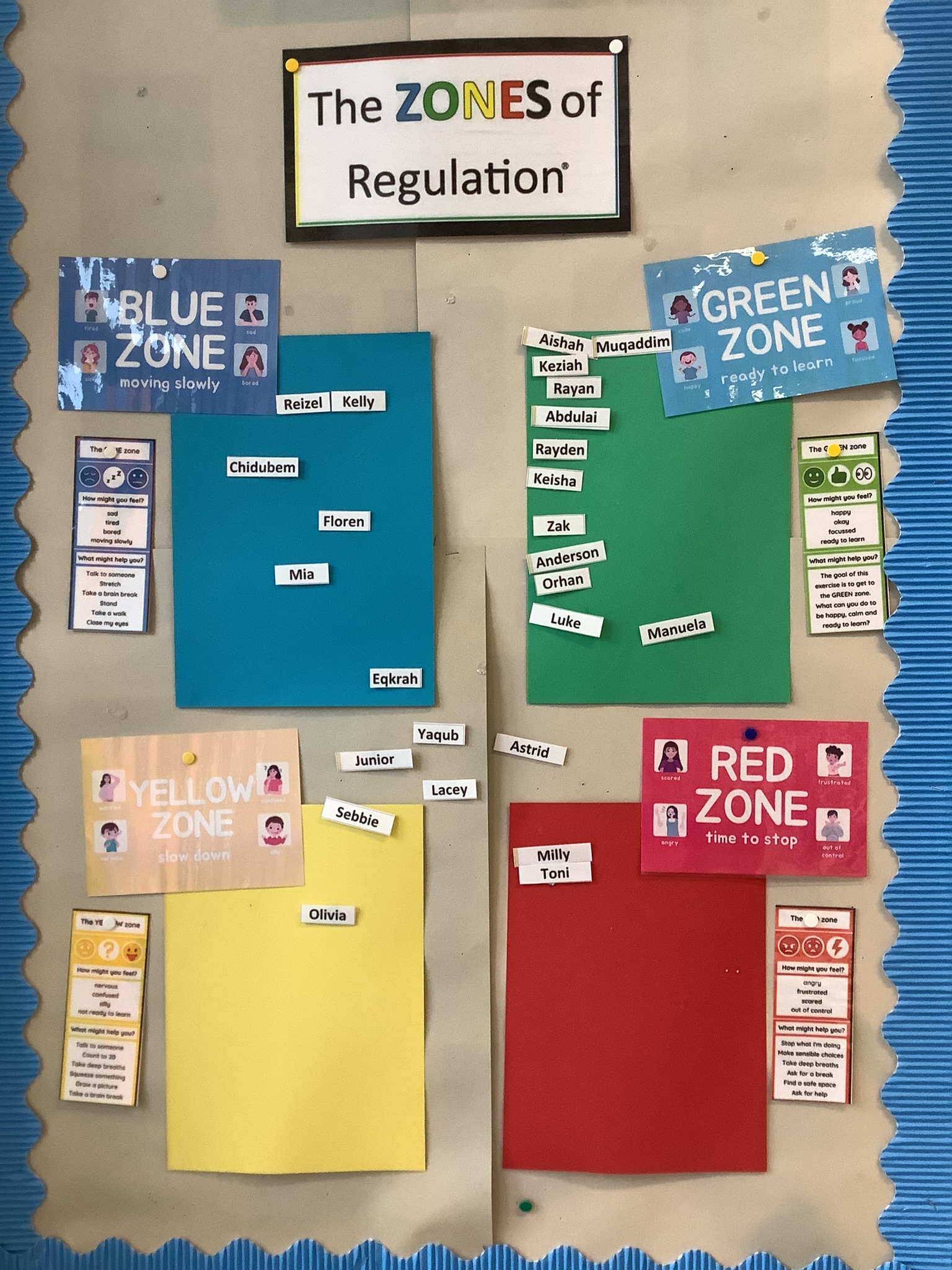 We’re thrilled to be using Zones of Regulation, a child-friendly way to help children identify and manage their emotions.