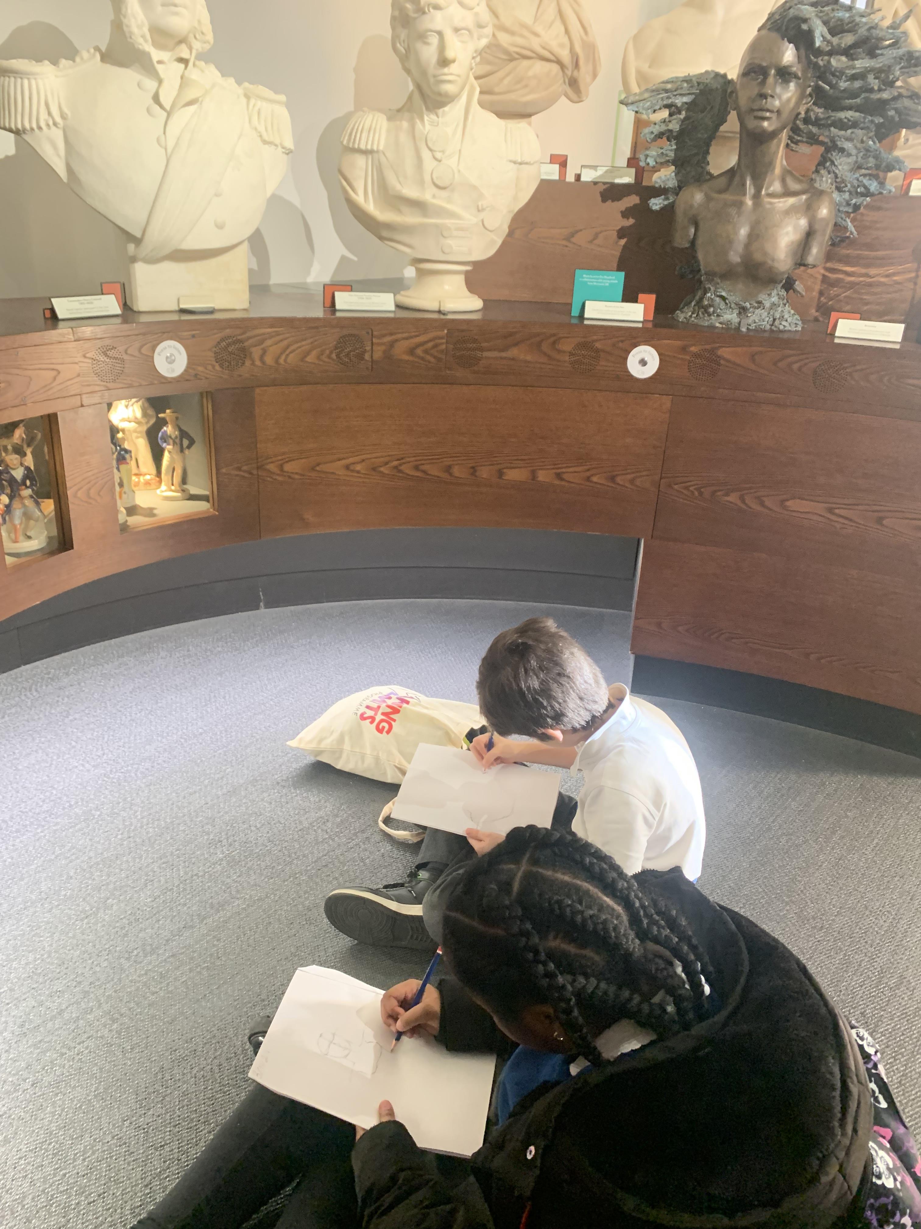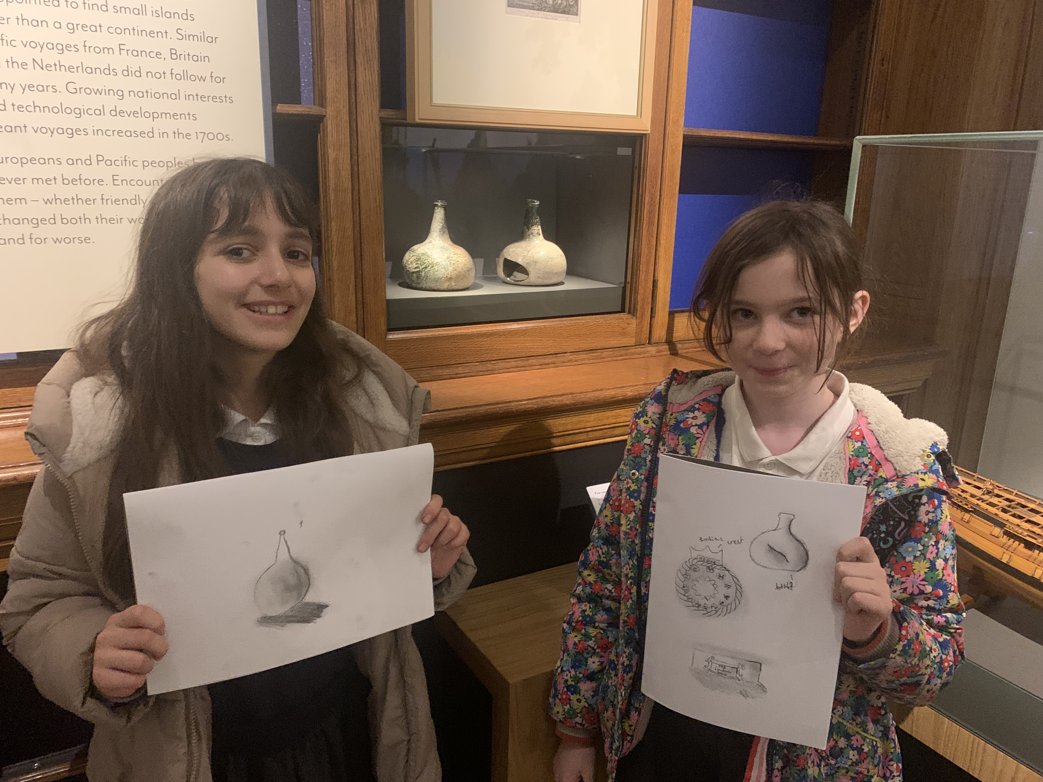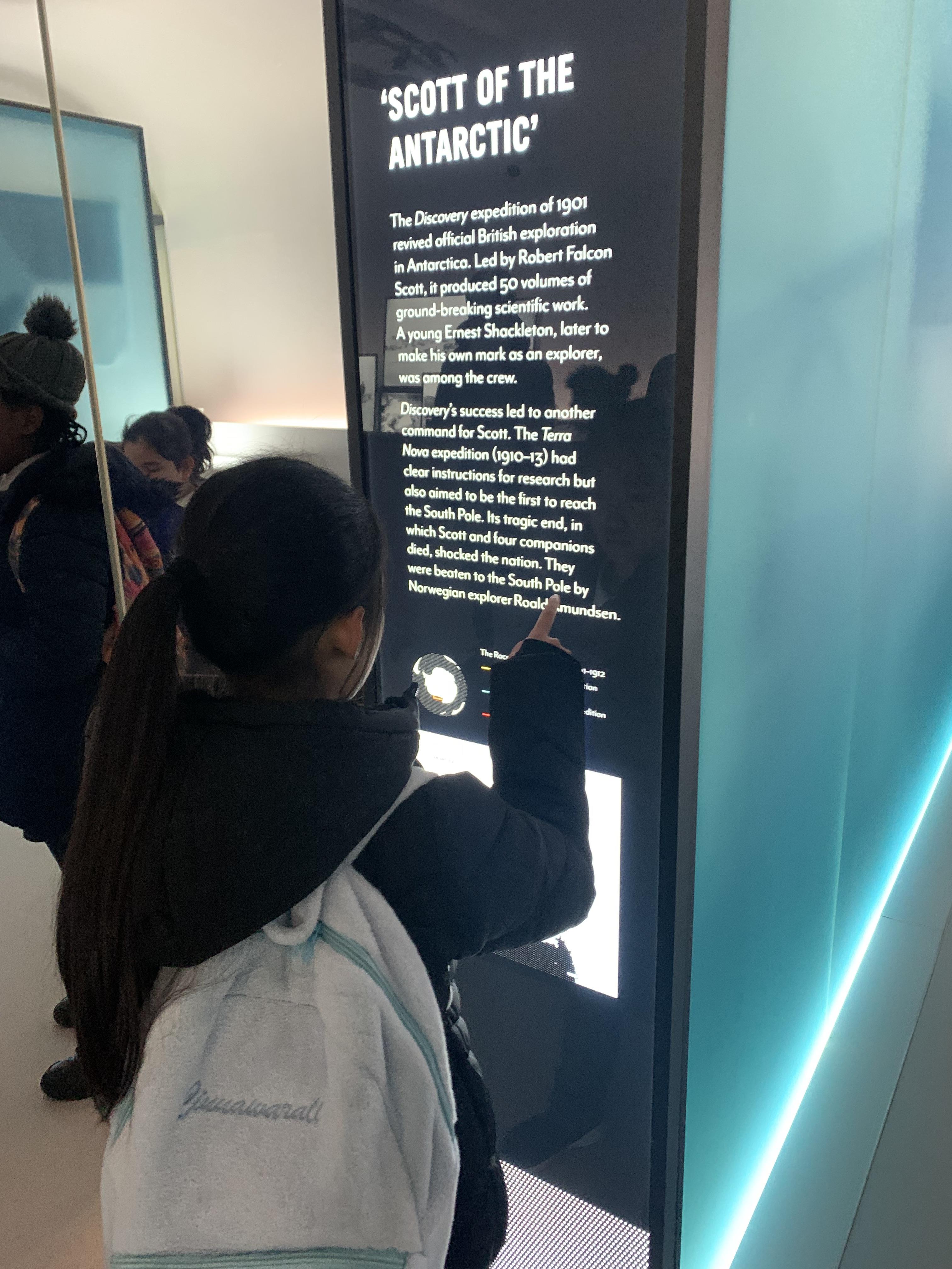 The children split into two groups to explore different exhibits. Freya’s class began at the ‘Sea Things’ exhibition, sketching intriguing objects that sparked their curiosity. Meanwhile, Jen’s class delved into the ‘Polar Worlds’ exhibit, discovering the captivating story of Shackleton and Antarctica, which links perfectly with their current writing unit.
