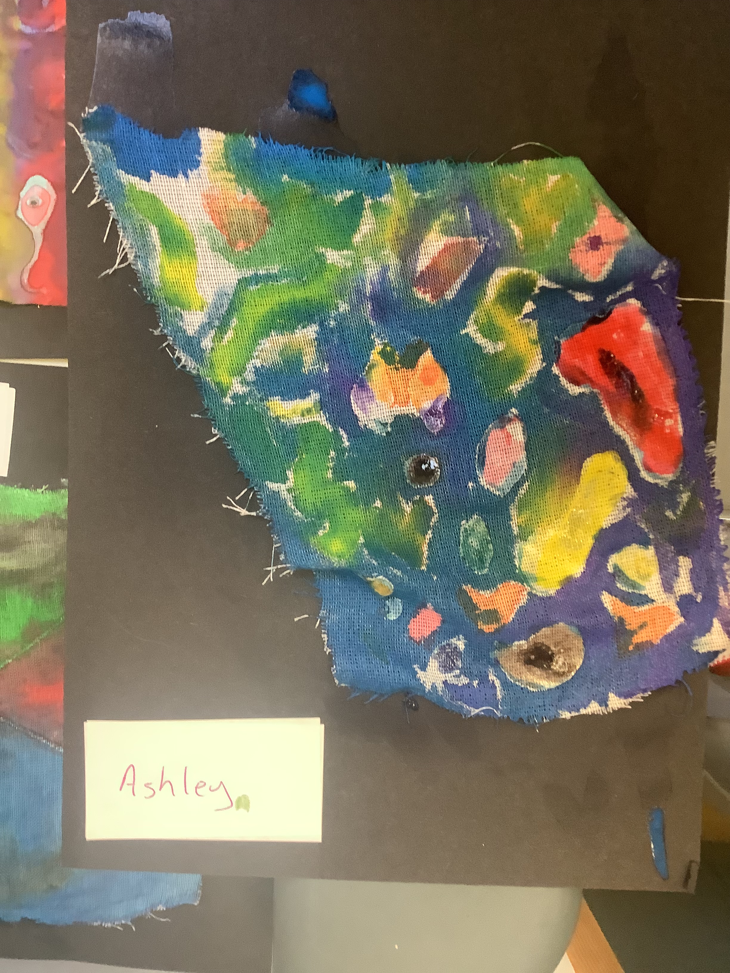 Each of us designed our own unique piece of artwork, drawing inspiration from the rainforest. We experimented with applying wax to fabric and then added vibrant dyes to bring our designs to life. The results were fantastic! It was a wonderful way to express our creativity while learning about the beauty of nature. We had so much fun creating our rainforest-inspired masterpieces!