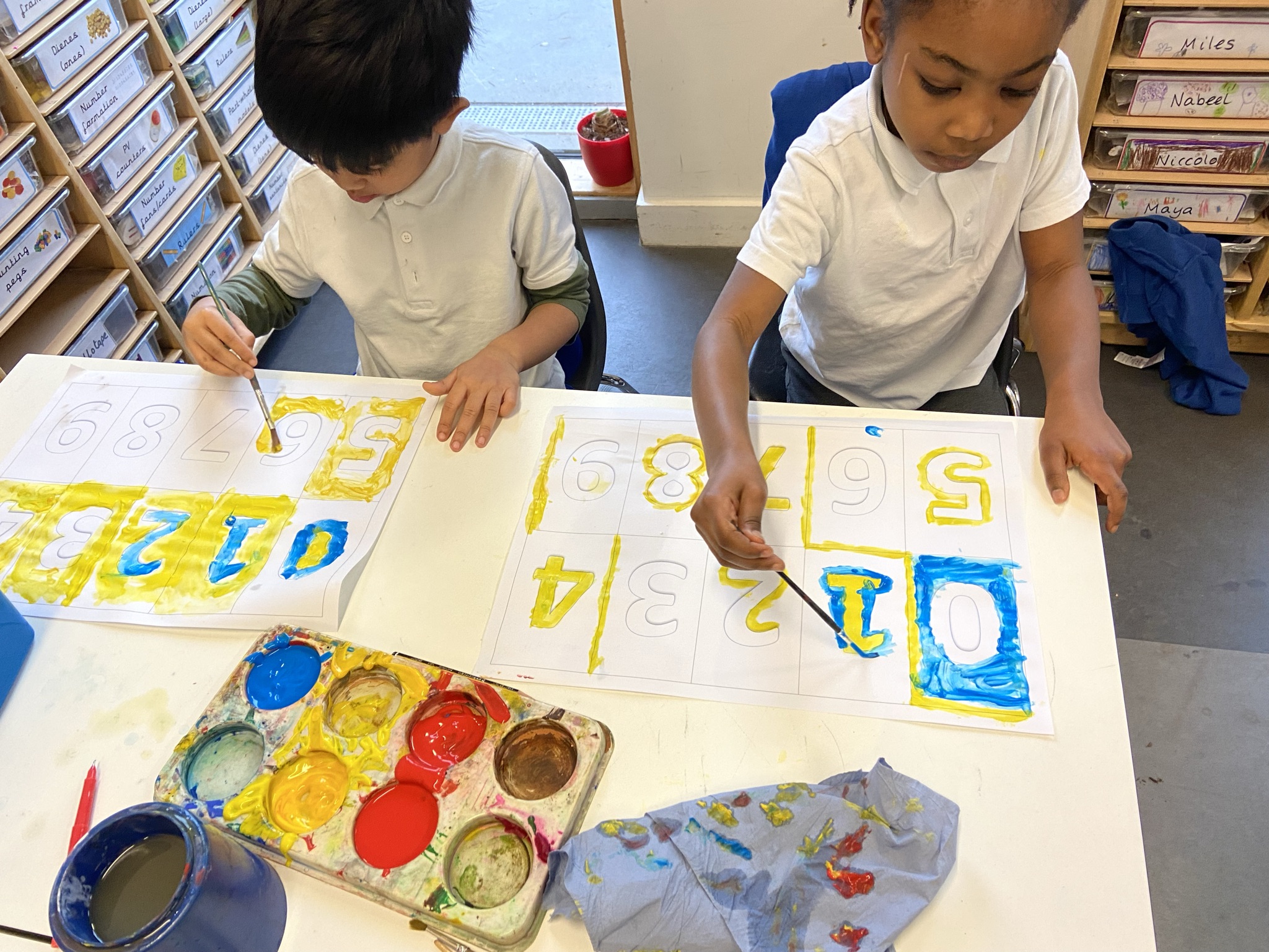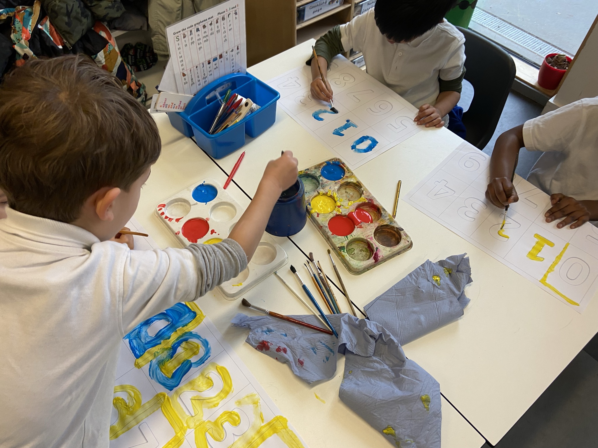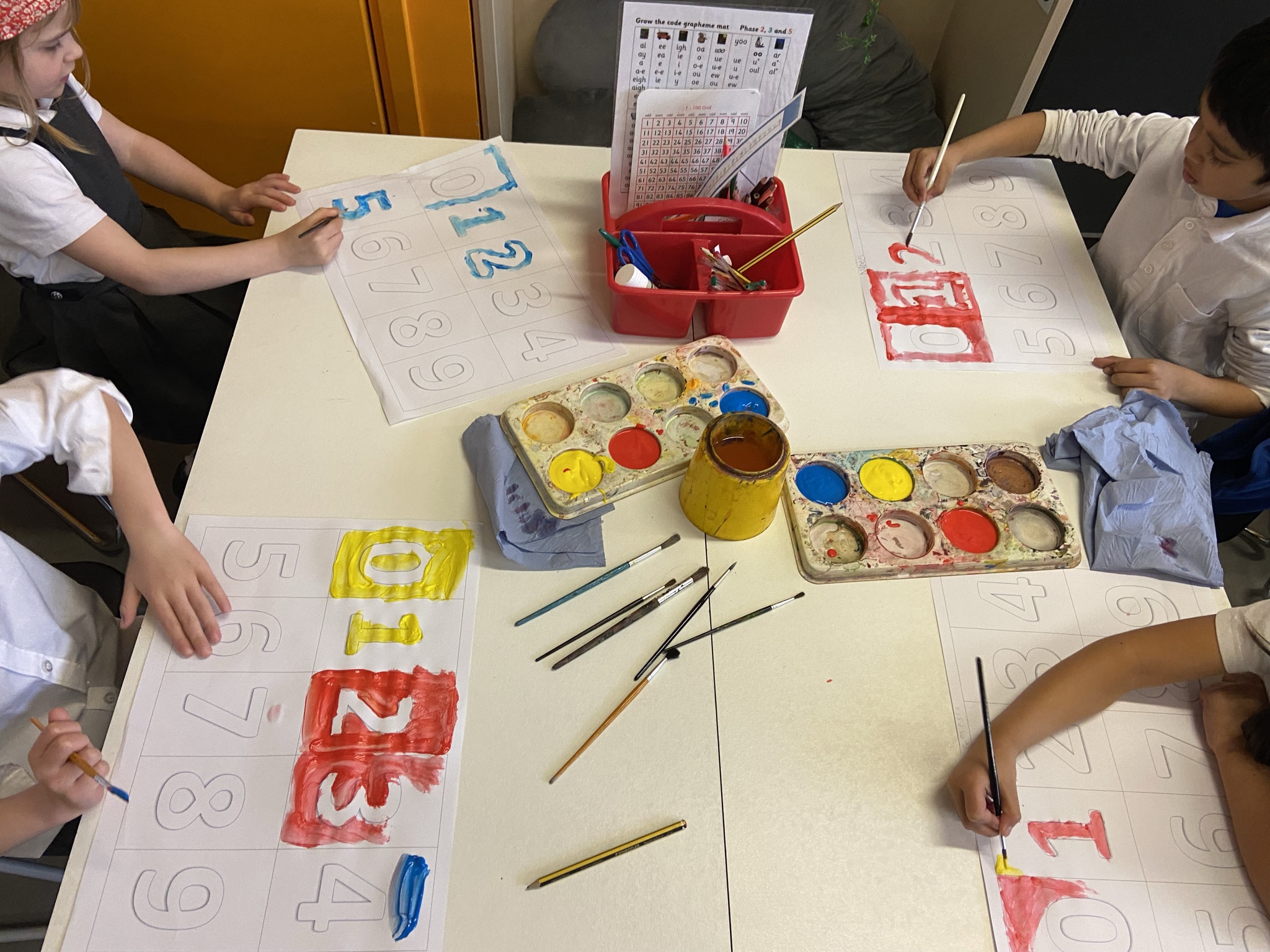 In our second lesson, we created vibrant numbers paintings with a fun twist — we could only use primary colours! It was a challenge not to mix them, especially since we had experimented with blending primary colours to make secondary ones in our previous lesson.