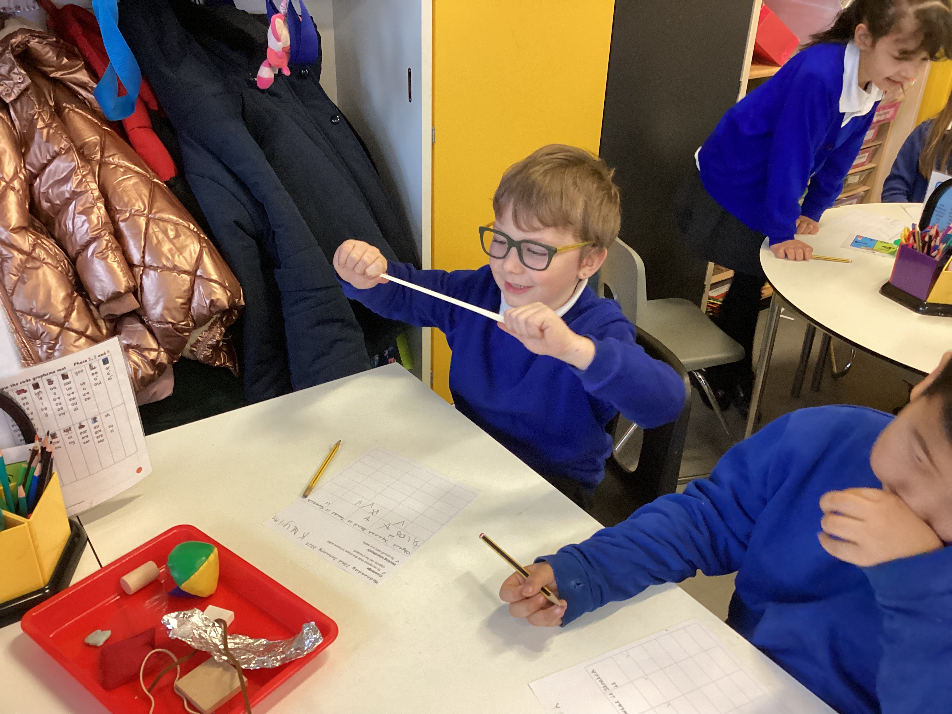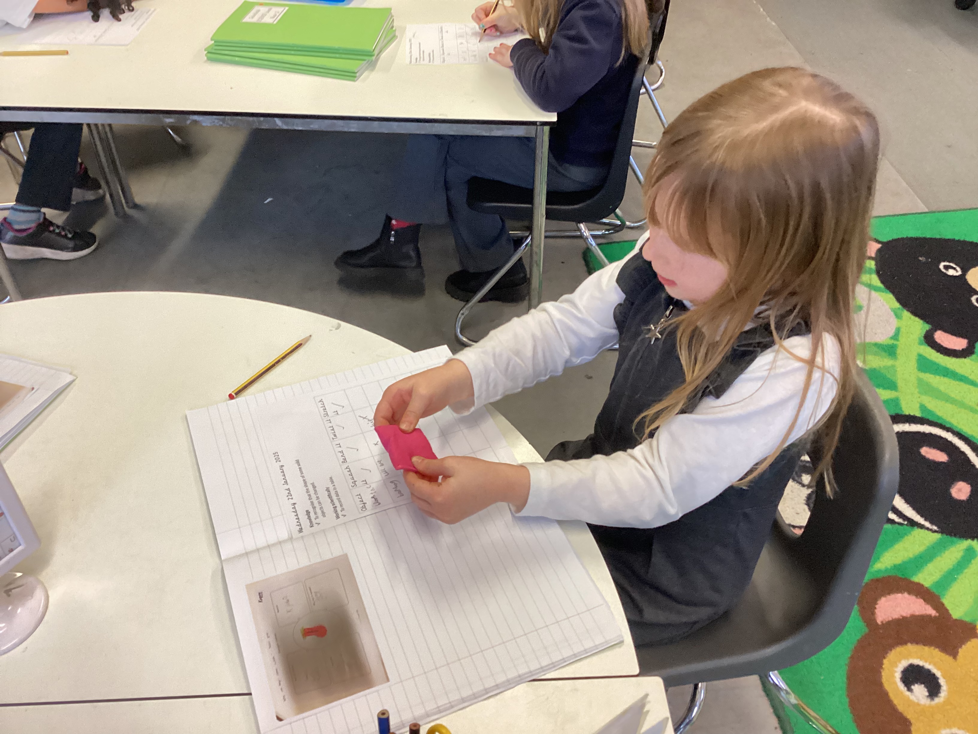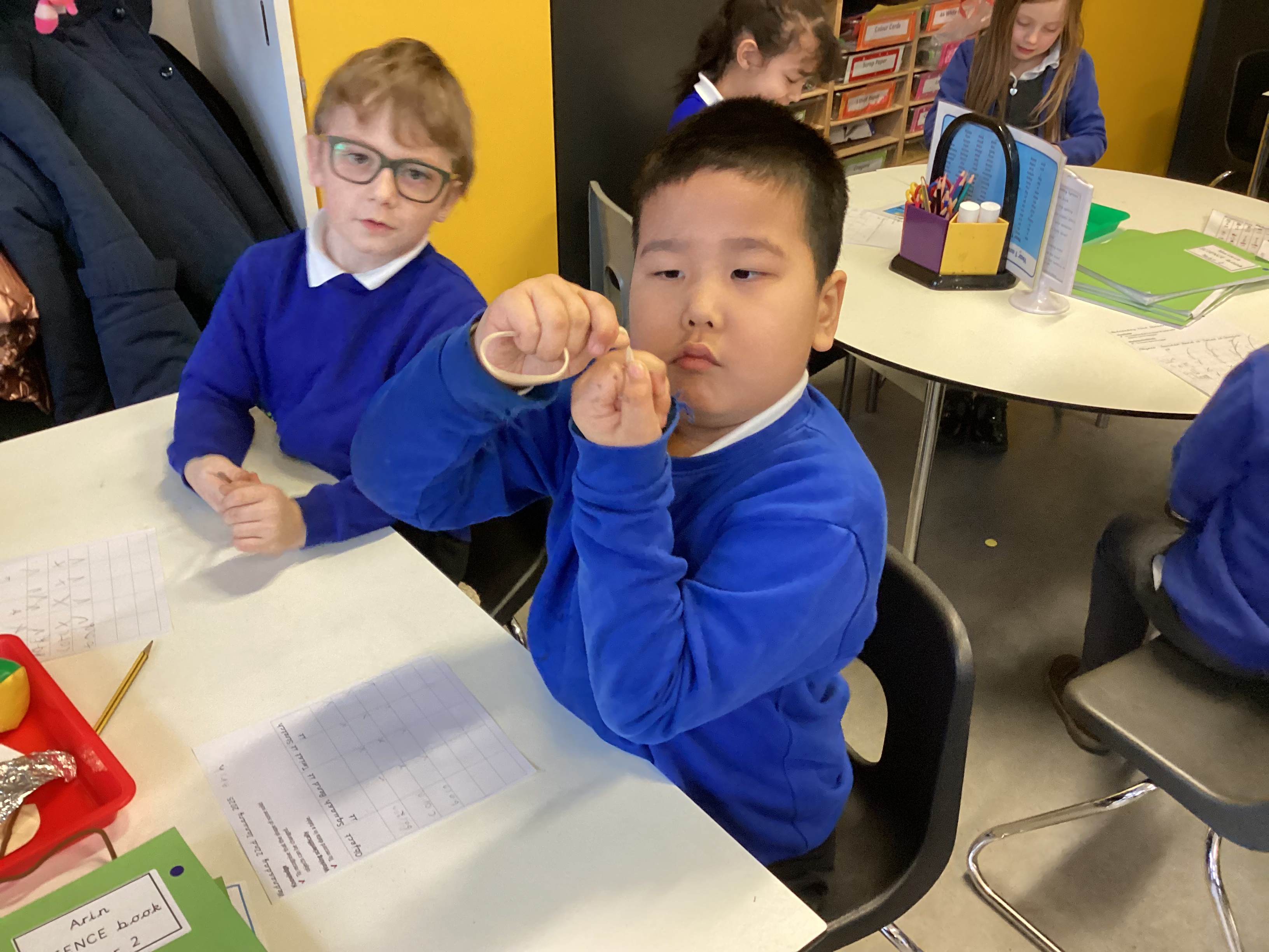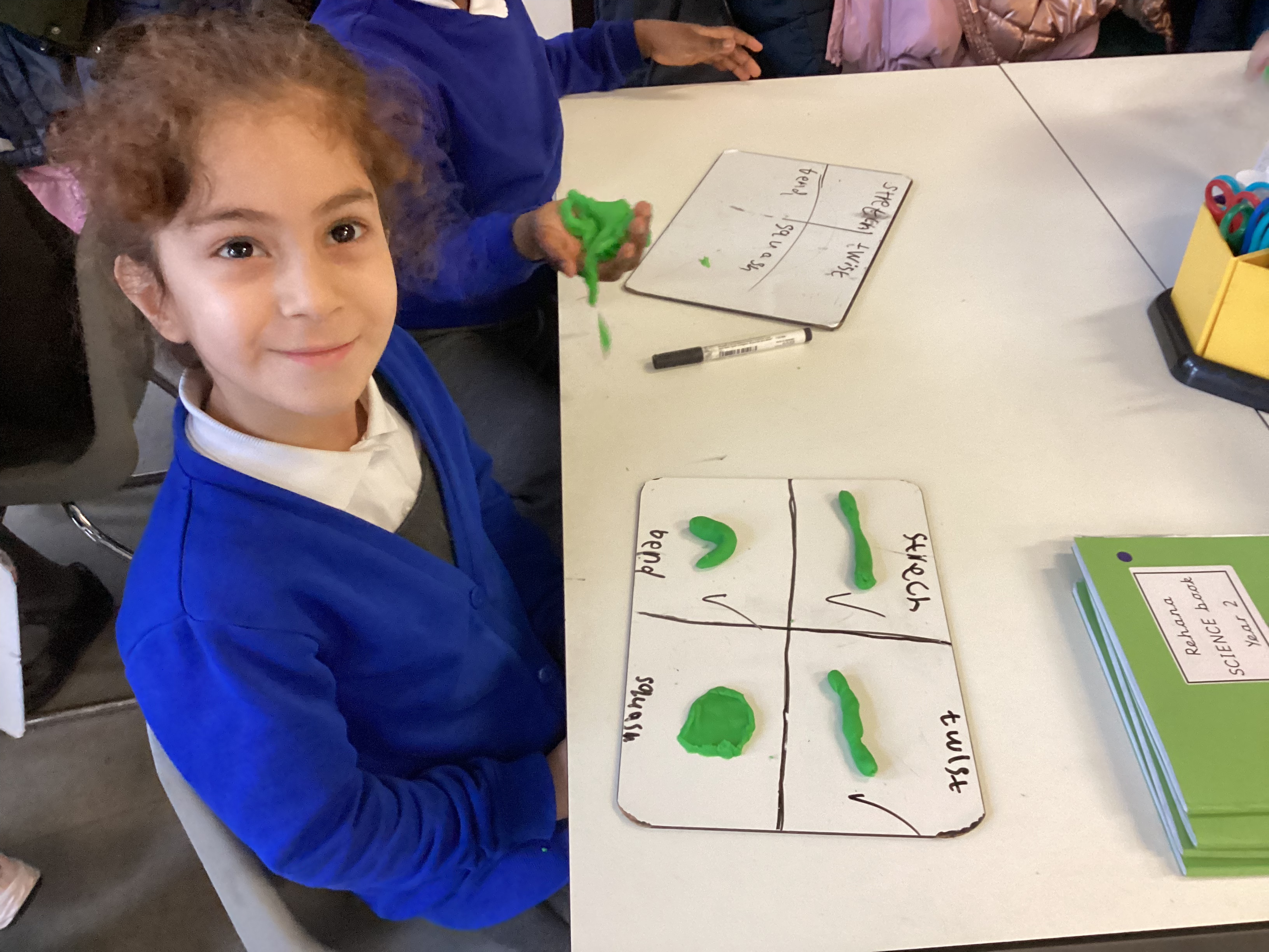 In Science, we have been learning all about materials and how their shapes can change. We explored different ways to change solid objects by stretching, twisting, squashing, and bending them.