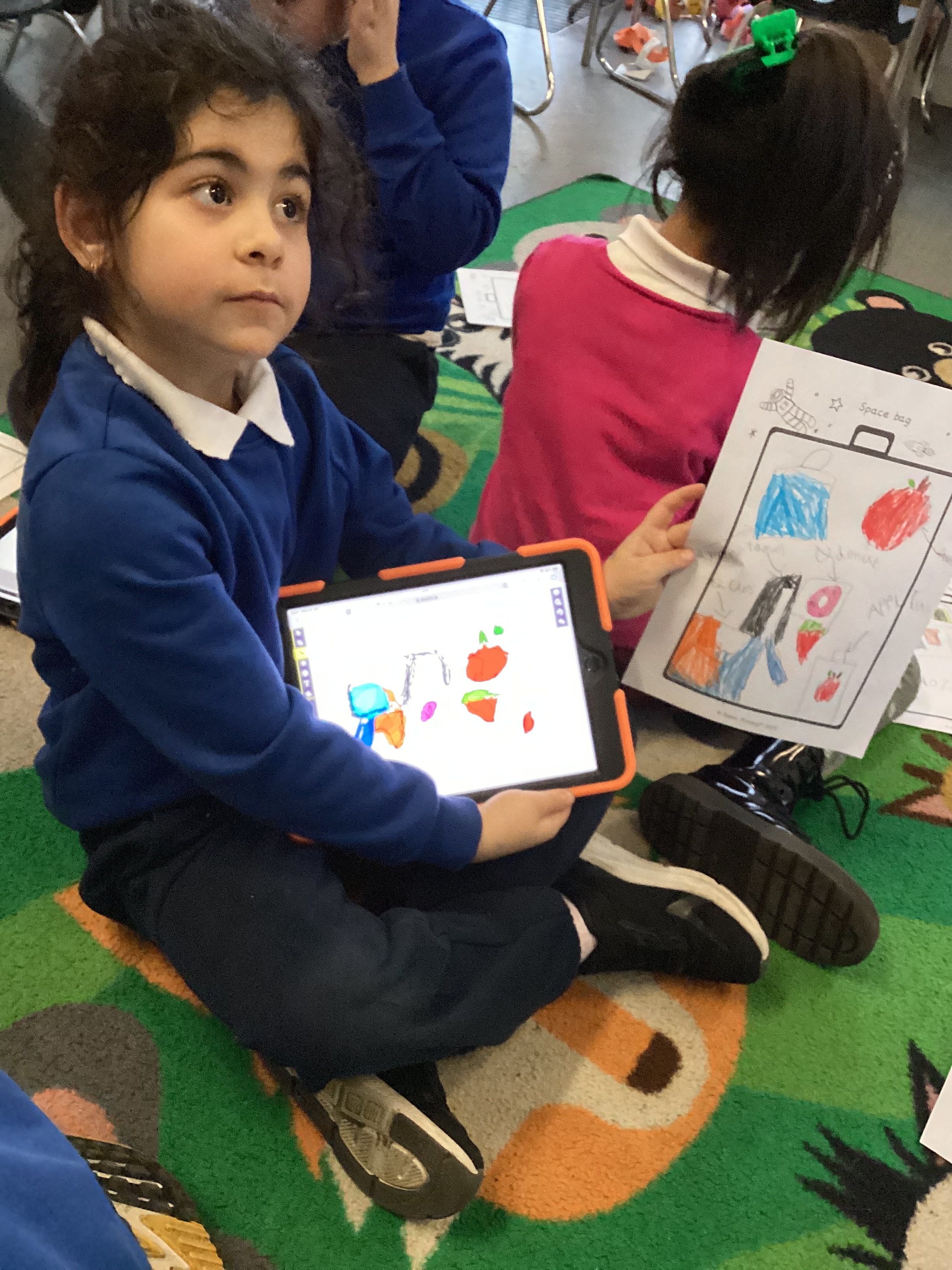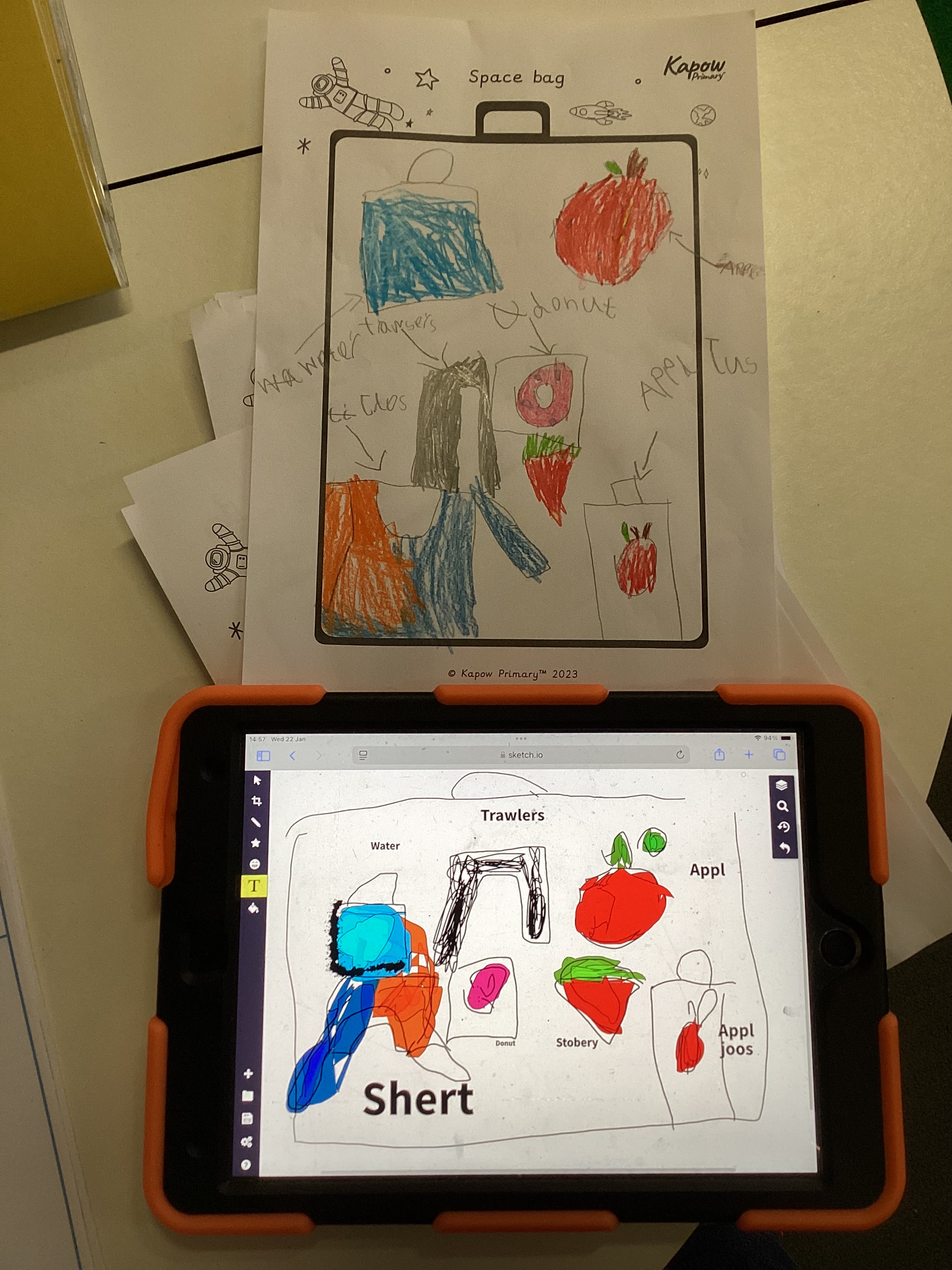 We imagined packing a bag with everything we would need for life on the ISS and started by sketching our ideas on paper. Then, we used the Sketch app on the iPad to bring our designs to life!