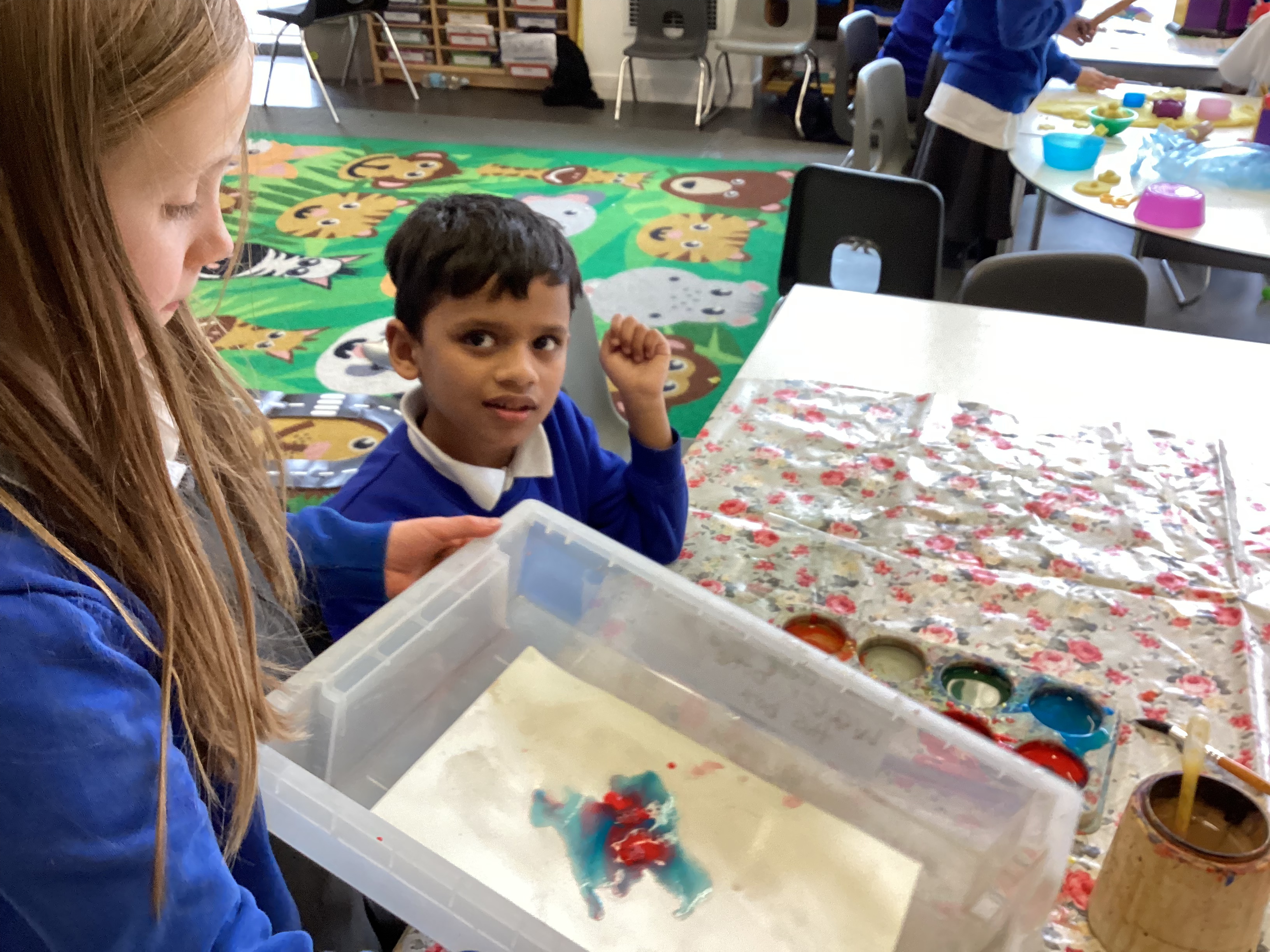 The Year 2 children had a fantastic time experimenting with colour mixing in Art! We started by revisiting the difference between primary and secondary colours, then got creative with a fun, hands-on activity.