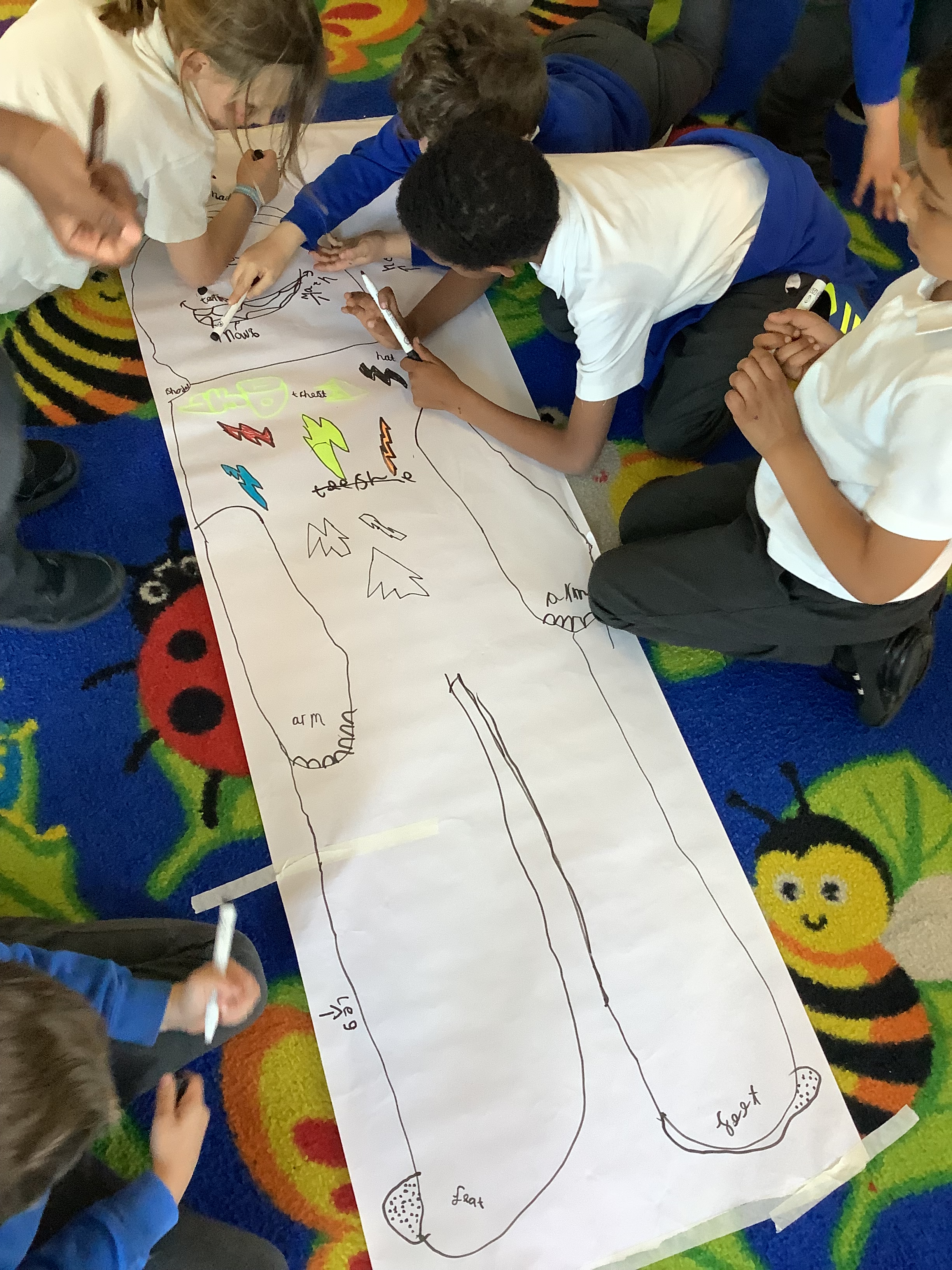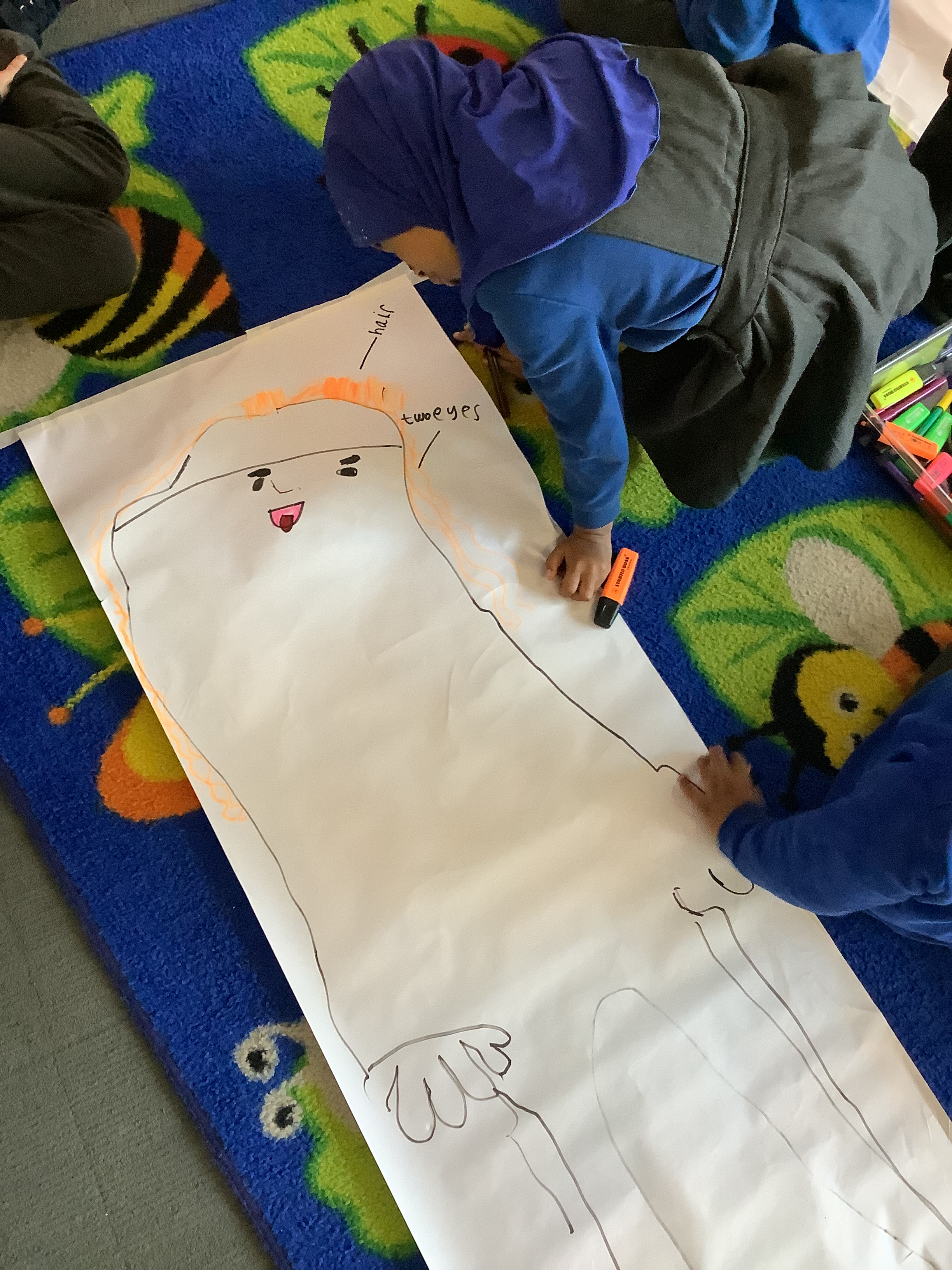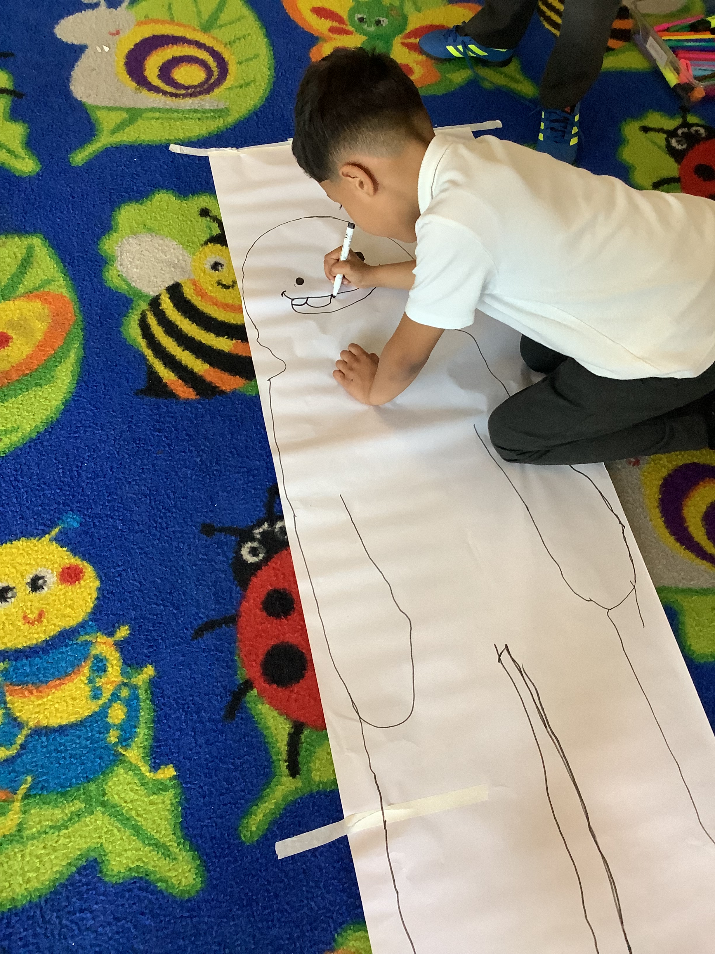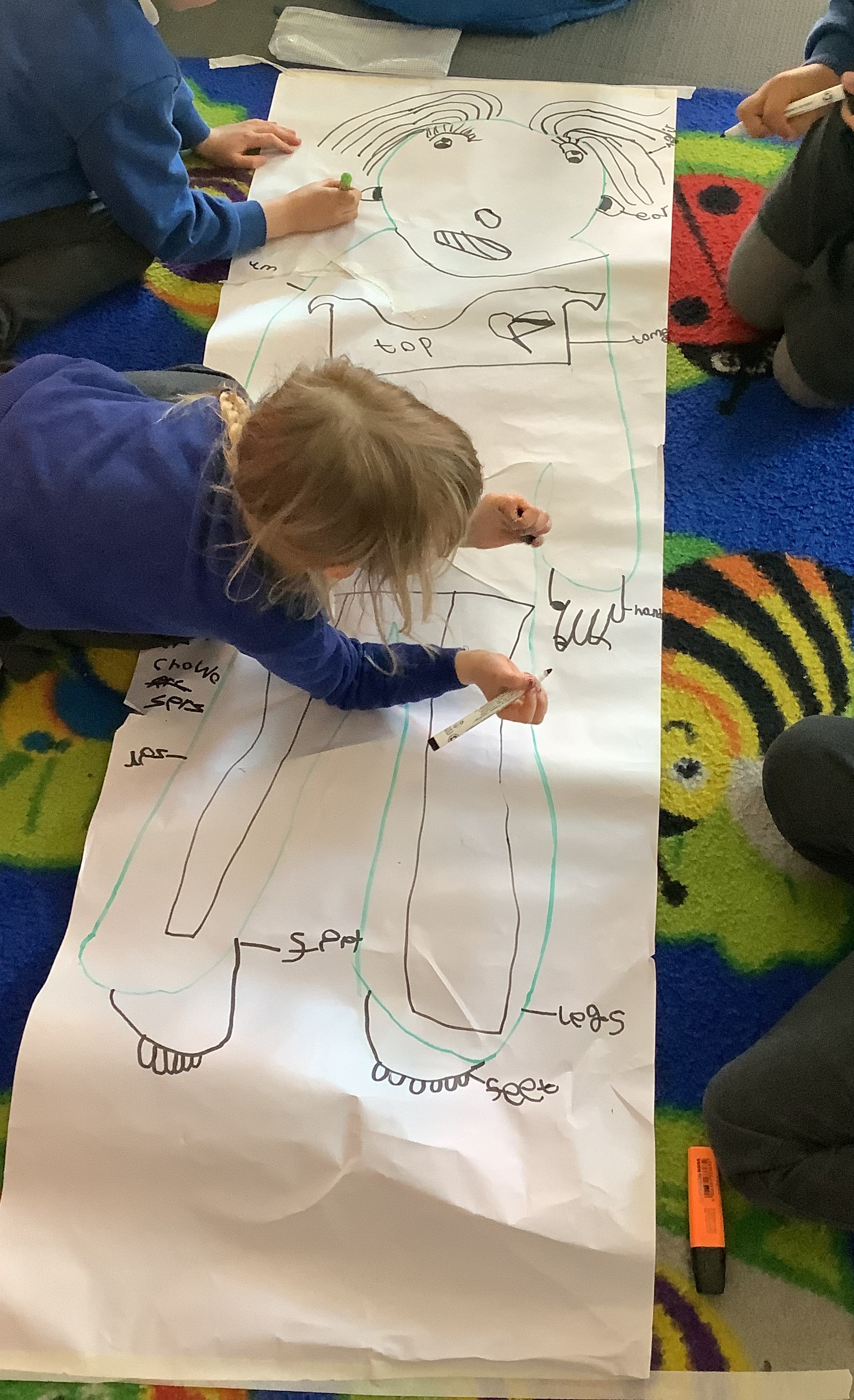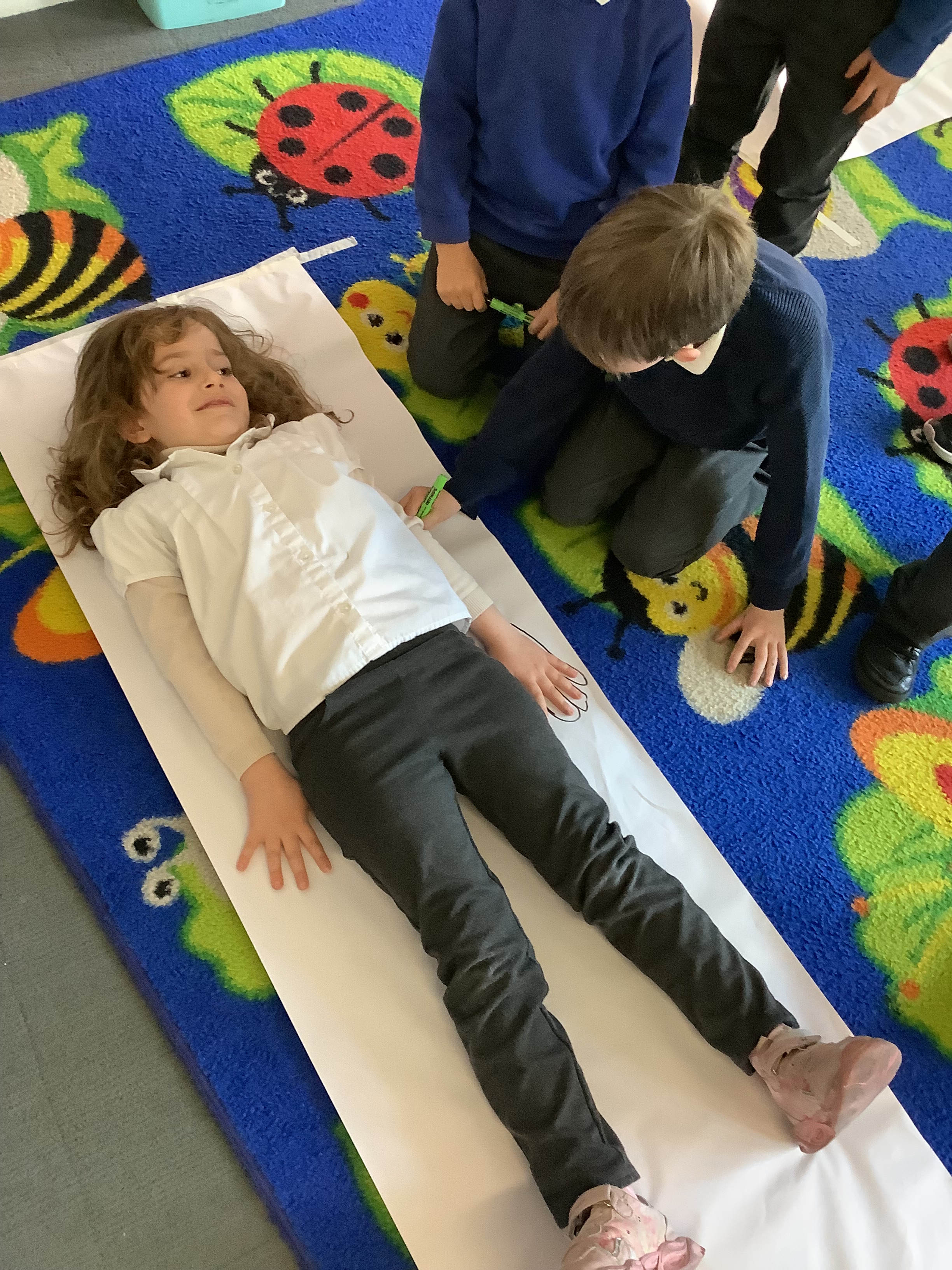 This week in science, Year1 have been learning about different body parts. All the children were able to name various body parts and point to them. They then had a go at drawing around their friend and labeling the body.