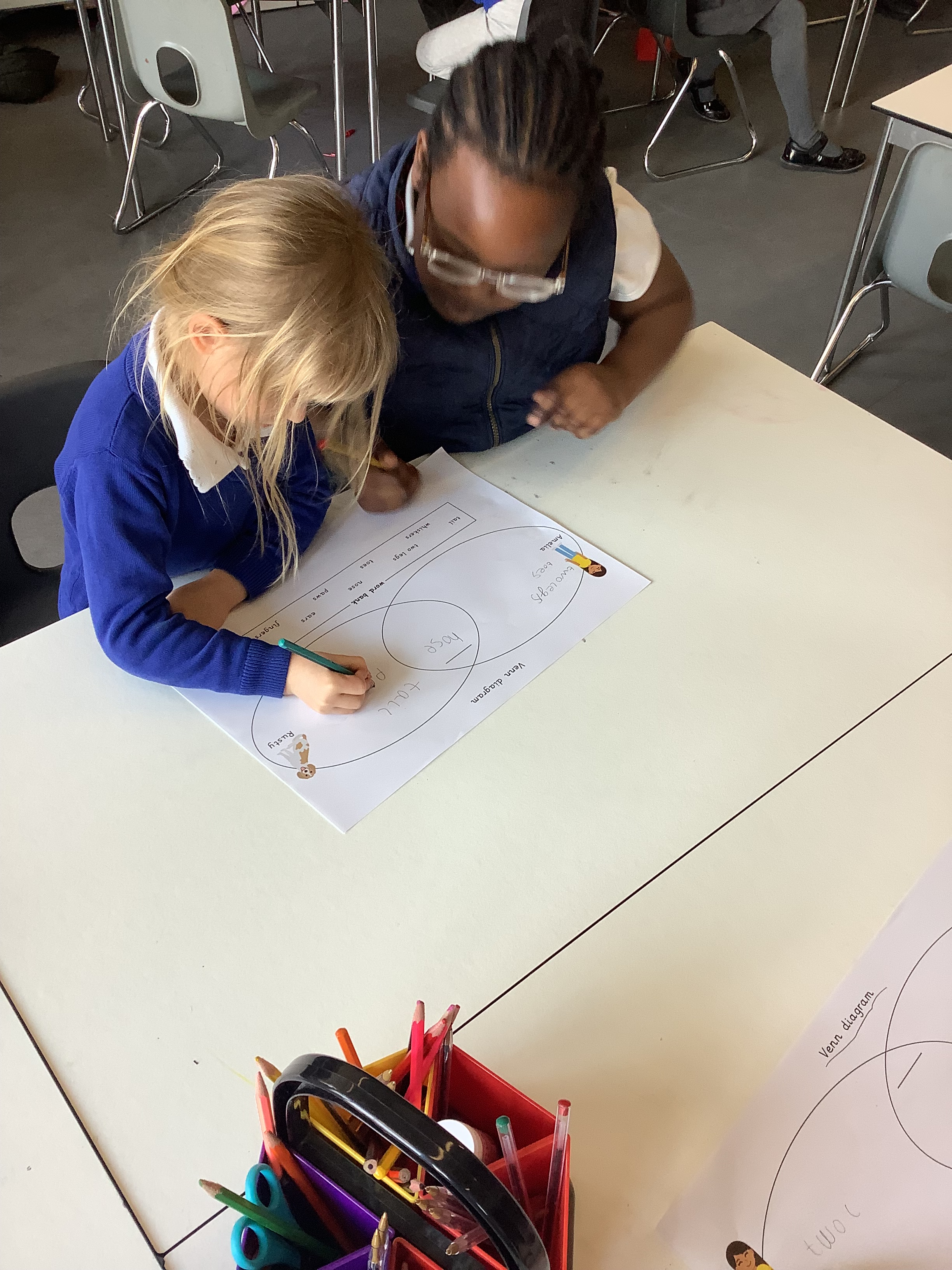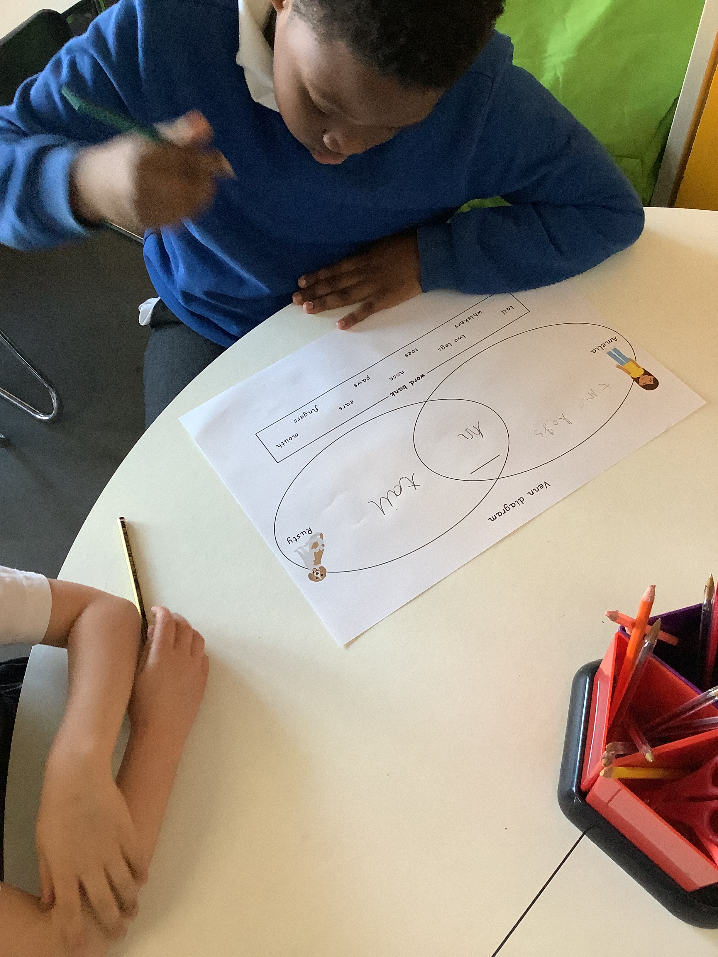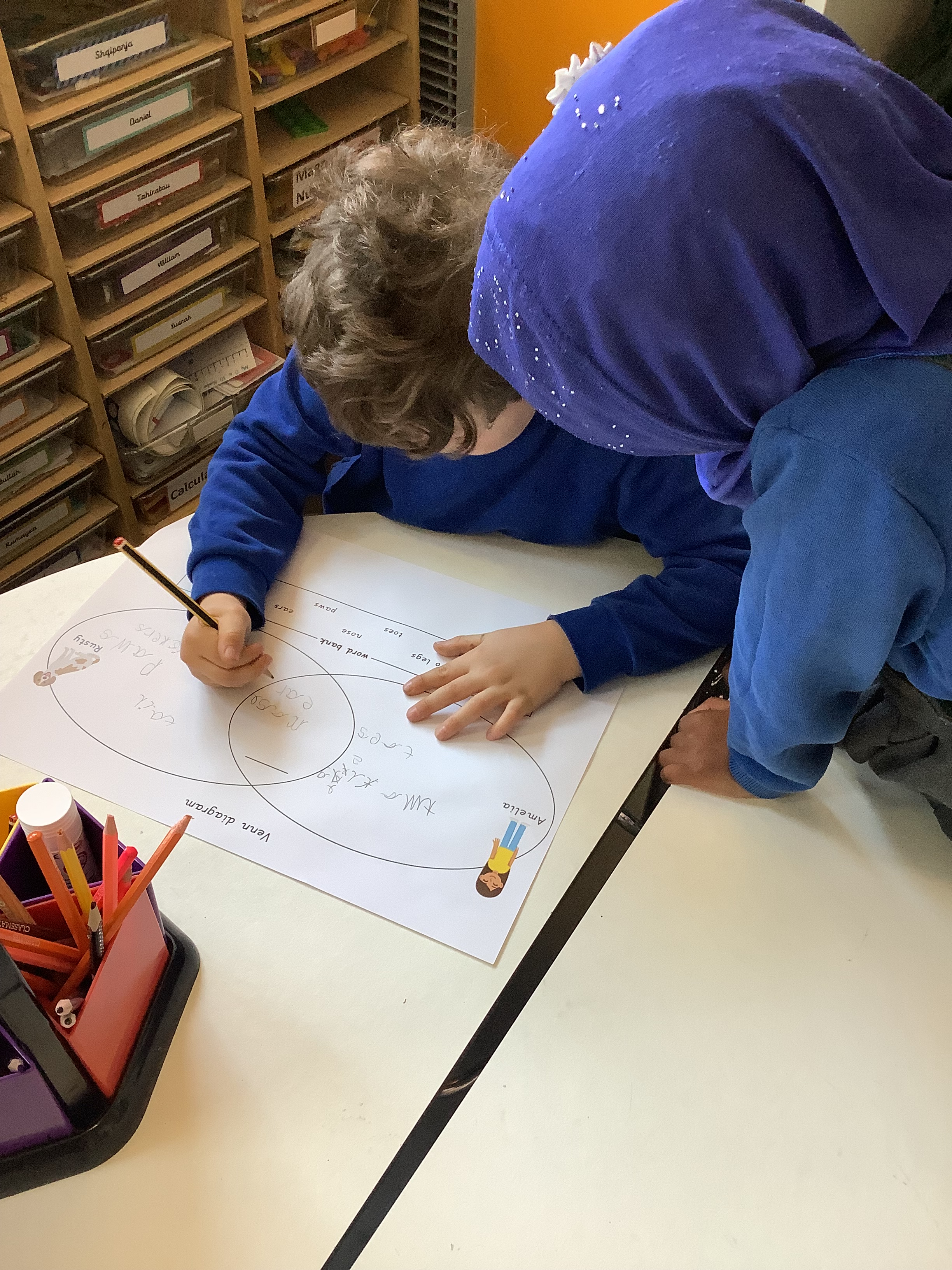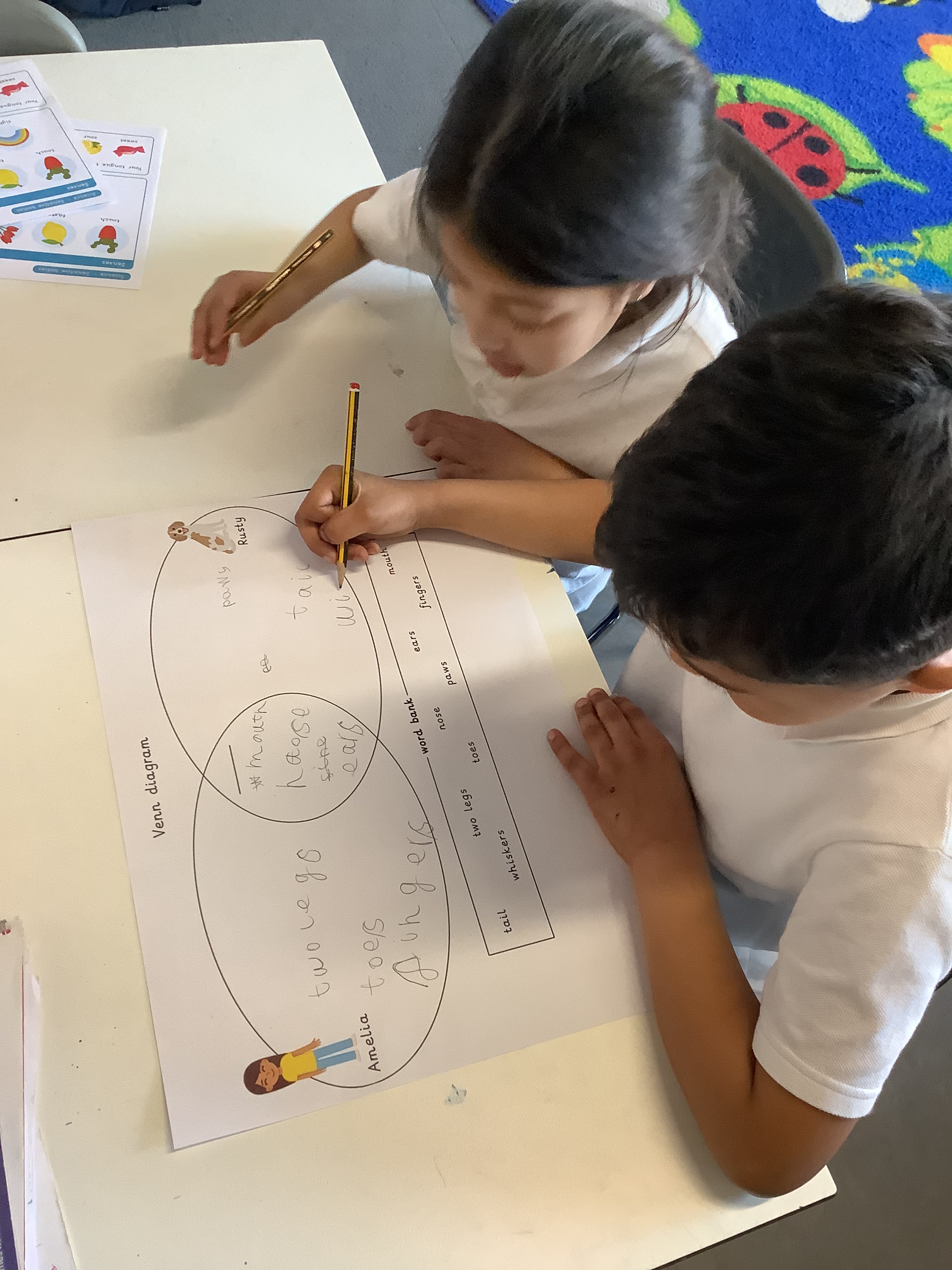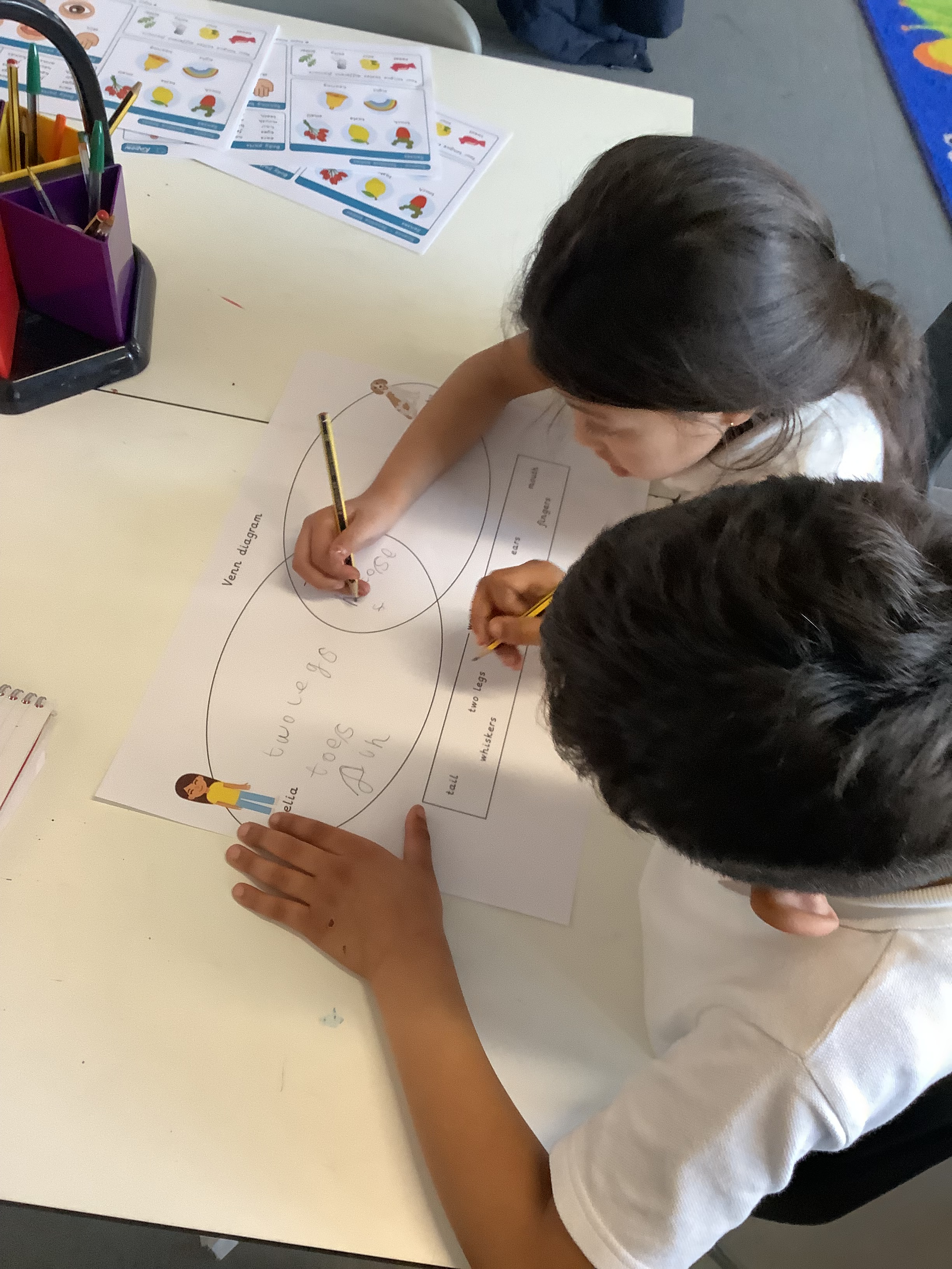 We also had a class discussion about birds and cats, exploring which body parts are similar and which are different. The children then worked in pairs using a Venn diagram to compare human and dog body parts, identifying which were shared and which were unique.