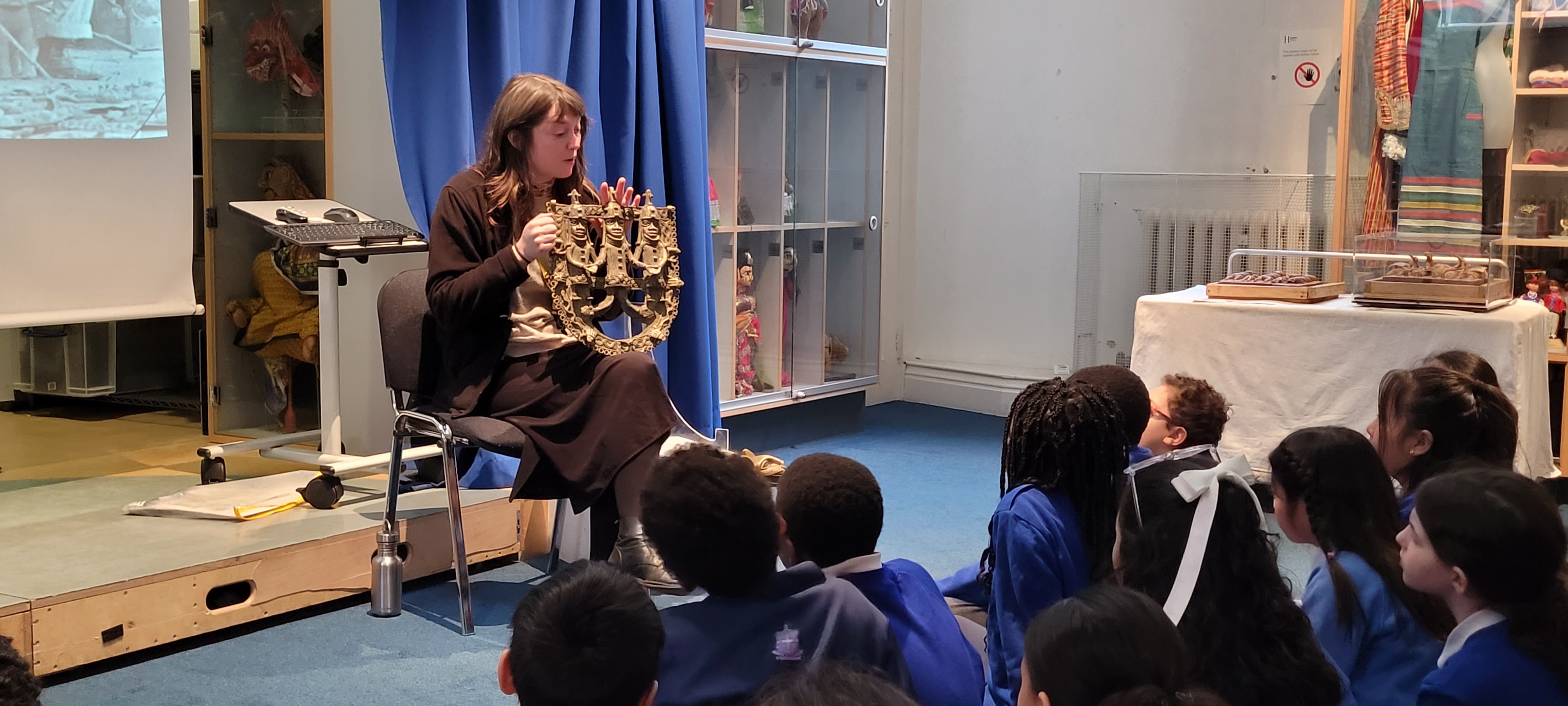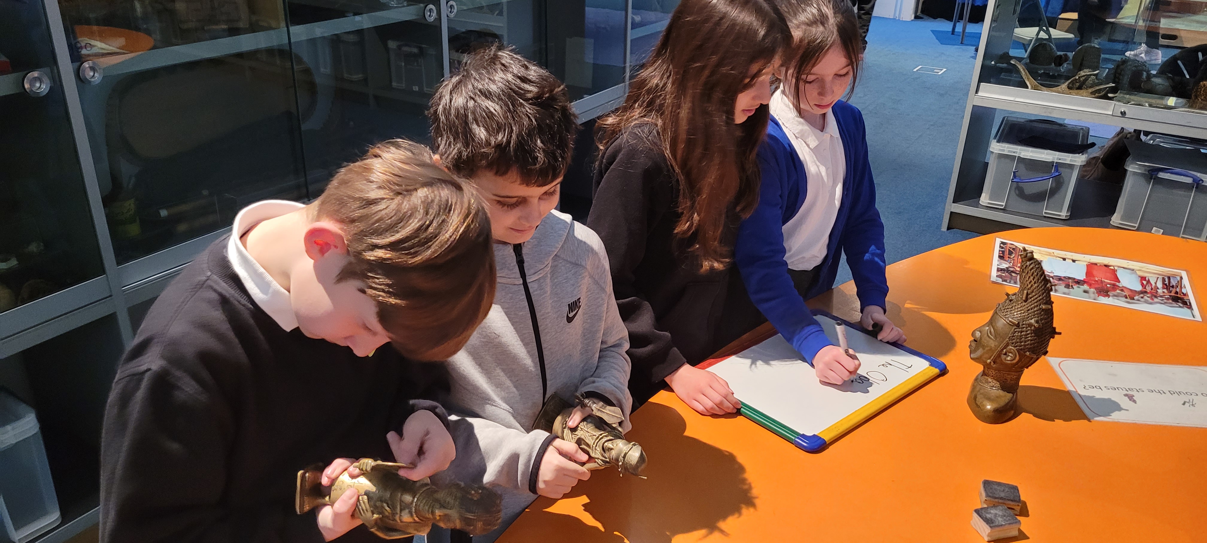 Afterwards, we took part in a workshop where we could handle artefacts and explore how some of the objects are made in Benin Kingdom. We discussed the ethical ownership of the artefacts that were taken in the Punitive Expedition of Benin in 1897. In one of our history lessons, we had a passionate debate on this topic, so we were able to share our knowledge brilliantly with the workshop leader.