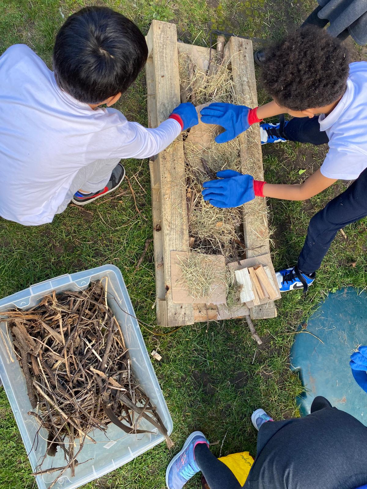 We also helped to make an insect refuge out of old pallets, branches, sticks and straw to attract beneficial creatures and wildlife to the garden.