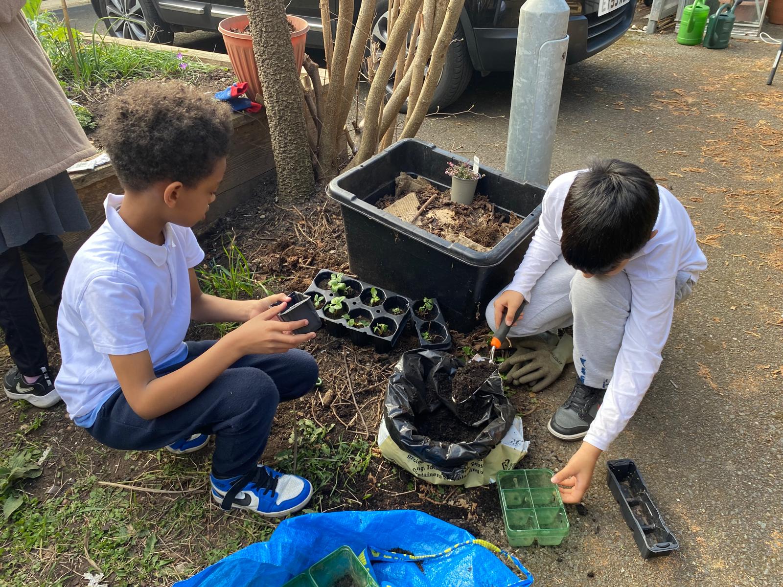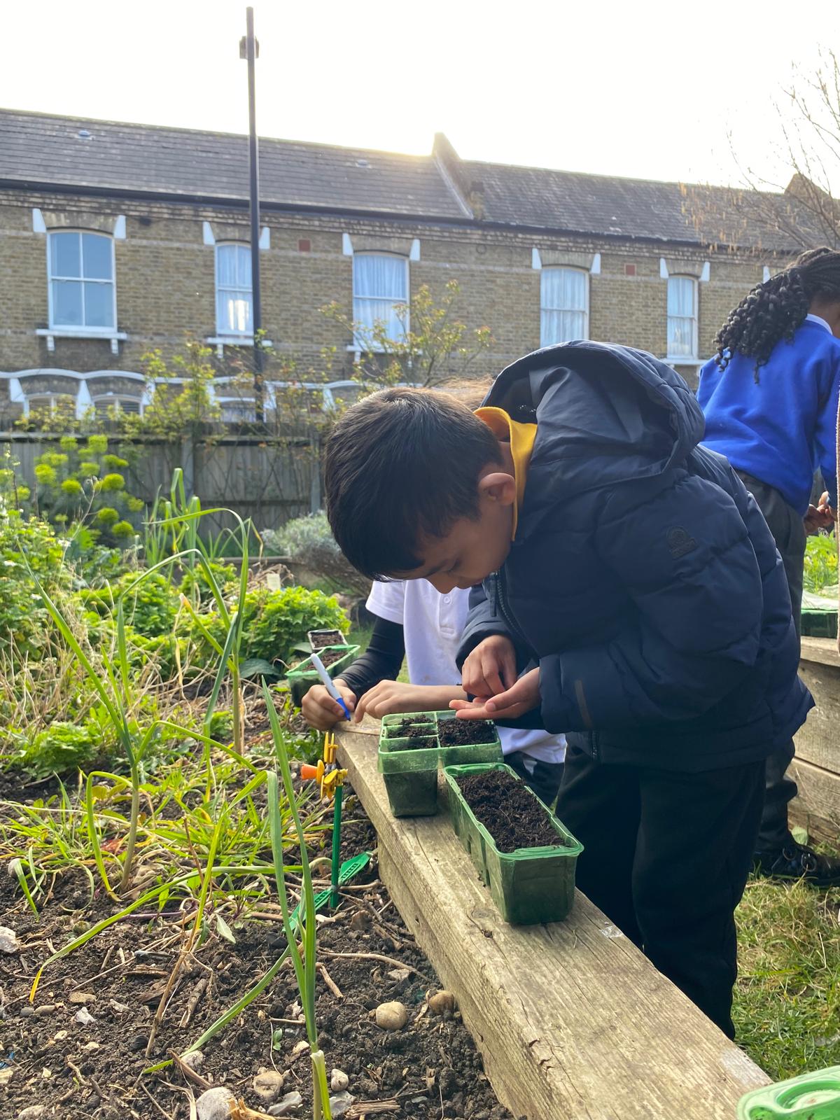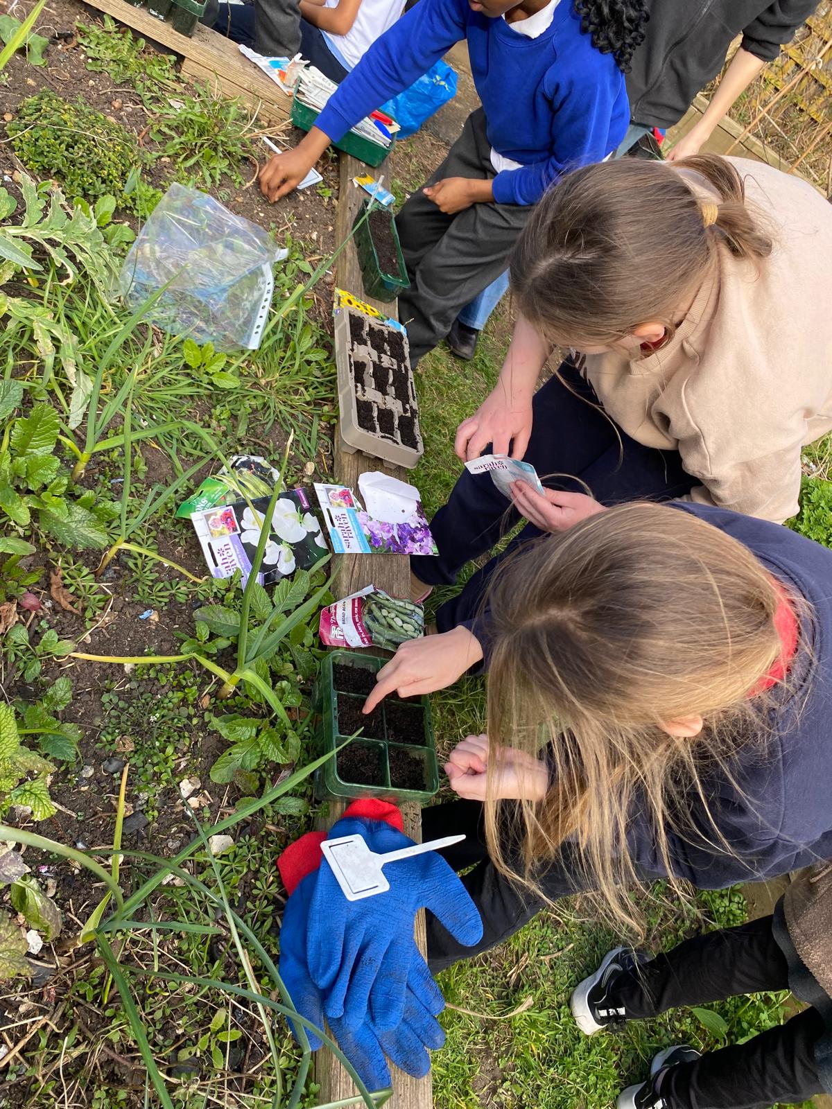 With the help of Capucine from Pembroke House, Catherine, Sara and some parent volunteers, the children planted sunflowers, sweet peas, broad beans, runner beans and marigolds.