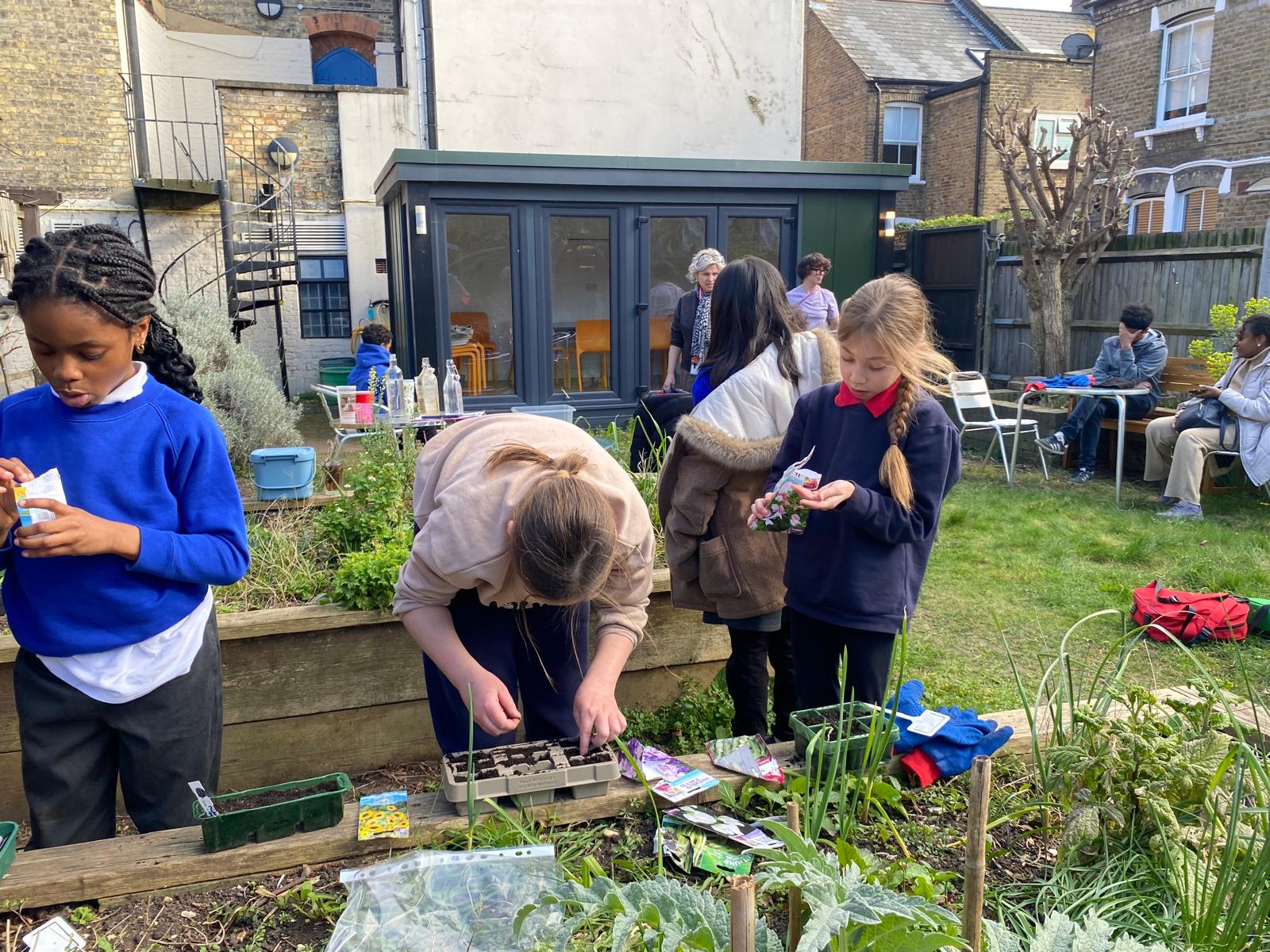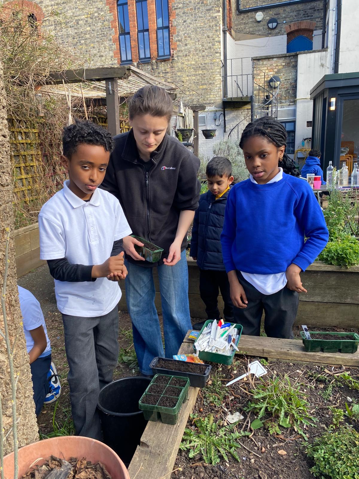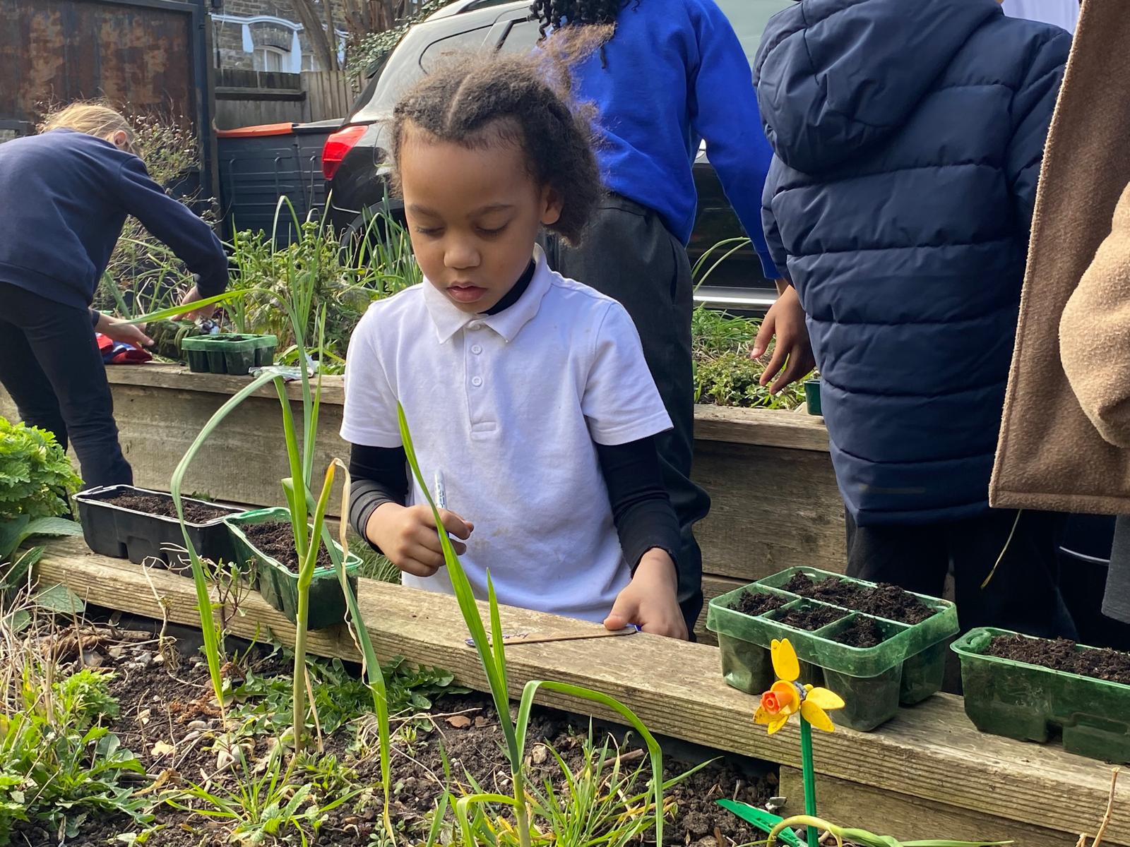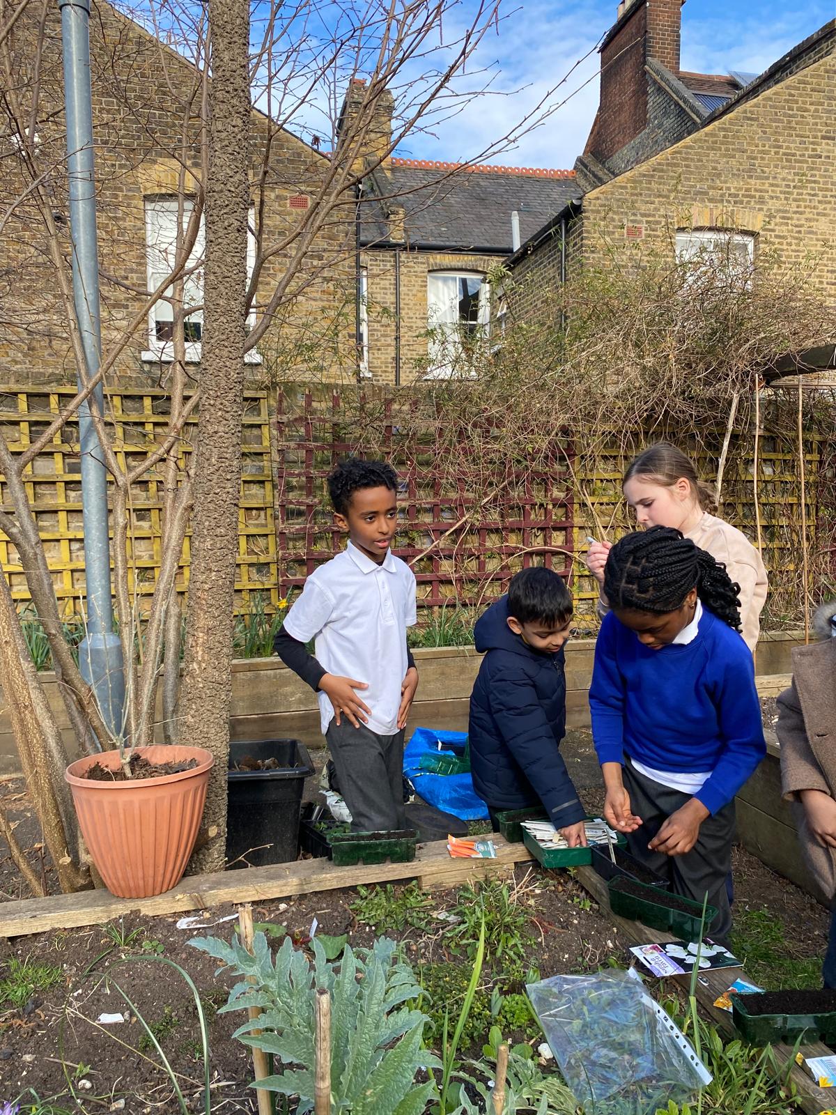 With the help of Capucine from Pembroke House, Catherine, Sara and some parent volunteers, the children planted sunflowers, sweet peas, broad beans, runner beans and marigolds.