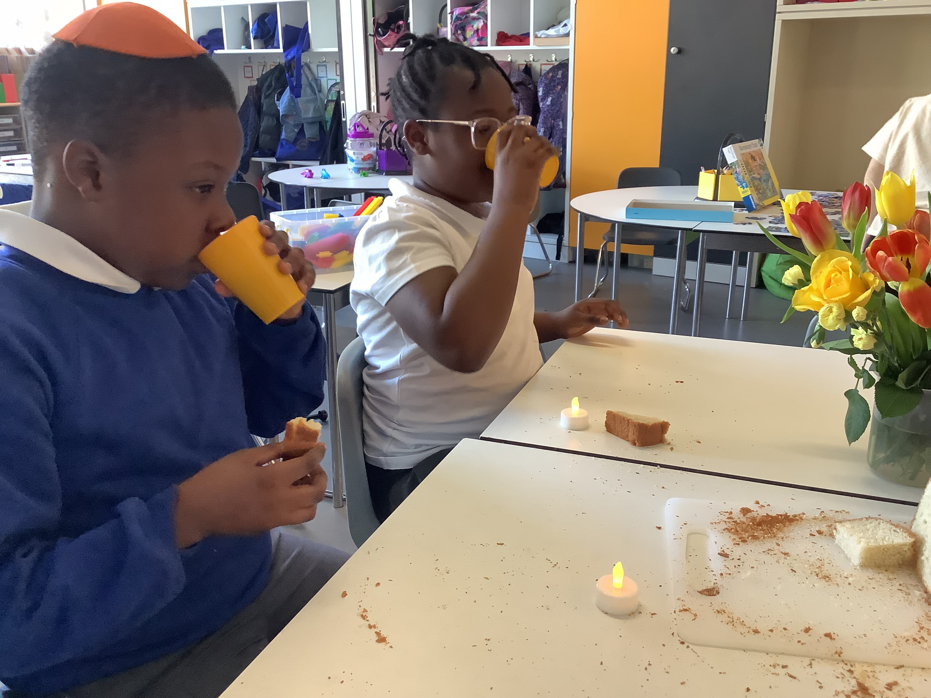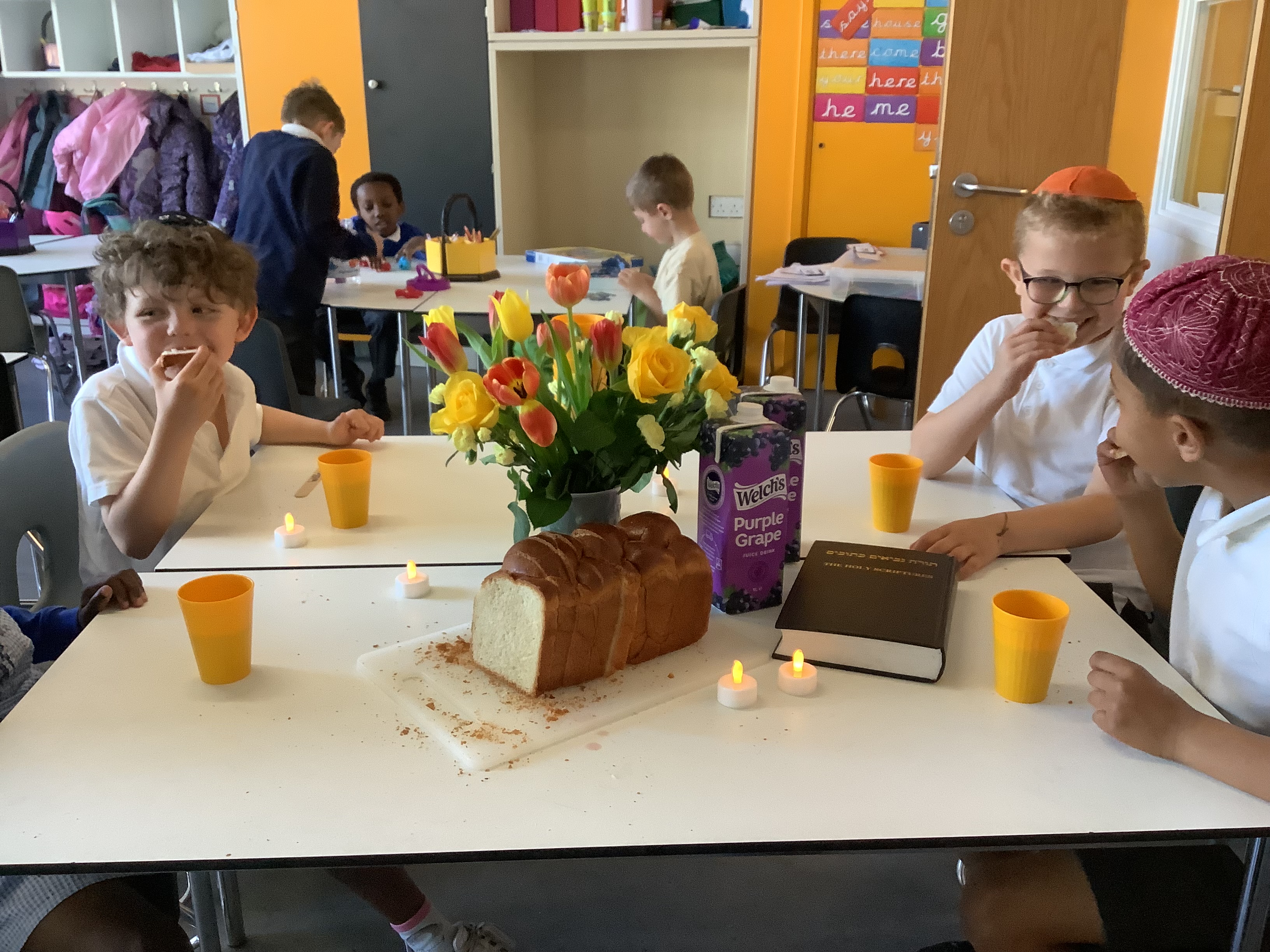 A highlight of the afternoon was a visit from a Year 3 pupil, who shared their personal experiences of celebrating Shabbat. The children were fascinated to hear about the special foods, family traditions, and games that are part of their weekly celebration. It was a wonderful opportunity to hear a real-life perspective and further deepen their understanding of this special time. It was a valuable opportunity not only to learn about another faith, but also to pause, appreciate the people around us, and think about how we can bring more calm and togetherness into our own routines.