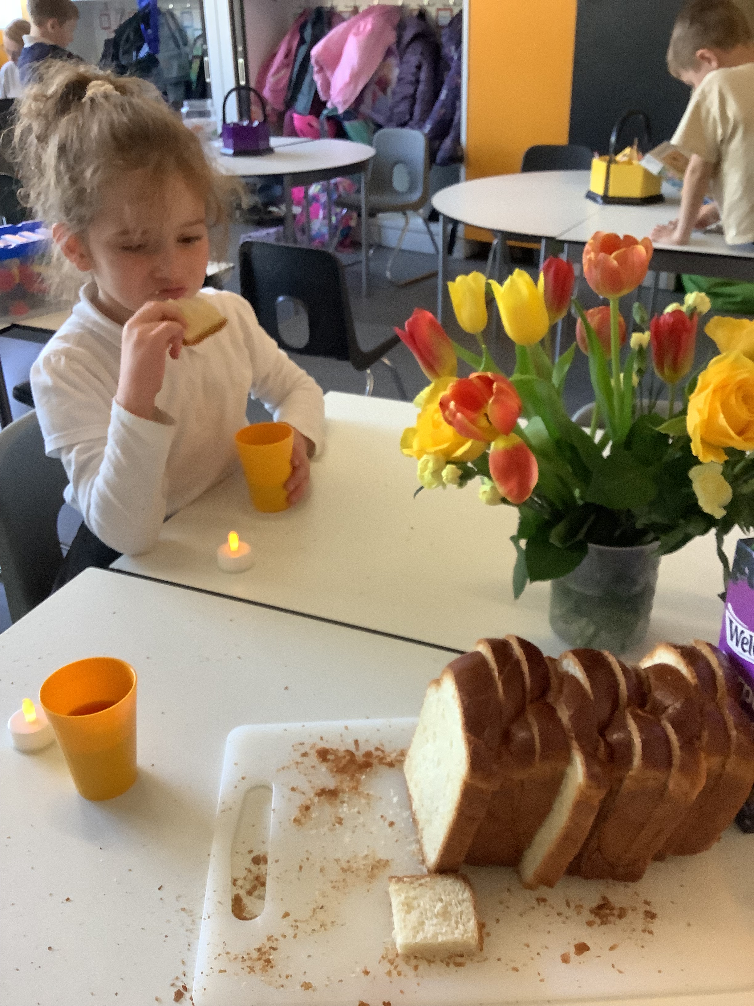 This week in R.E., our children have been learning about Shabbat and why it holds such special significance in Jewish life. As part of our exploration, the class enjoyed tasting traditional Shabbat foods—challah bread and grape juice. This hands-on experience helped bring the learning to life and offered a meaningful connection to Jewish customs.