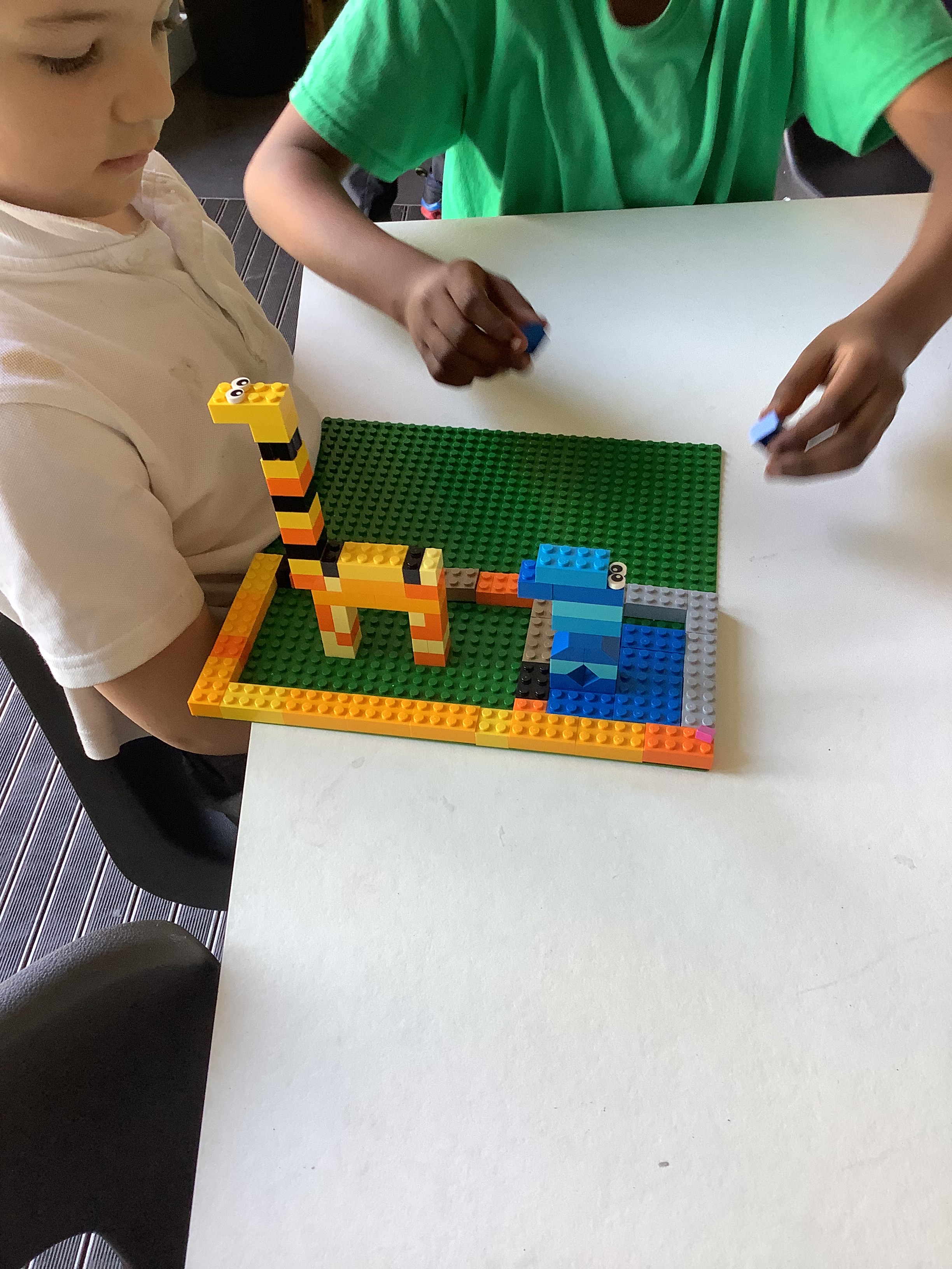 This week, our focus was on building animals. The children worked both independently and in small groups to bring their animal designs to life. We were amazed by the range of Lego animals they created, including flamingoes, monkeys, lions, dogs, giraffes and even some Lego humans!