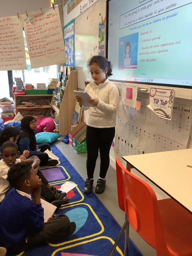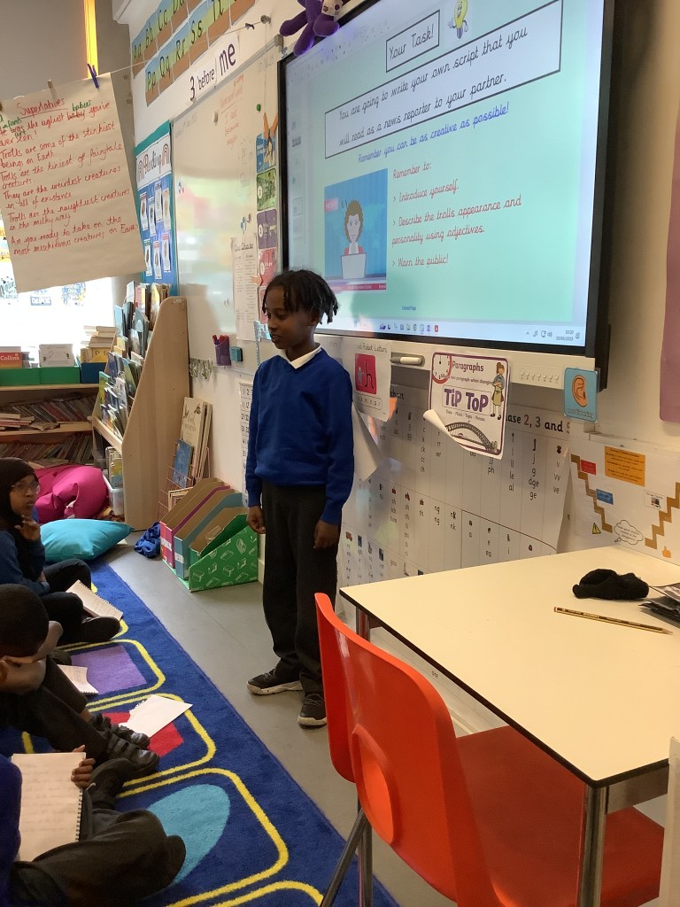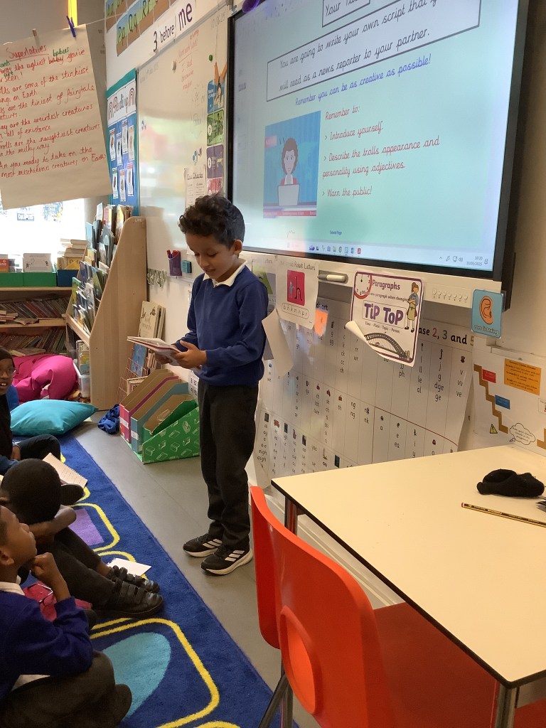 The children did a fantastic job of presenting in front of the class and really demonstrated their understanding of our text, “Apply to be a Troll Trapper.” Lookout Newsround, we are after your jobs!