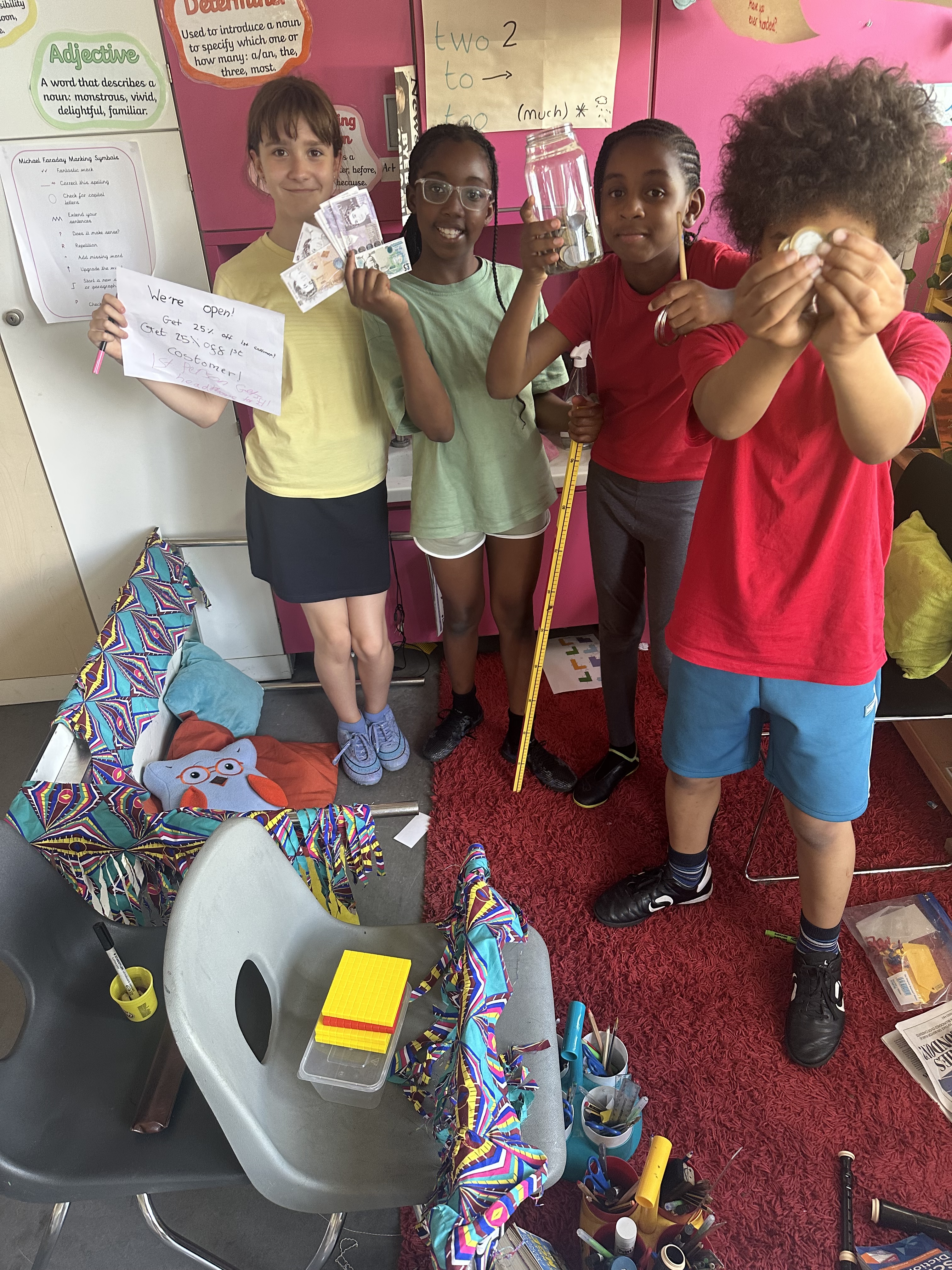 In Art, we explored installation pieces using everyday objects. Our classroom was completely transformed as we turned it upside down and used tables, chairs, books and even maths resources to build imaginative, fantastical worlds. It was a brilliant way to think outside the box and express our creativity – and we definitely had a lot of fun doing it!