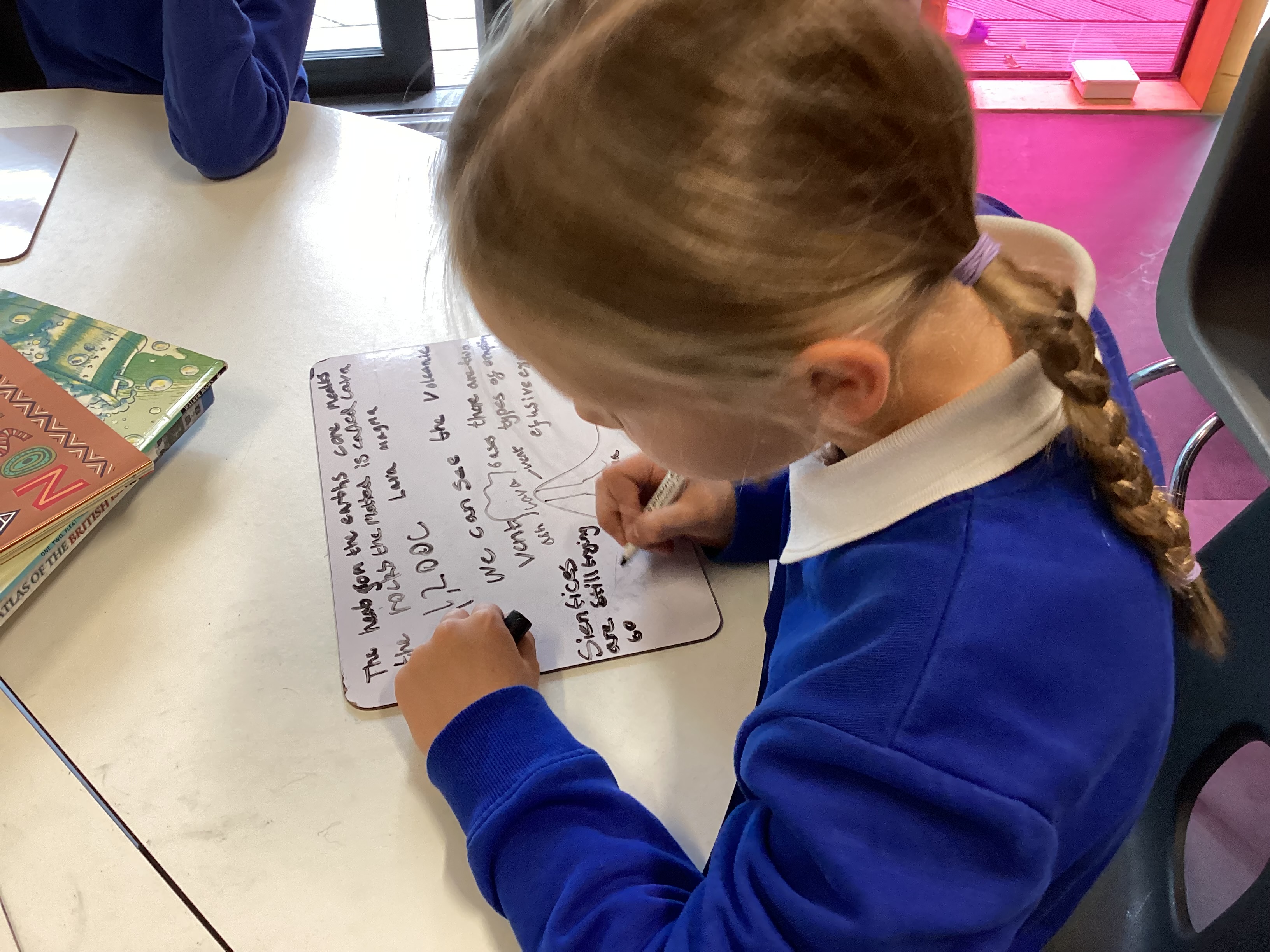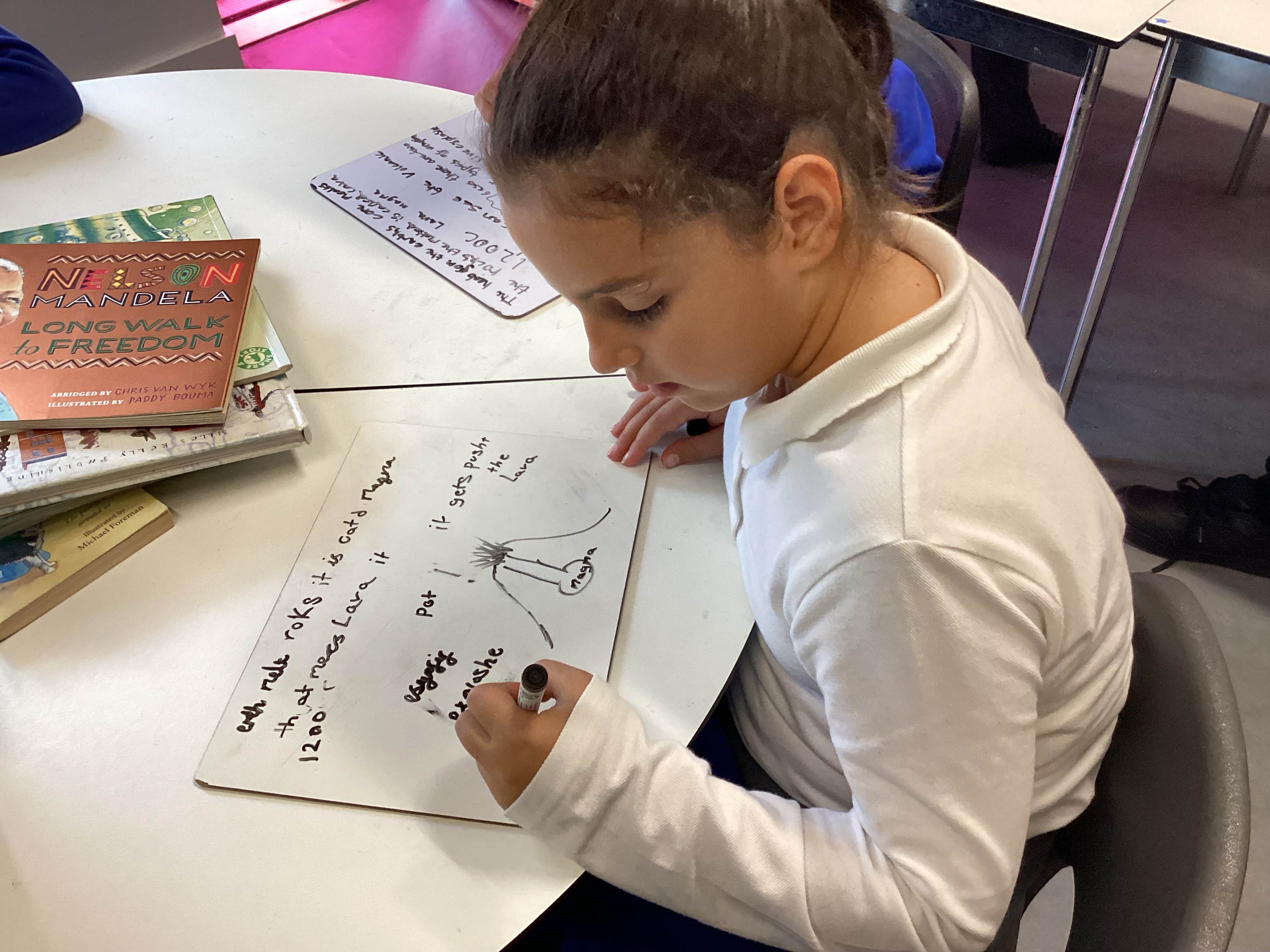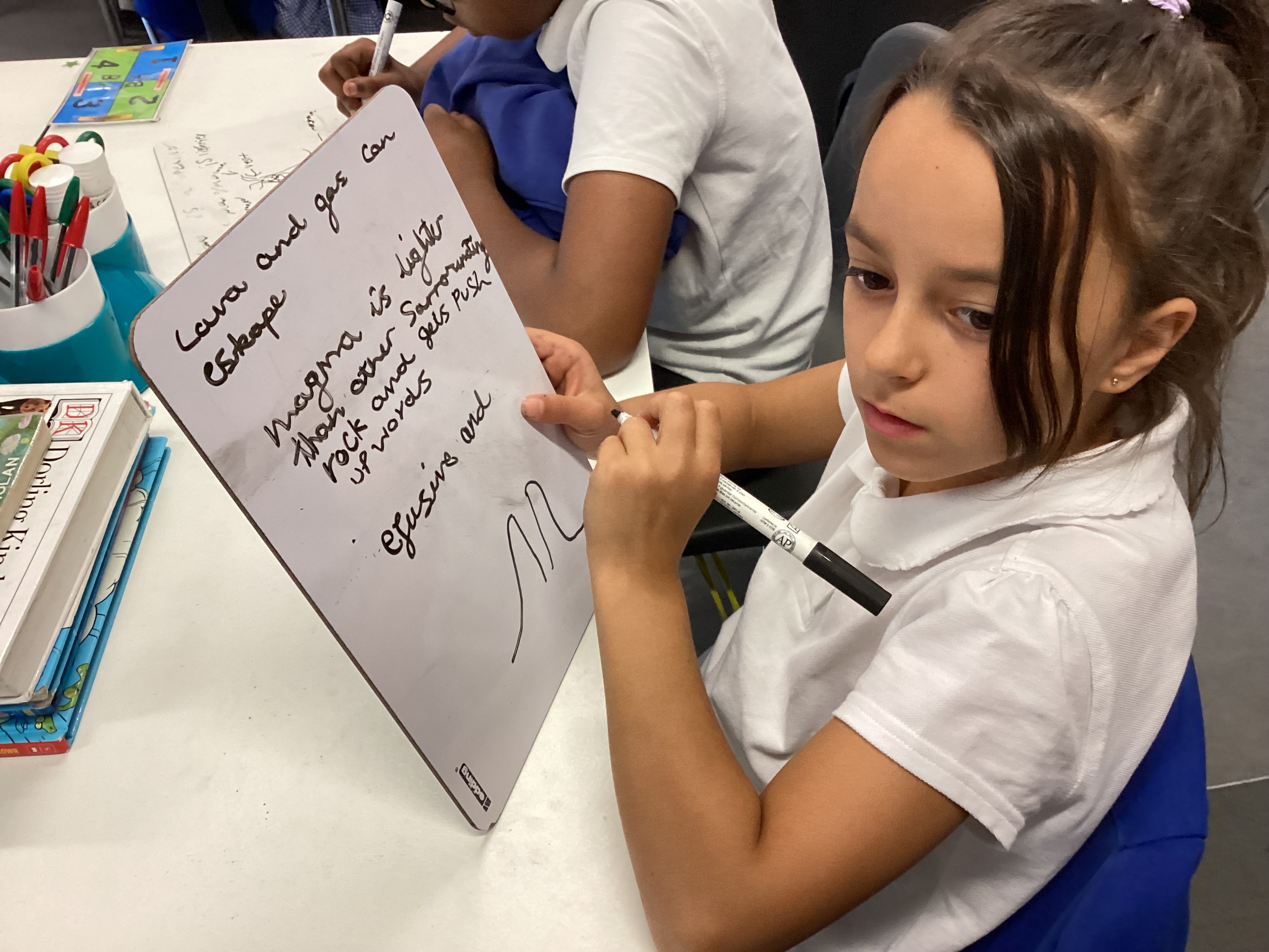 In this lesson, the children worked together to jot down key facts about volcanoes, before labelling the different parts in their diagrams. There was lots of fantastic discussion as they pieced together their knowledge and built a clear picture.