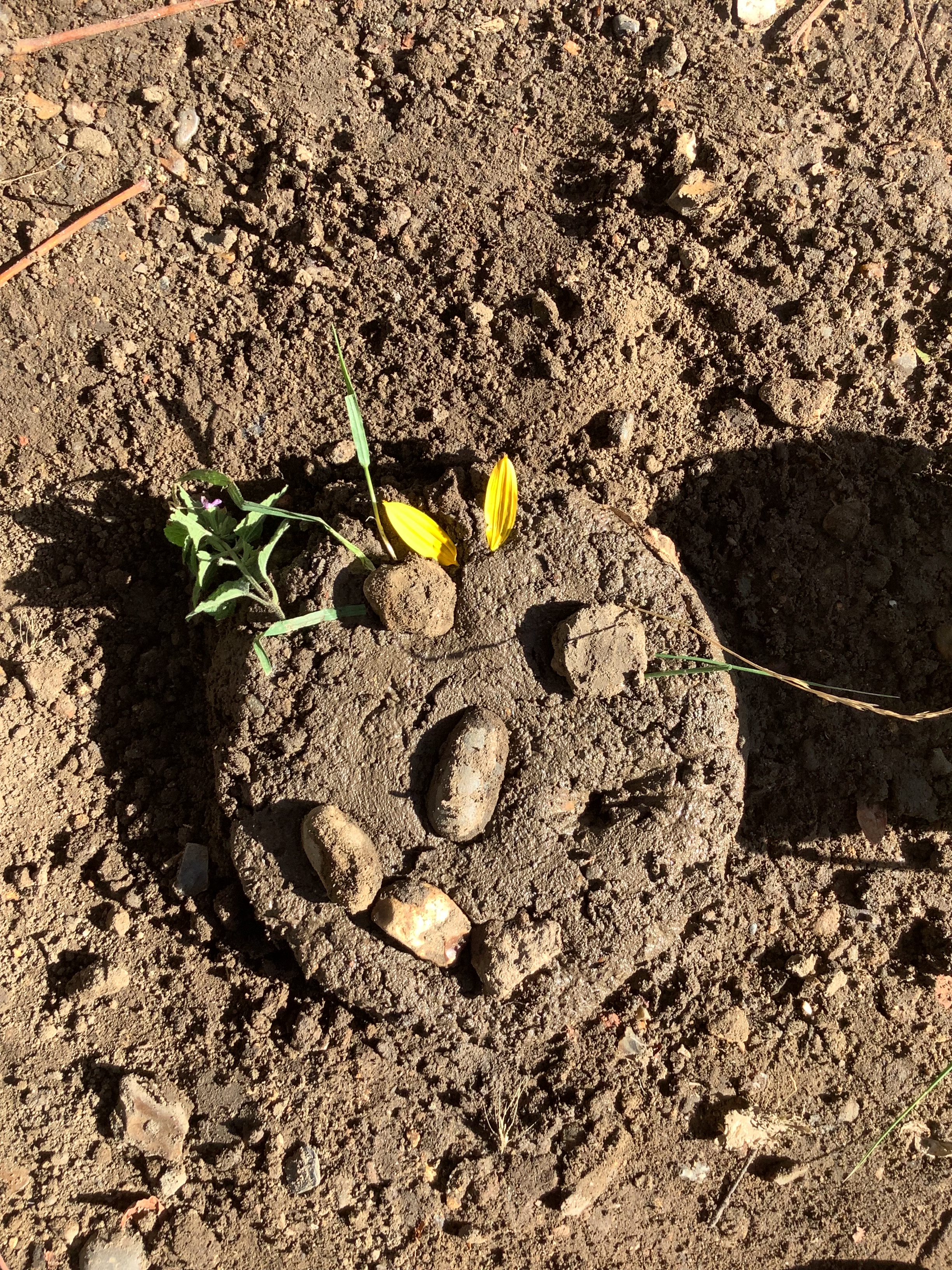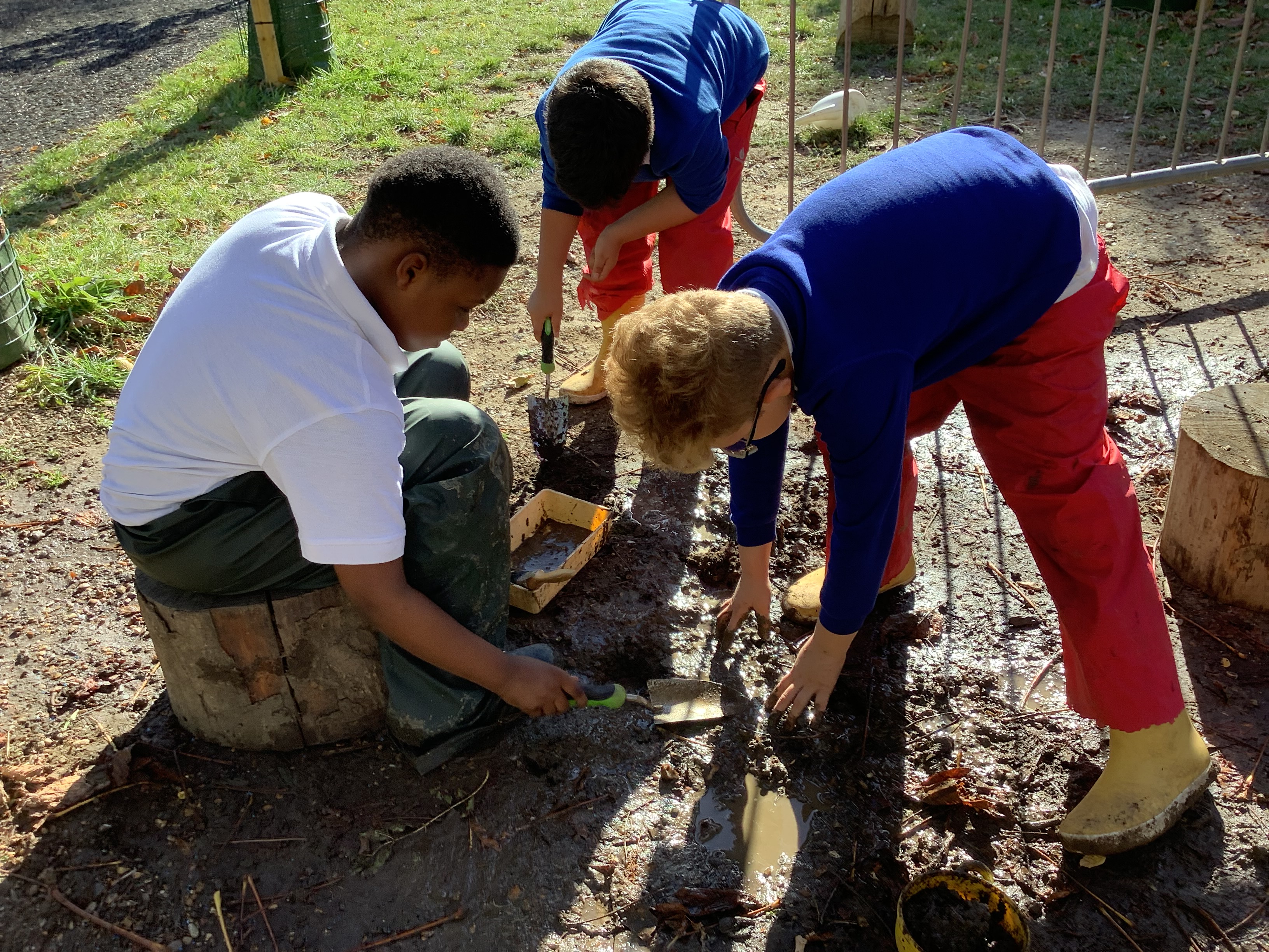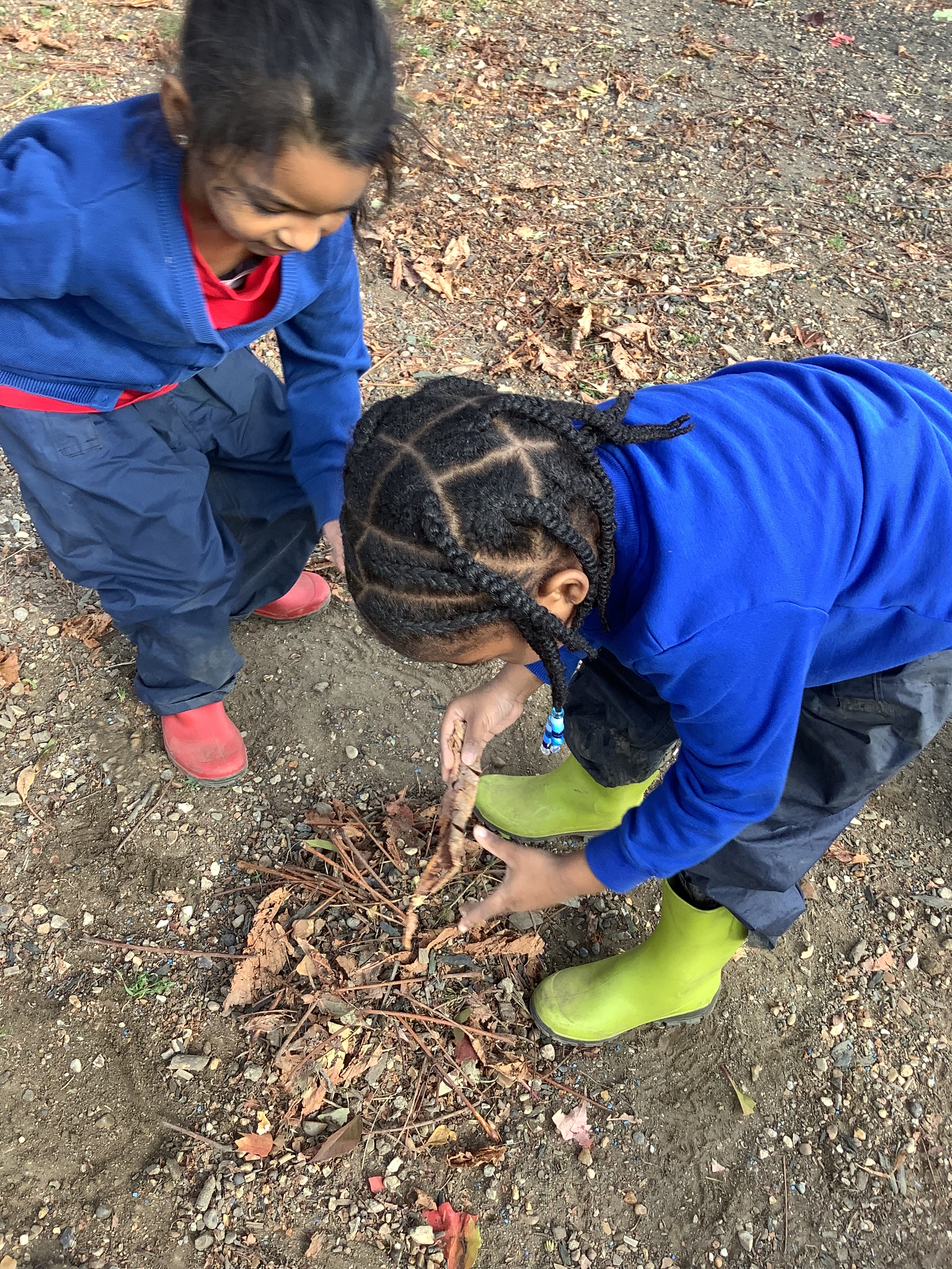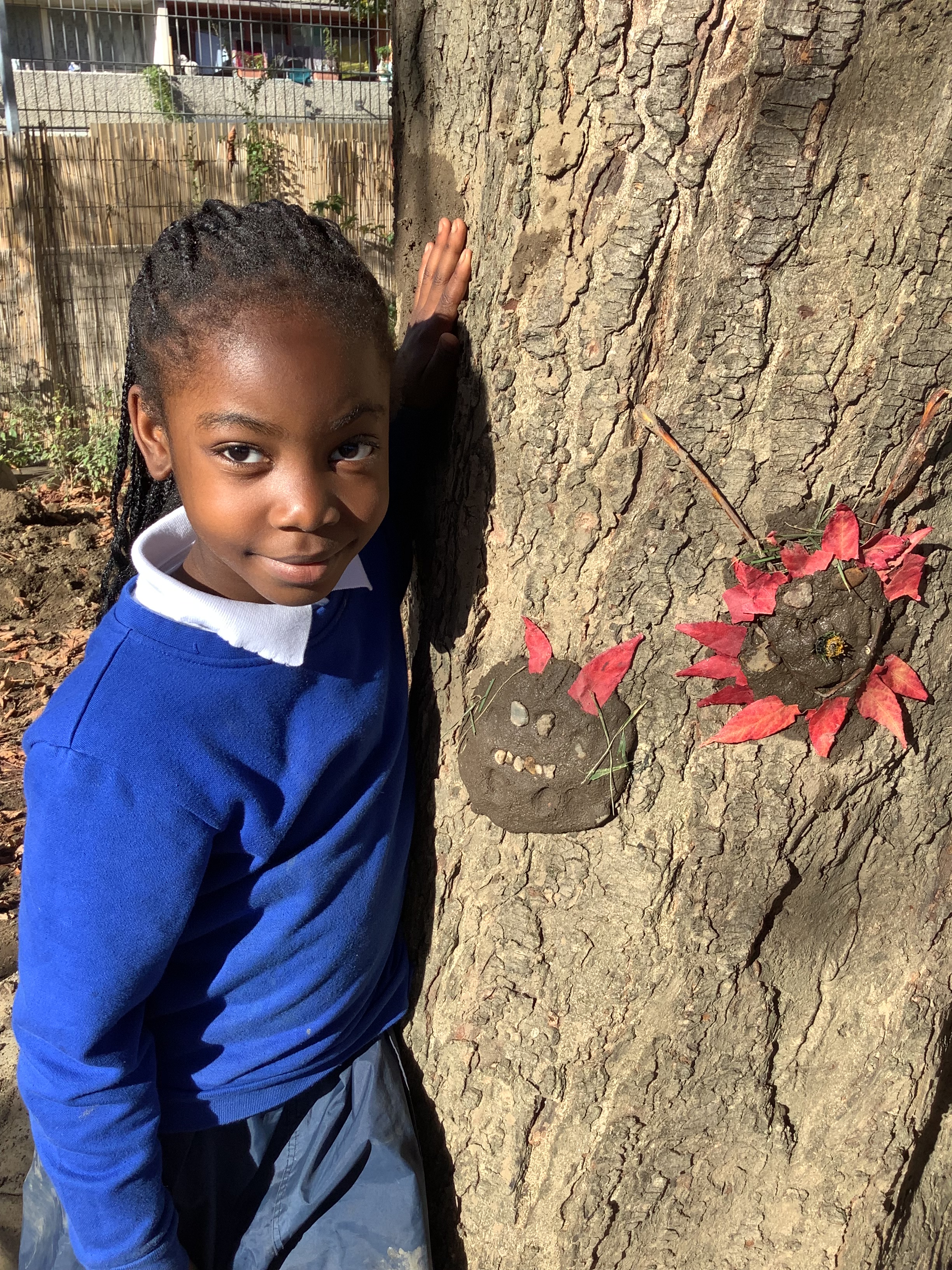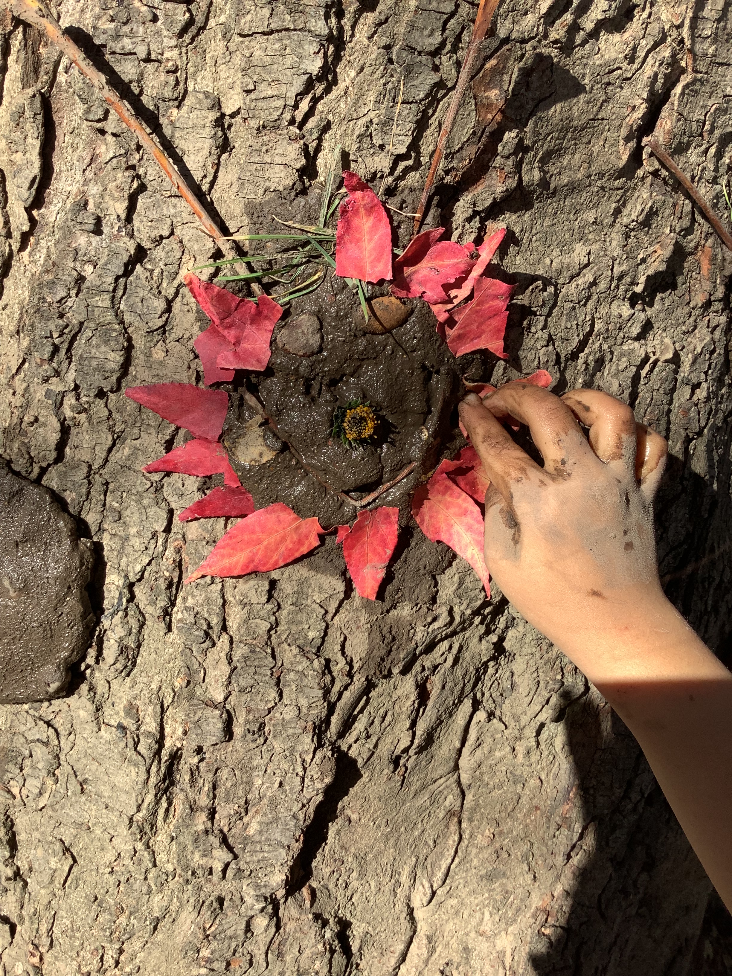 Of course, no outdoor learning would be complete without a little messy fun – and the children loved experimenting with soil + water = mud! They used mud to make imaginative creations, learning through play and sensory exploration.