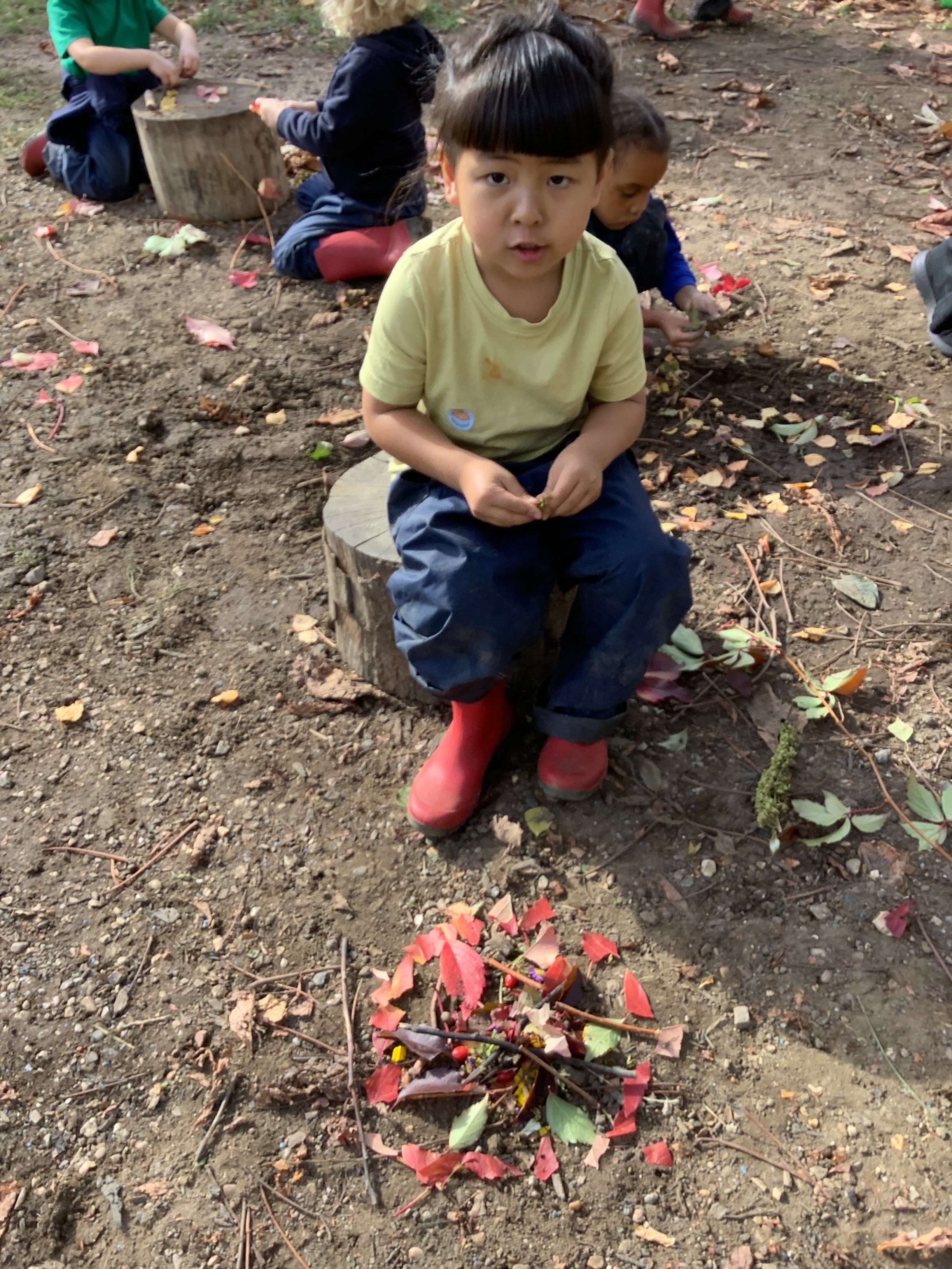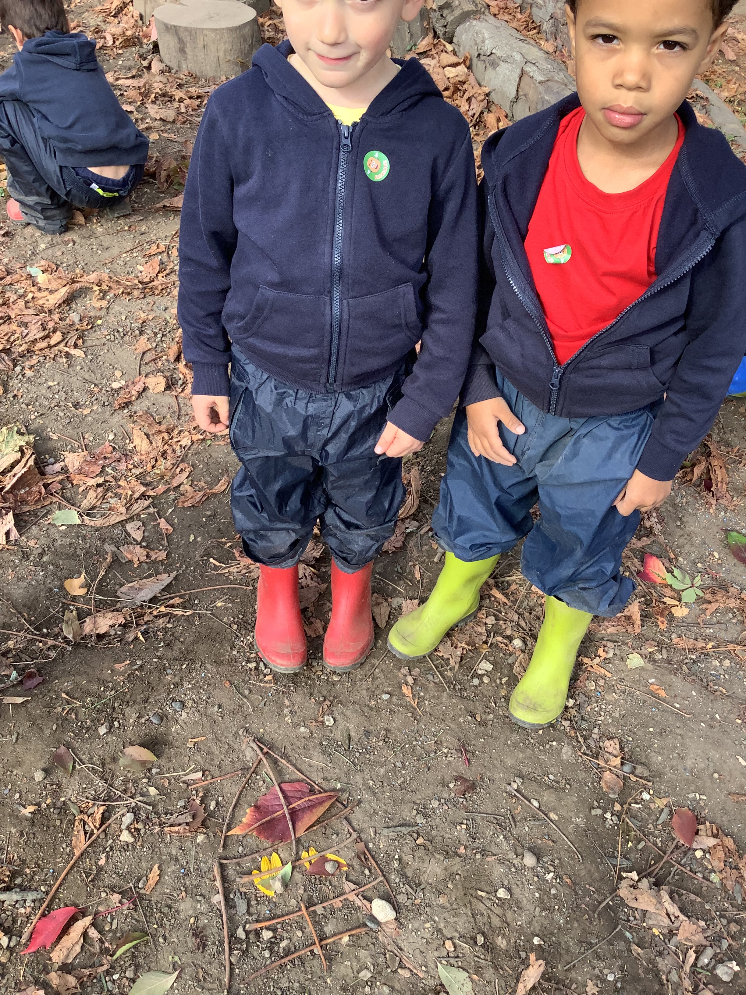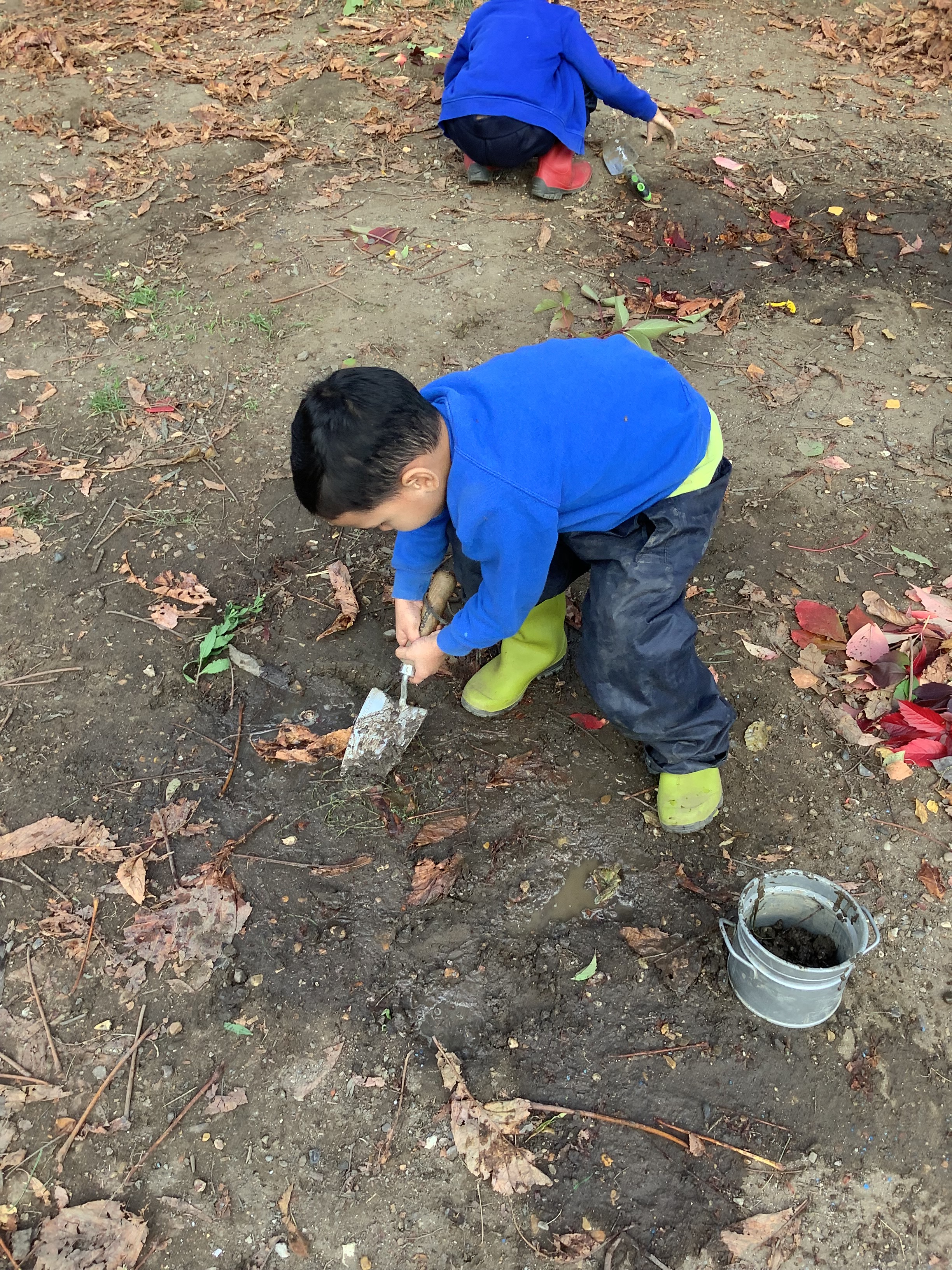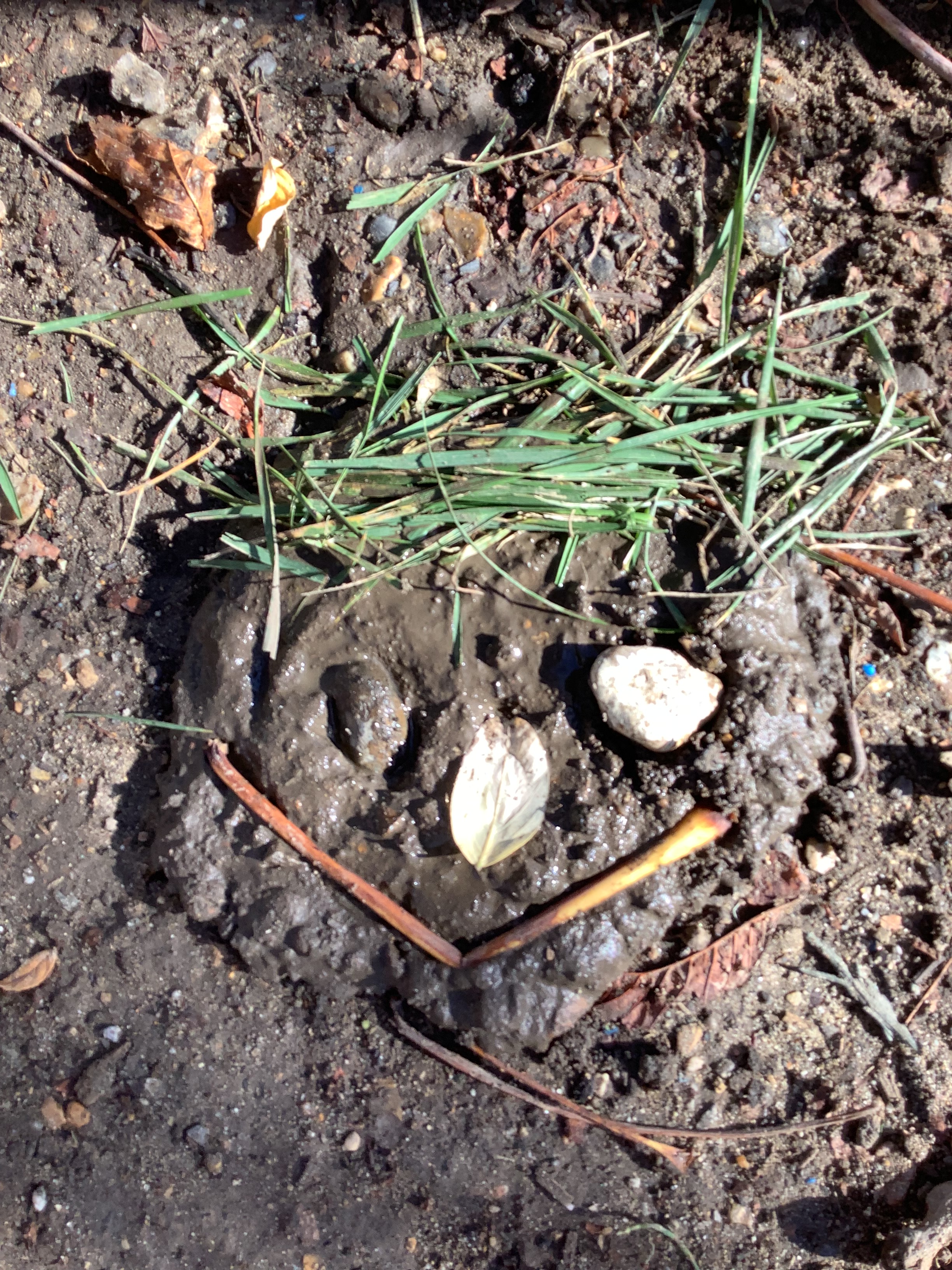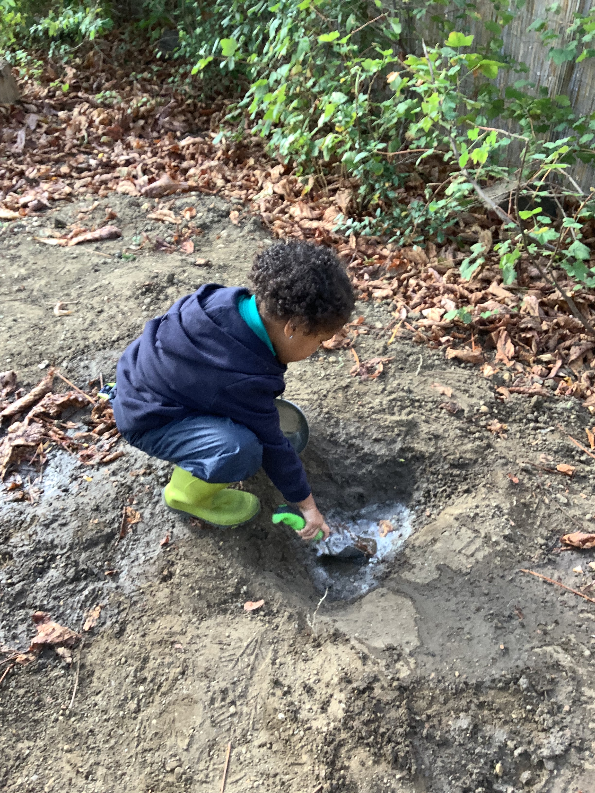 Of course, no outdoor learning would be complete without a little messy fun – and the children loved experimenting with soil + water = mud! They used mud to make imaginative creations, learning through play and sensory exploration.
