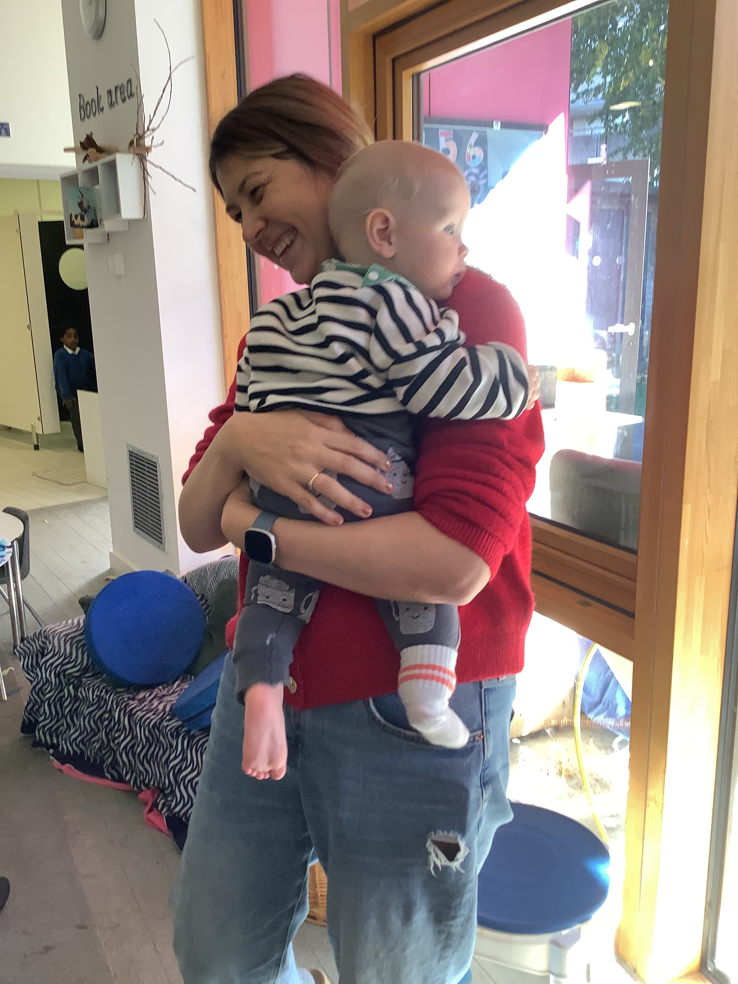 This term, our topic has been “Ourselves and All About Me”, and we have been learning about our families, and where we come from. The children drew their country flags and made the England flag using red and white pegs on boards. We also explored the human life cycle, learning how we start life as babies and grow into adults. We talked about what we couldn’t do as babies and what we can do now — there were some very funny ideas shared! To make our learning come alive, we were lucky to have some very special visitors. Baby Arthur and his mummy Alice, and baby Oscar and his mummy Sally, came to visit us. The children loved asking them questions about life with a baby and learning all about what babies can (and can’t!) do. We also had a visit from Manja, Aine’s mum, who told us all about the Netherlands, her home country. She shared fascinating facts about how Holland reclaimed land from the sea, showed us the Dutch flag, and talked about her favourite Dutch foods.