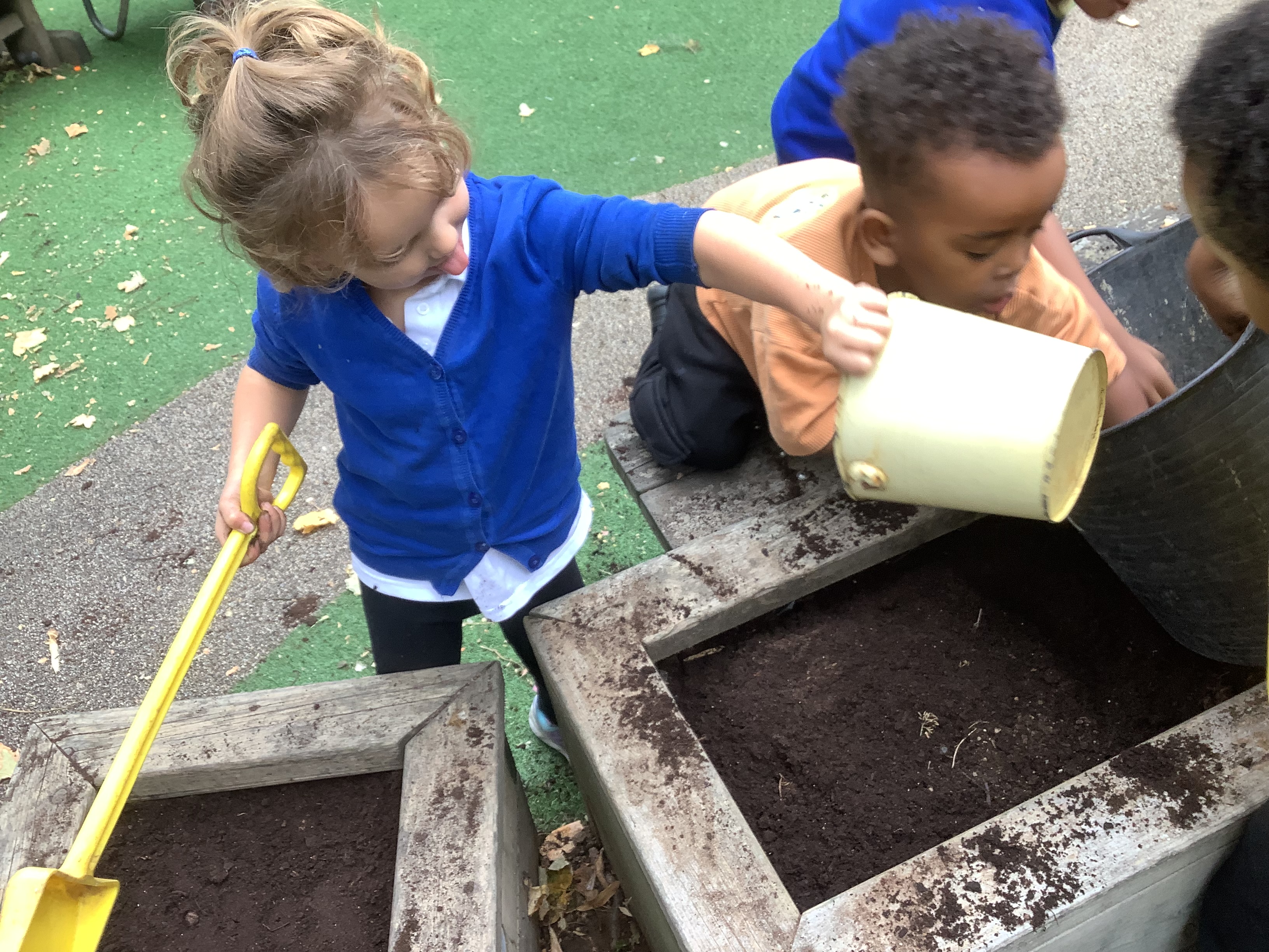 Our Forest School sessions have continued to give us rich, hands-on experiences with nature. We’ve been watering our plants and vegetables, making leaf art with natural materials, and building dens with our lovely Catherine. A special thank you to Shaun, Florence’s dad, who joined us to share his amazing gardening skills! He helped us plant daffodil and bluebell bulbs, and together we explored dried plants with husks and pods, which inspired some beautiful observational drawings. We even discovered worms! Afterwards, we went on an Autumn walk, collecting leaves and searching for signs of the changing season. Back in class, we sorted our leaves by shape and colour!