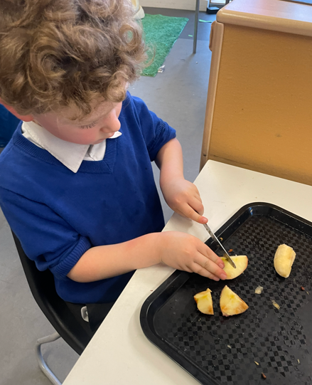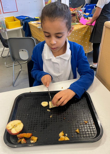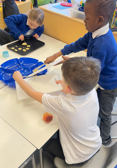 As part of our DT (Design and Technology) curriculum, Year 1 have been learning about nutrition and cooking. We explored different fruits and vegetables and learnt that fruits contain seeds, which we enjoyed identifying in a range of foods.