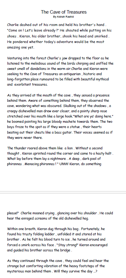 Year 6 have been busy writing their own journey stories this week and then have published them to make a class book. We based our stories on ‘The Temple of Gold’ which is about two boys who go on an adventure, meet a villain and try to escape. In our stories, we focused on characterisation, using similes and showing how a character is feeling through their actions. Enjoy reading a small selection of our stories below.