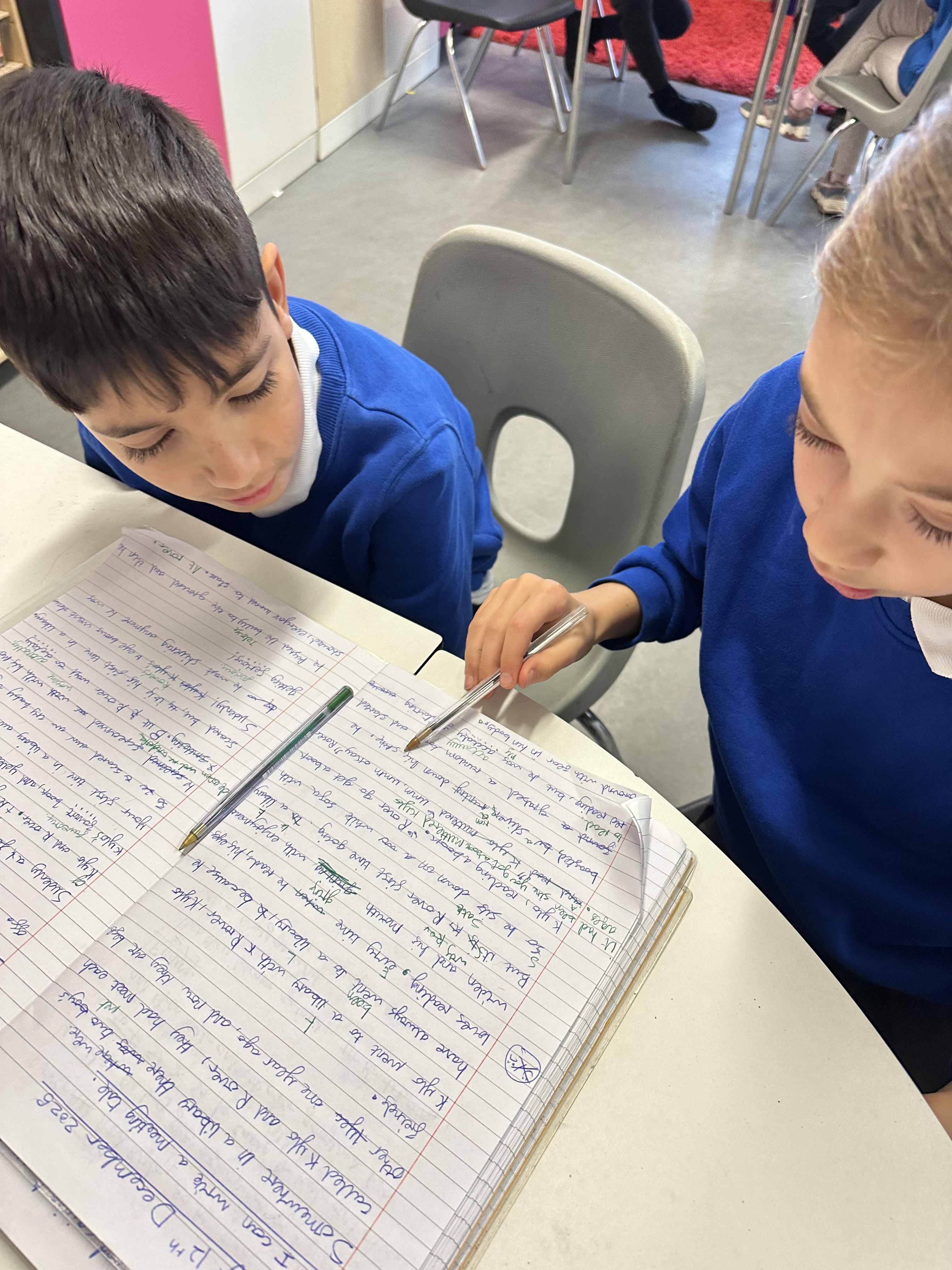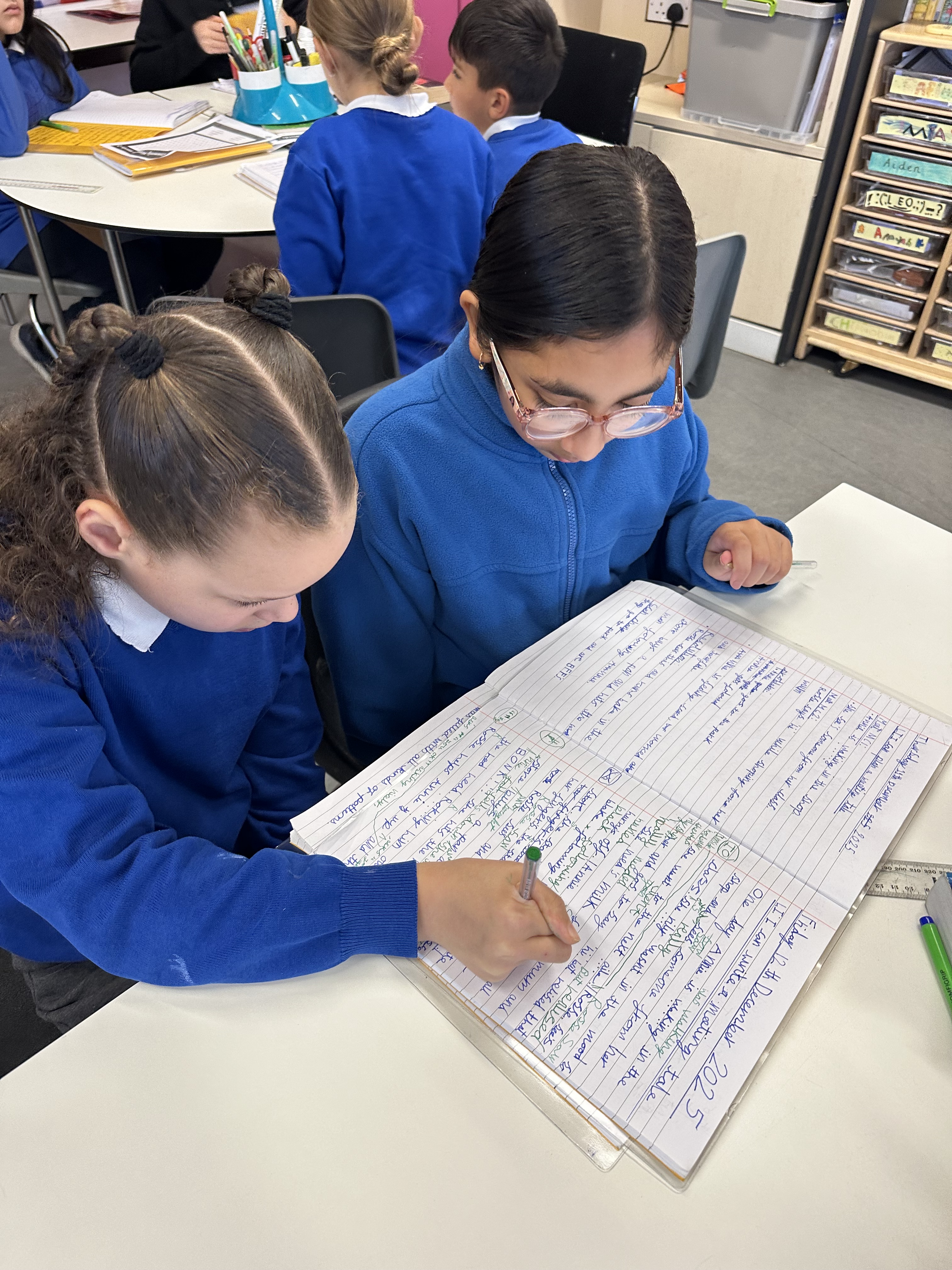 Year 5 have been creating some wonderful meeting tales. They have been developing their use of speech and the progressive tense to add emotion to their stories, while working hard to apply accurate grammar and punctuation. The results have been impressive – the stories are imaginative, engaging and a real pleasure to read! Year 5 have also demonstrated fantastic teamwork by using rally coaching to support one another in editing and improving their stories.