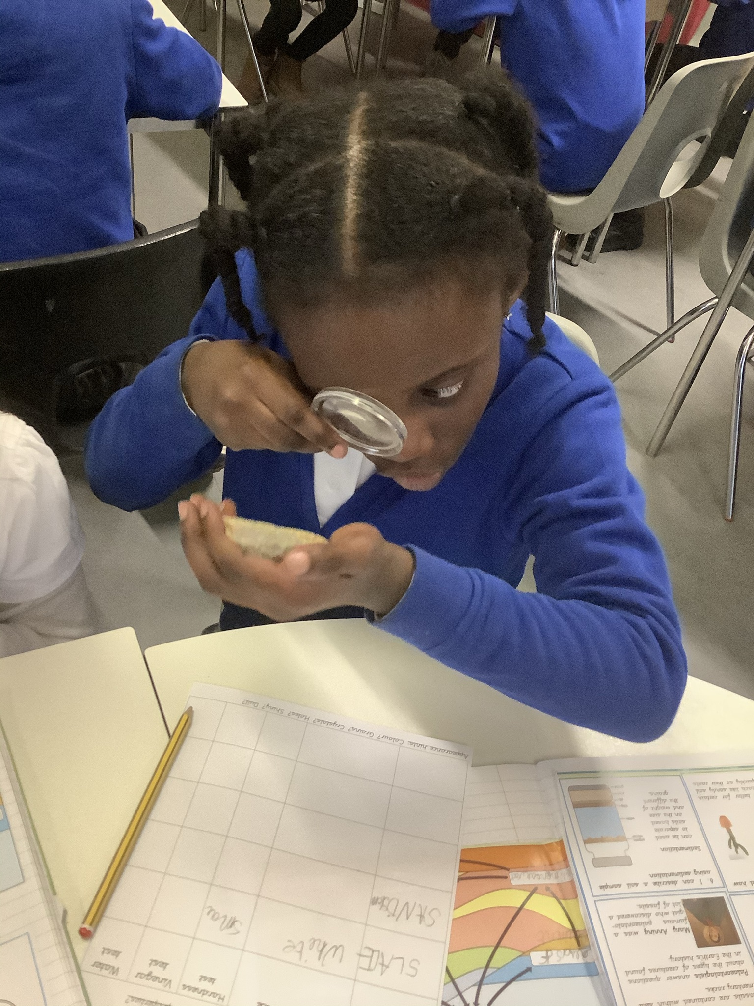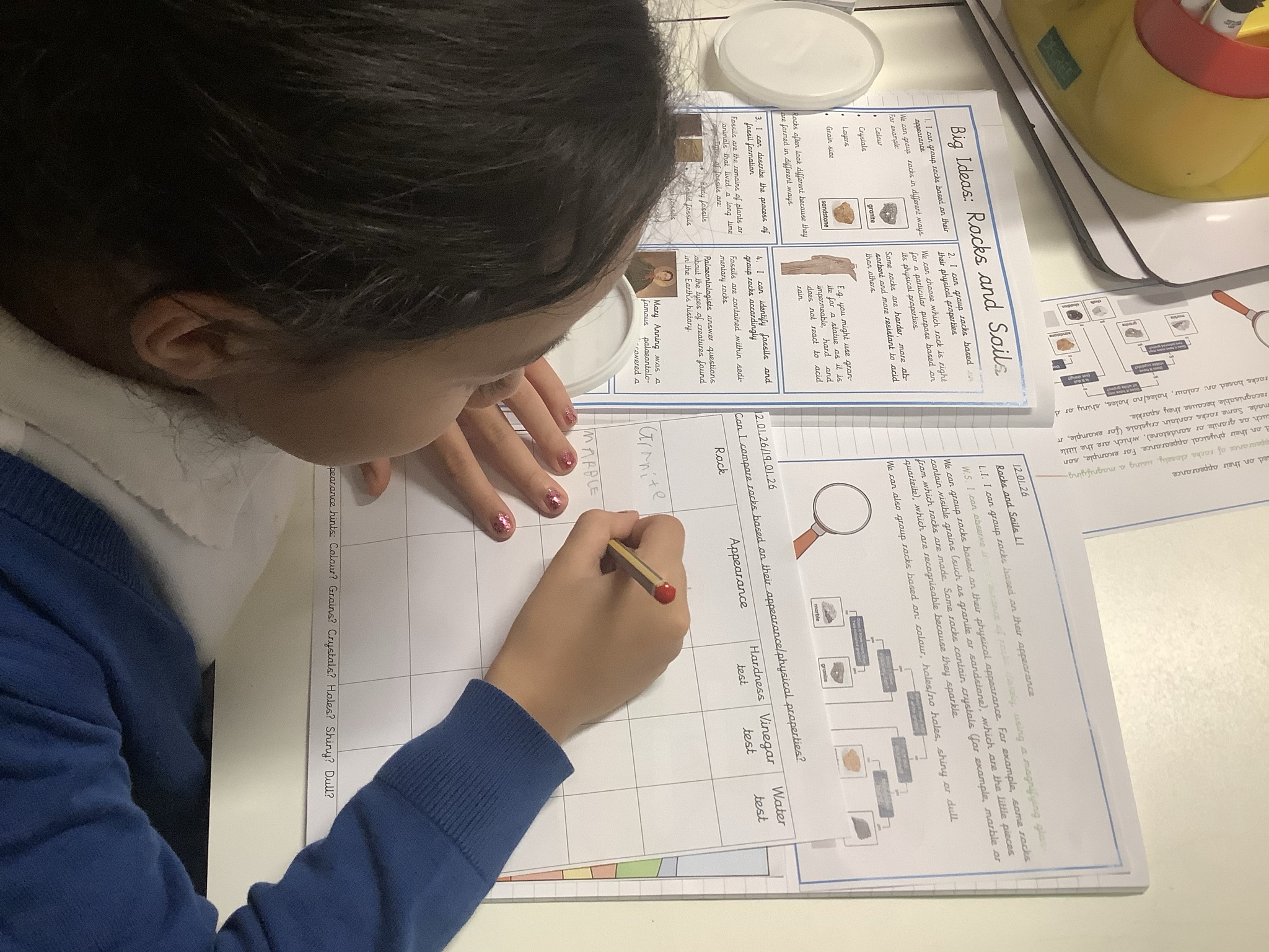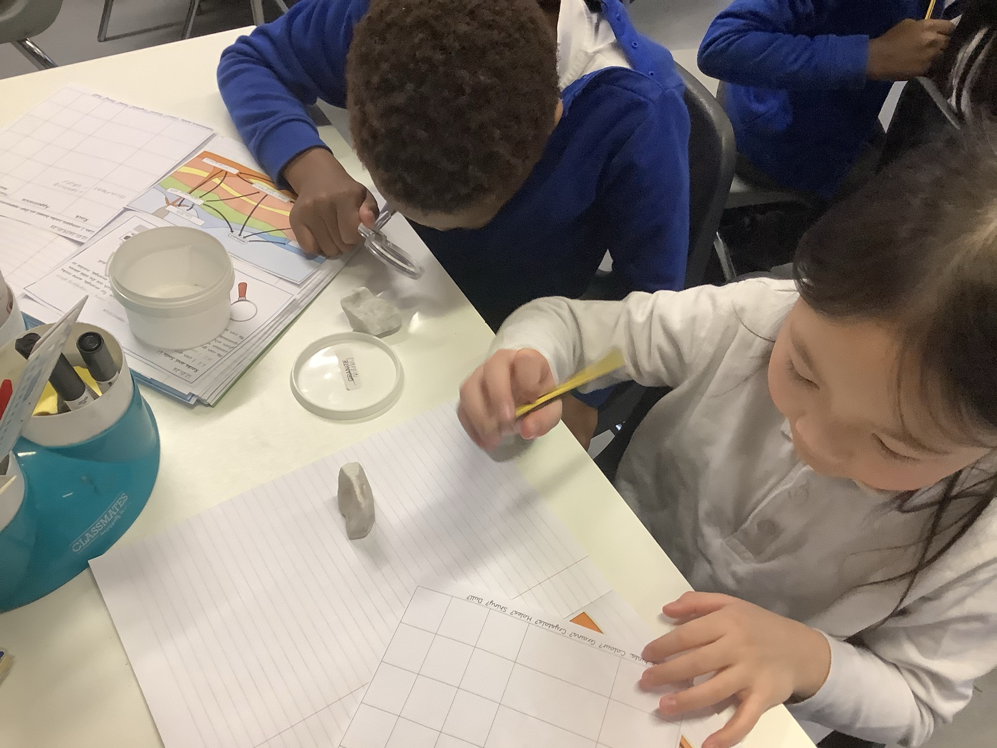 We then had the opportunity to use our scientific skills to look closely at different rock samples and make notes on their appearance. Next lesson, we will be using the same rocks to carry out some experiments to learn more about these types of rocks.