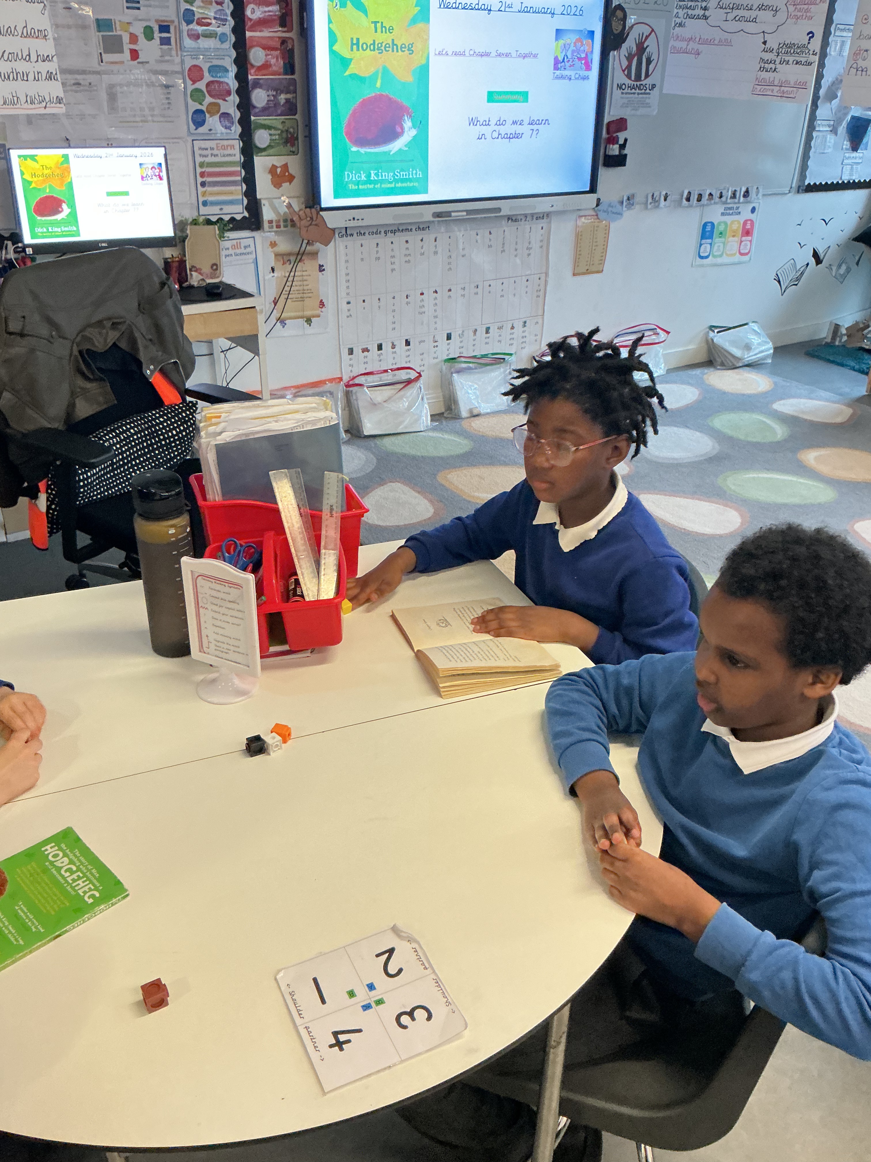 This term in reading comprehension, Year 3 have been using Kagan Talking Chips to share ideas and predictions for The Hodgeheg and The Boy Who Grew Dragons. Each child places a chip in the middle before speaking, making sure everyone gets a turn. This Kagan stragegy encourages careful listening, respectful turn-taking, and thoughtful responses, helping all pupils gain confidence and contribute meaningfully to discussions.