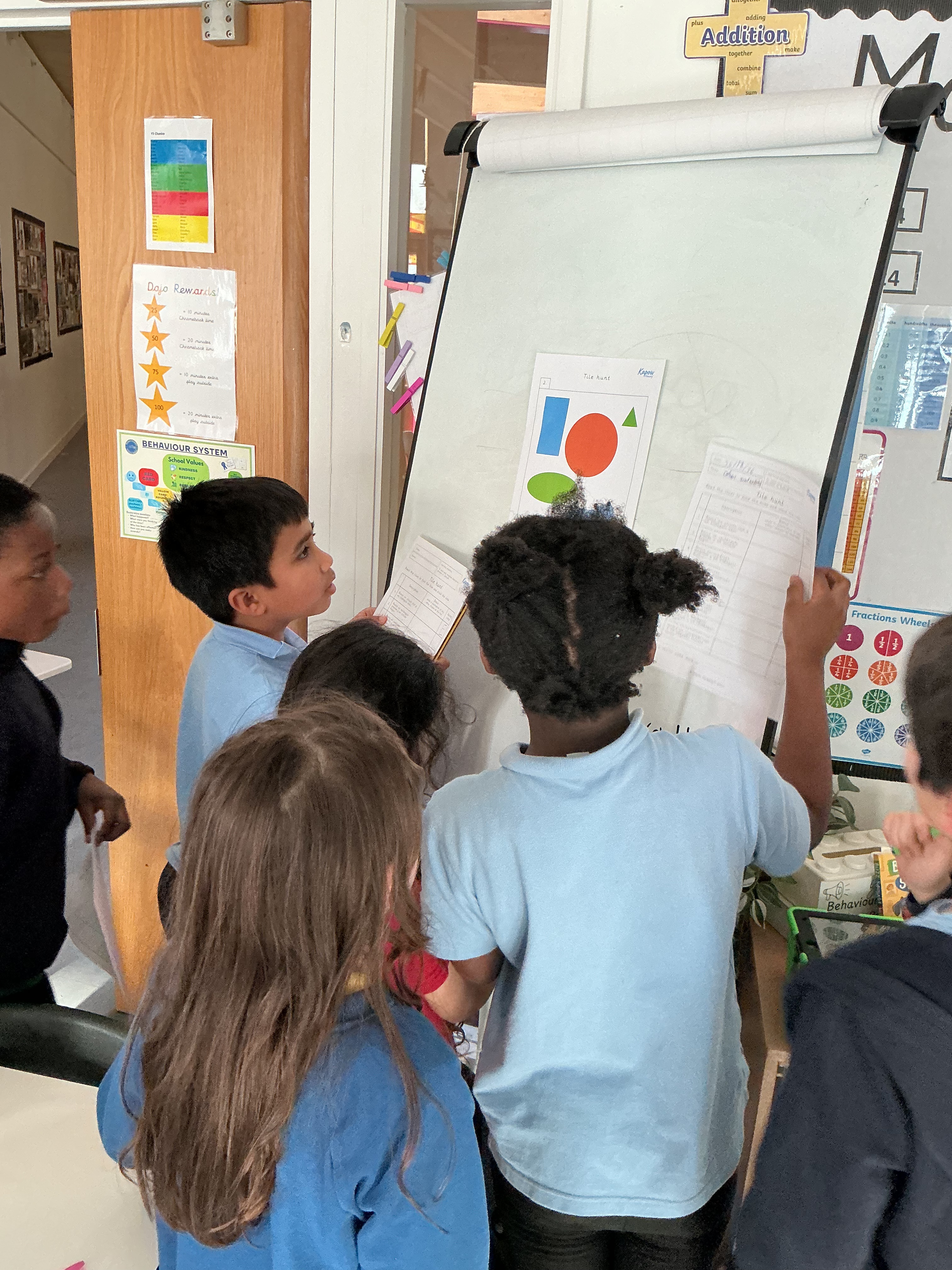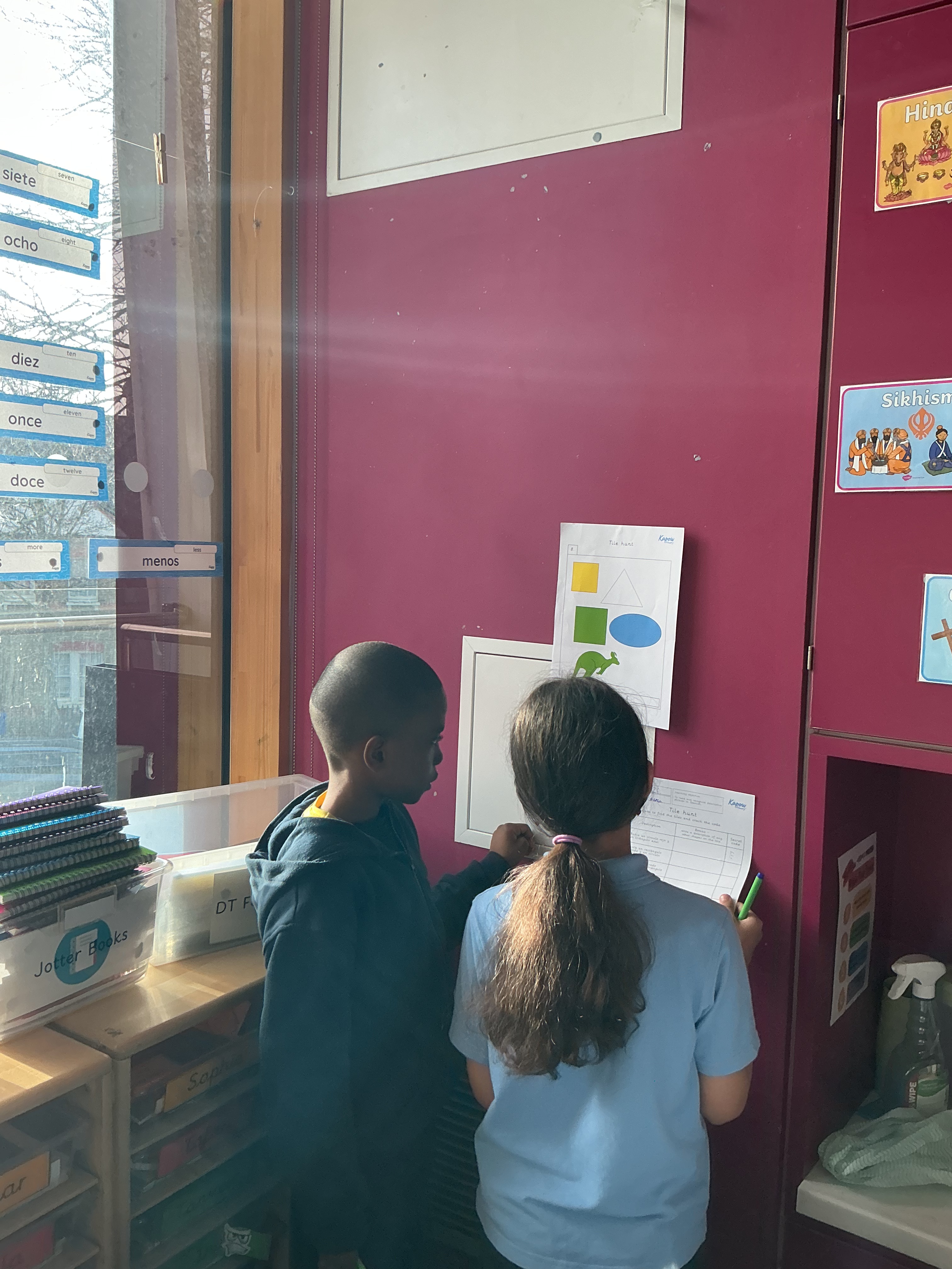 In Spanish, the class took part in an exciting tile hunt around the classroom! Using their knowledge of colours and shapes, the children followed clues to find the right tiles. This fun, active game helped them practise vocabulary, solve problems, and work as a team.