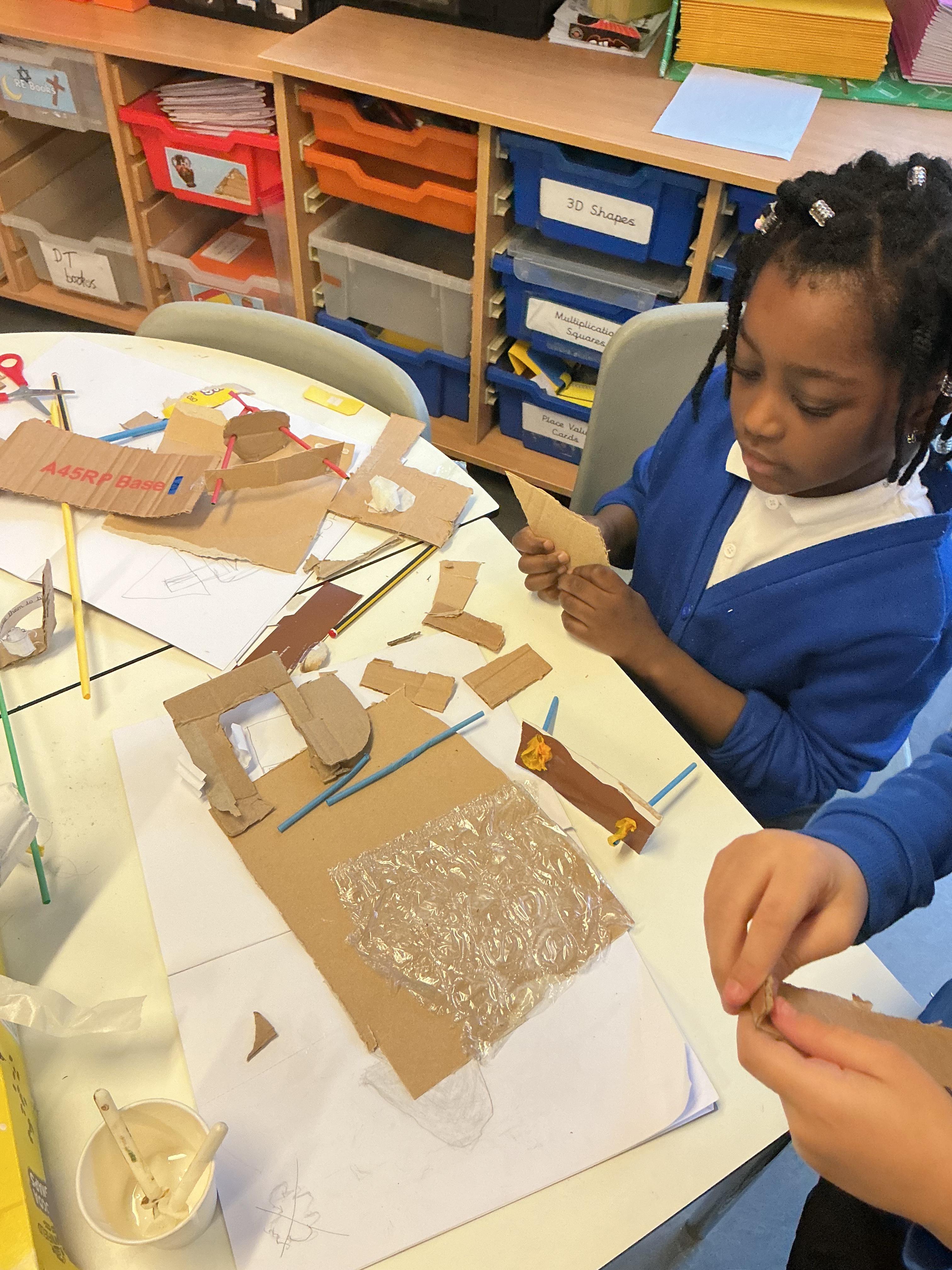 In Art this term, Year 3 created imaginative playground sculptures using cereal boxes and recyclable materials. The children explored sculpting techniques such as twisting, folding and rolling to turn flat card into exciting 3D forms.