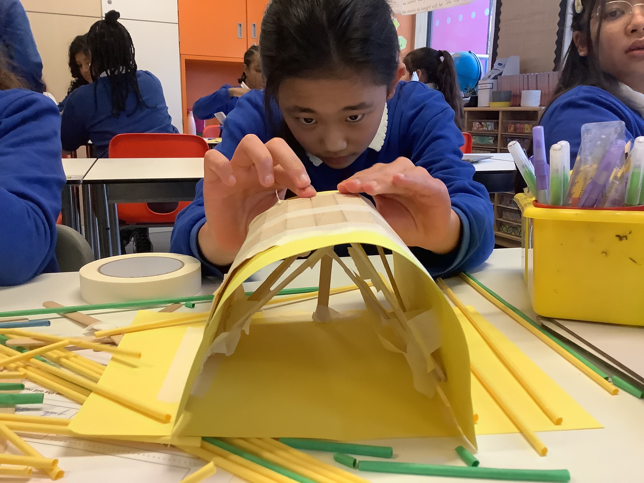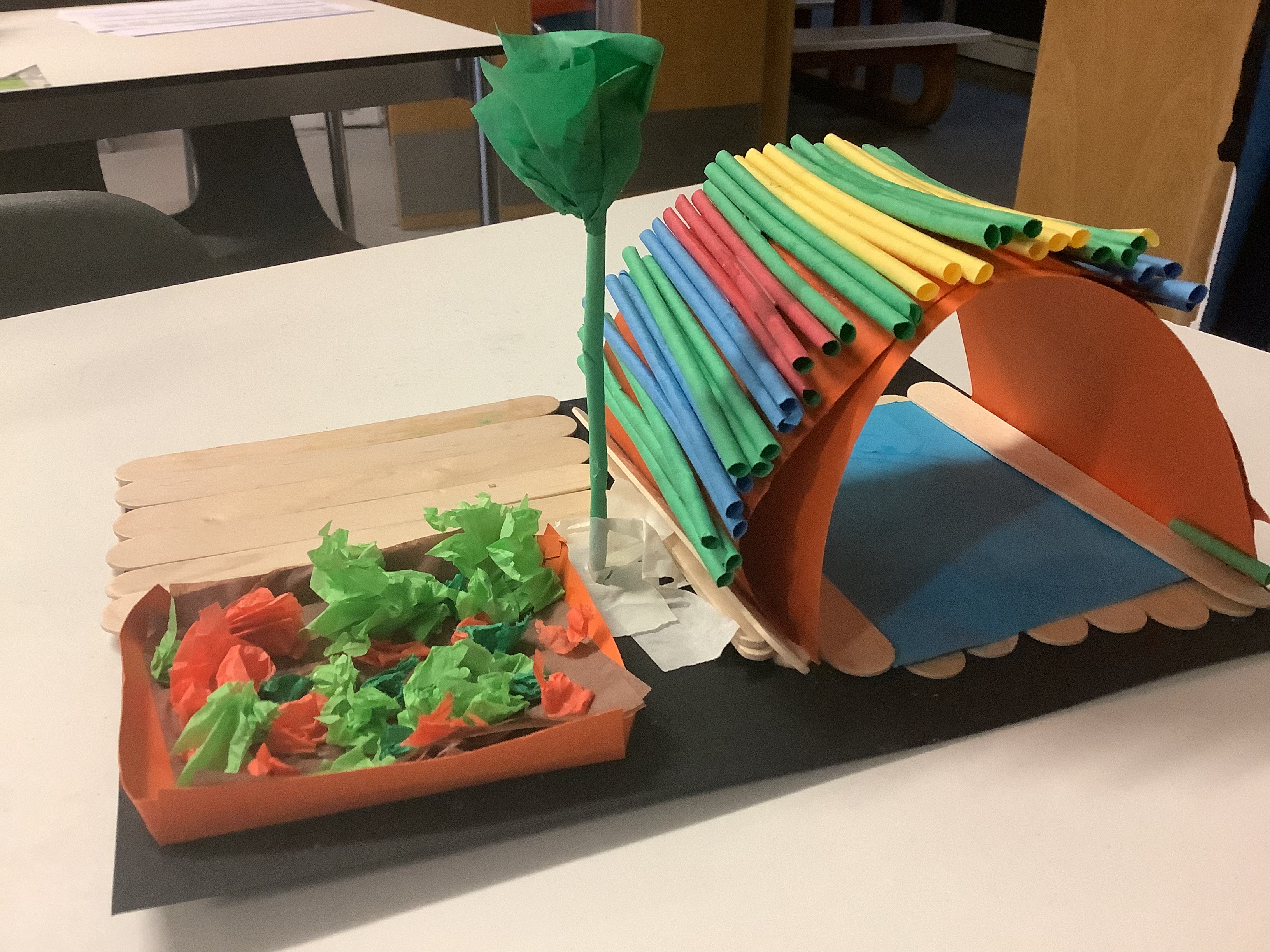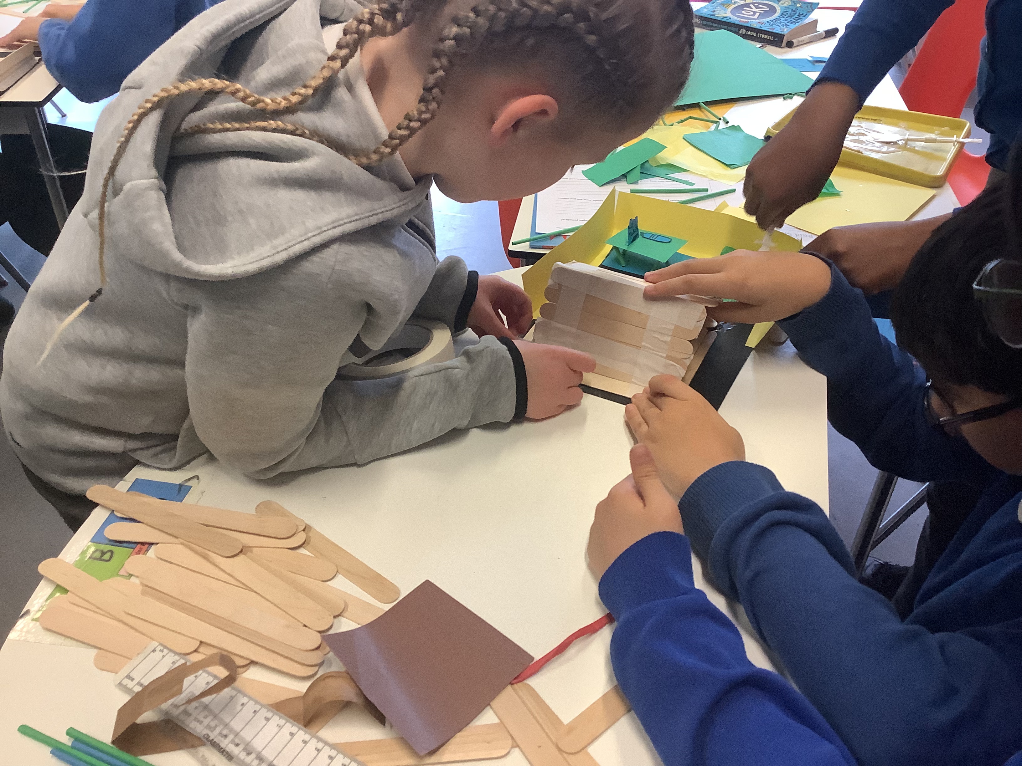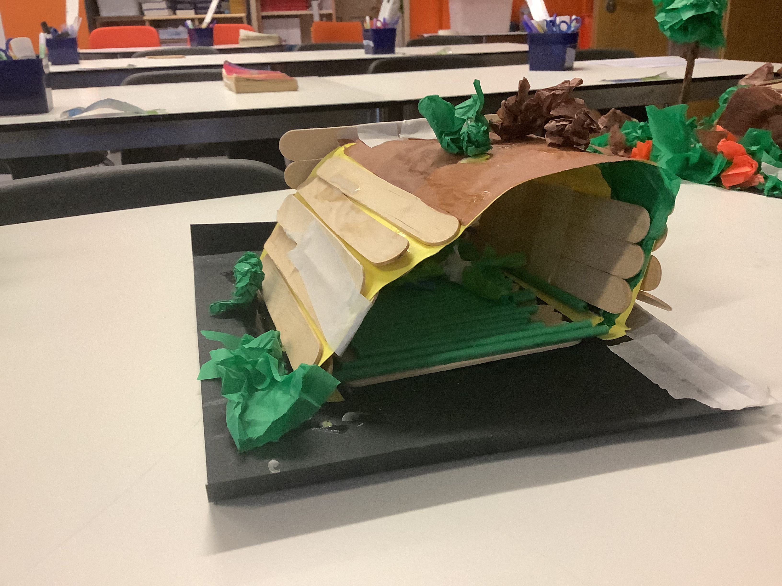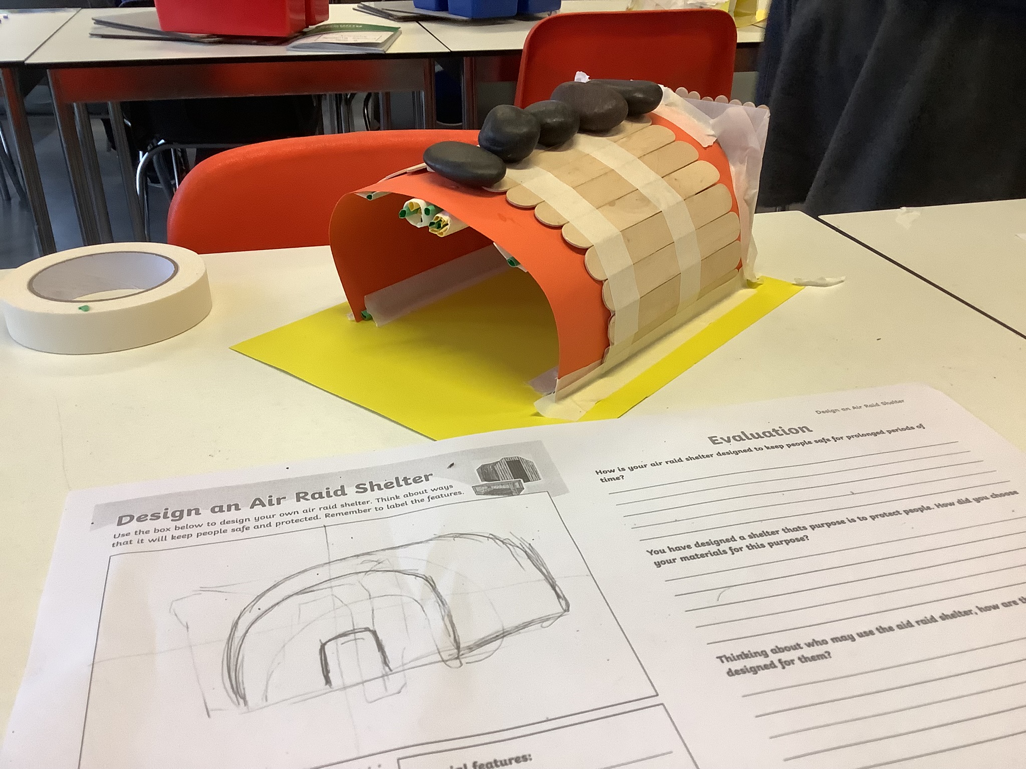 In year 6, we have been learning about World War Two in our history lessons. During a recent trip to the Imperial War Museum, we were amazed to see a life sized Anderson Shelter that was used to provided some safety during air raids. We were inspired to make our own using a range of resources like art straws, lolly pop sticks, card and tissue paper. Working in our kagan groups, we made sure that each member of our teams contributed by sharing out the tasks.