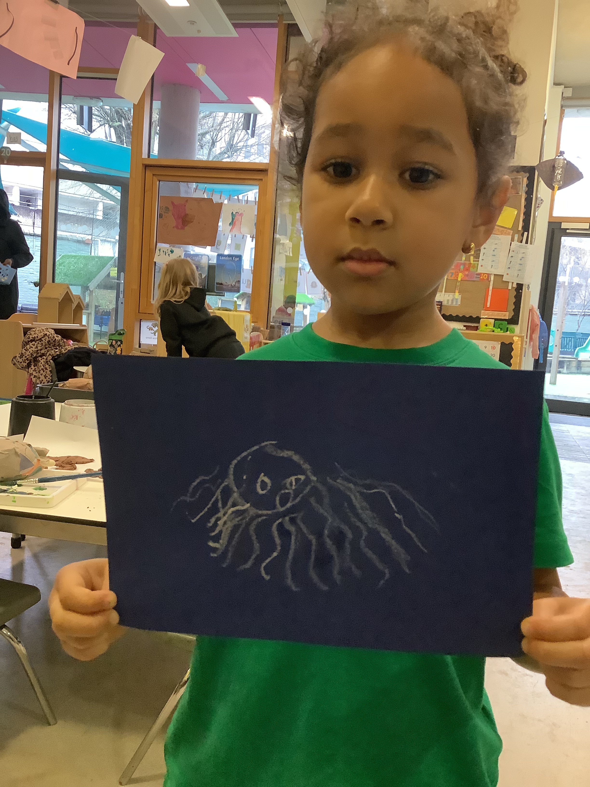 Our topic of Under the Sea has inspired so much creativity and curiosity. The children created beautiful drawings of sea creatures including starfish, turtles and crabs, carefully adding labels to their pictures. We were so impressed with their growing confidence in using their phonics to sound out words independently. Using plasticine, the children sculpted their own sea creatures such as starfish and orcas, thinking carefully about their features — tentacles, fins, flippers and tails. They enjoyed discussing textures and shapes while developing their fine motor skills. We also explored observational painting, looking closely at sea creatures and trying hard to represent their colours, patterns and details accurately. We became researchers by exploring a range of non-fiction books to learn fascinating facts about sea animals. The children were particularly interested in sharks! They learnt about their sharp teeth, powerful tails and how some species have several rows of teeth. We even labelled a diagram of a shark, identifying key parts of its body. The highlight of our half term was undoubtedly our visit to the Sea Life Aquarium. It was a surreal experience seeing so many incredible creatures up close. The children were amazed by the variety of life under the sea and spoke excitedly about what they had observed.