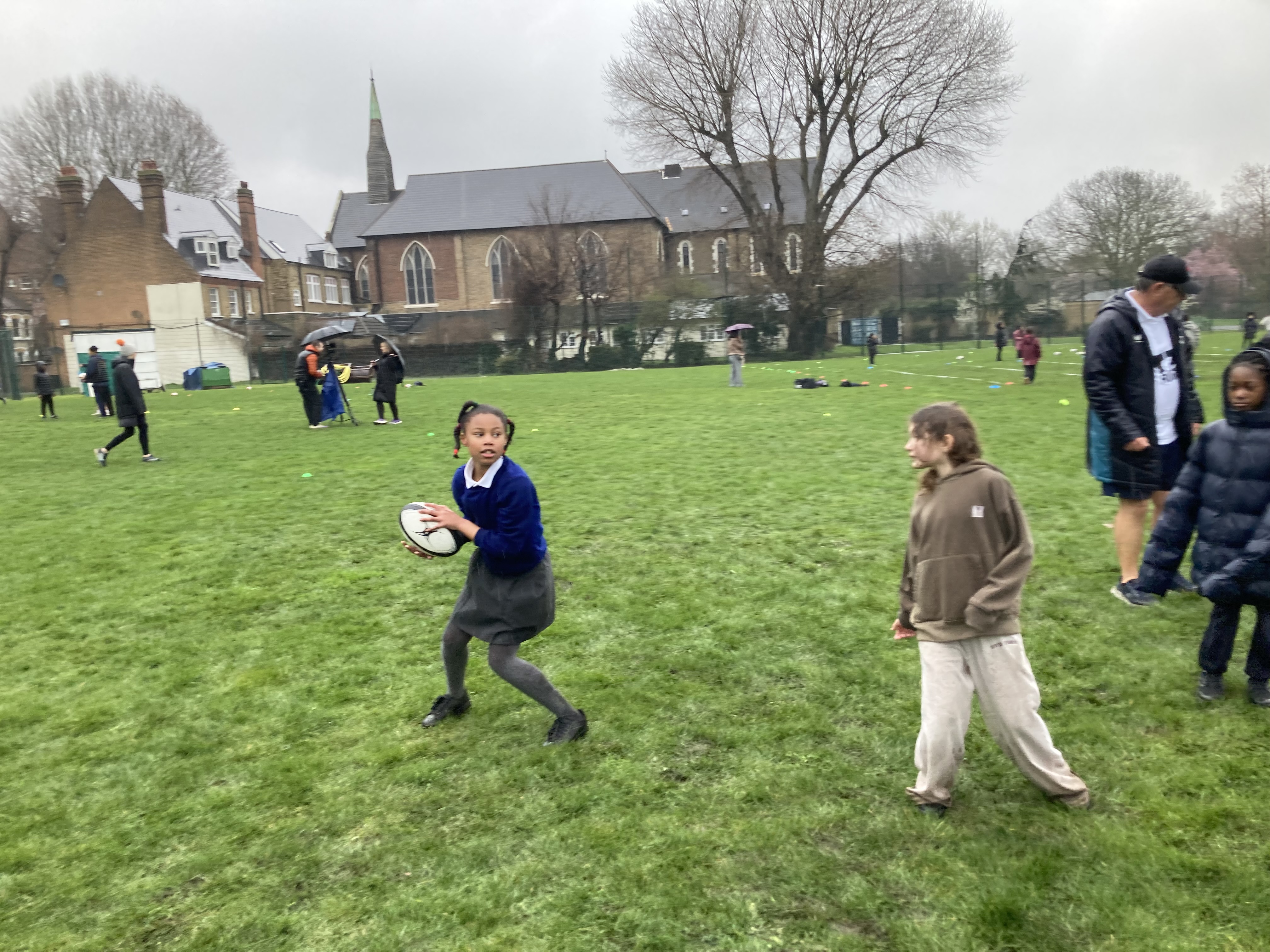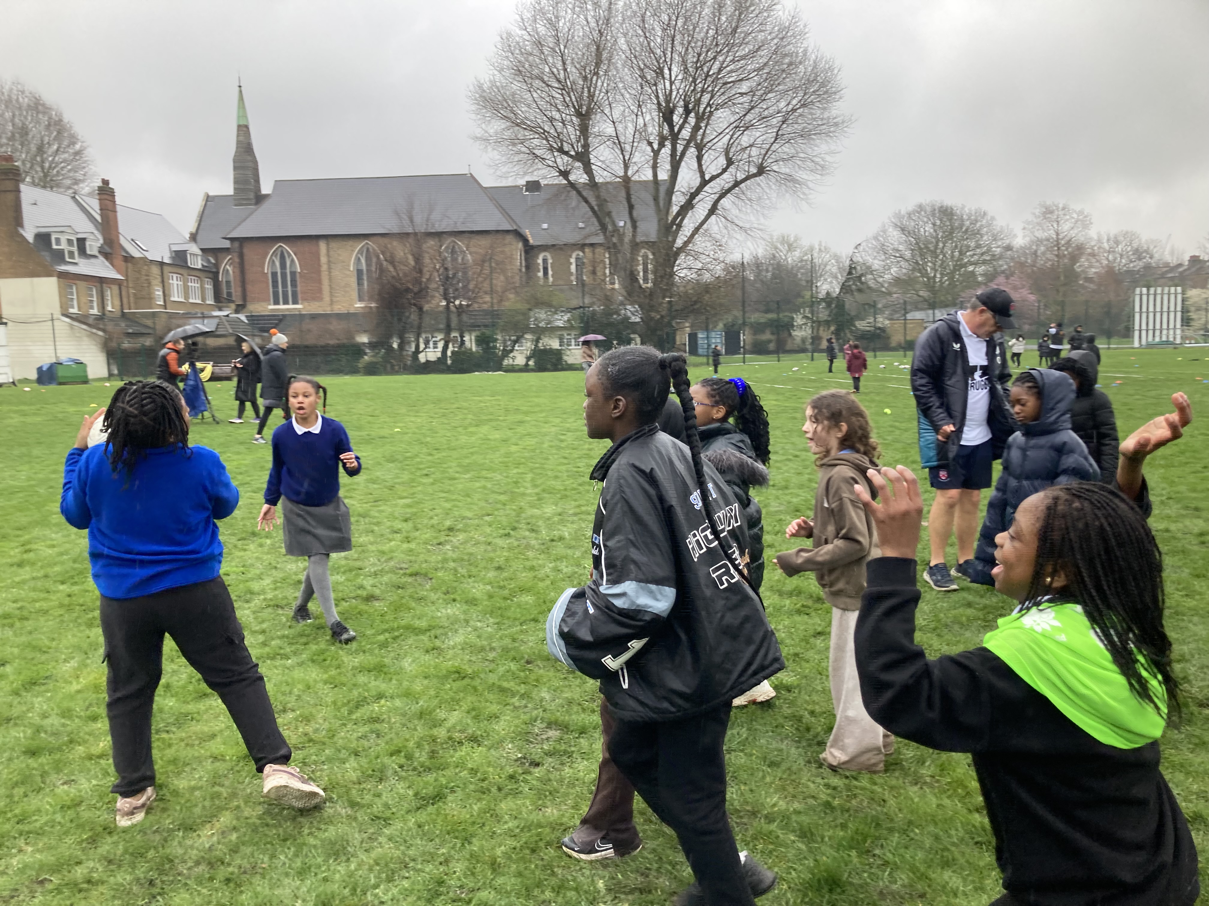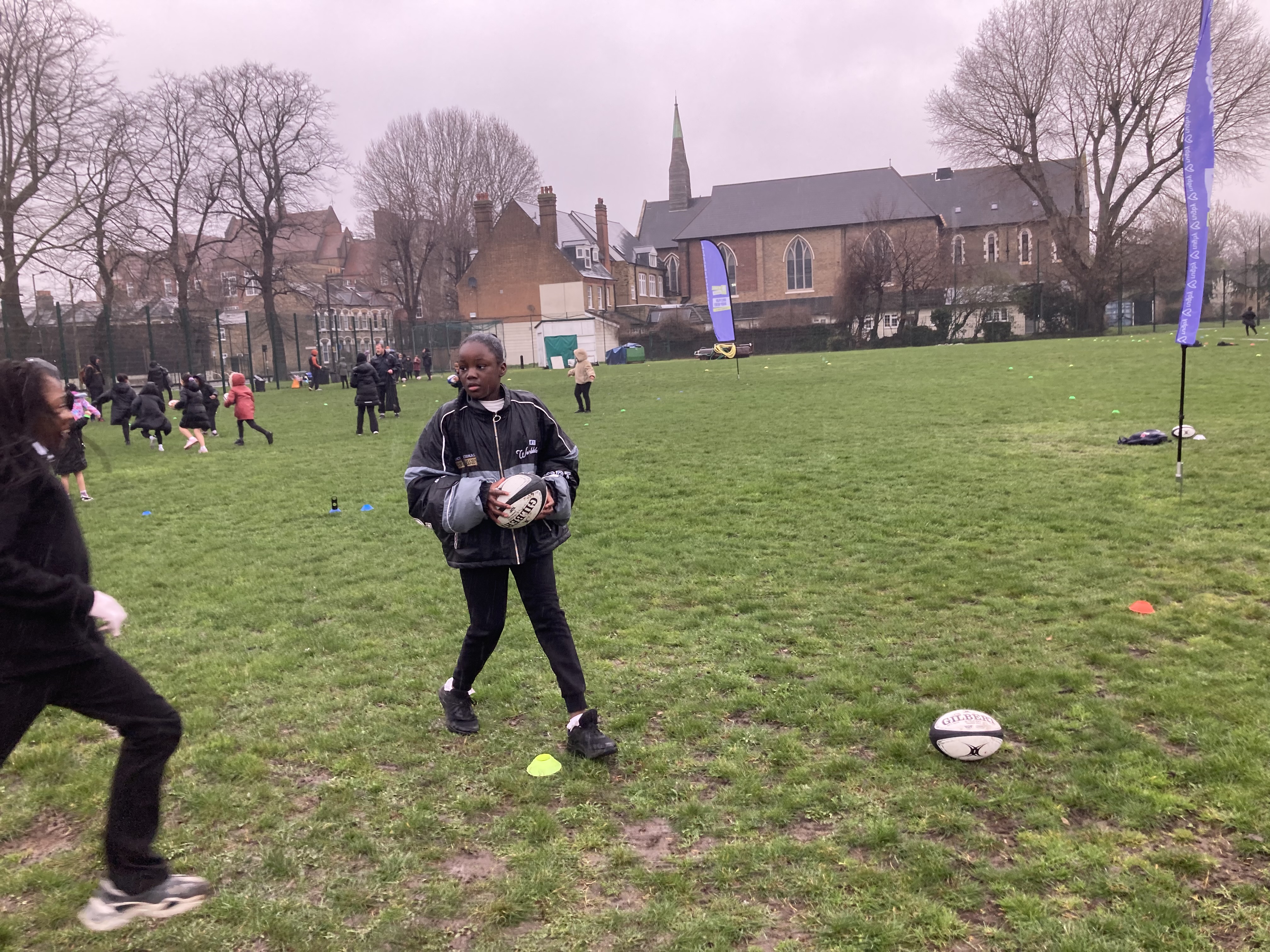 31 children from Year 4 and 5 were lucky enough to be selected to take part in a special event, teaching girls from schools all over Southwark the basic skills needed to play rugby. The event took place at Burgess Park and we were initially disappointed to find that it was a very rainy afternoon! However, all the children got really stuck in and demonstrated great resilience in the face of the damp weather.