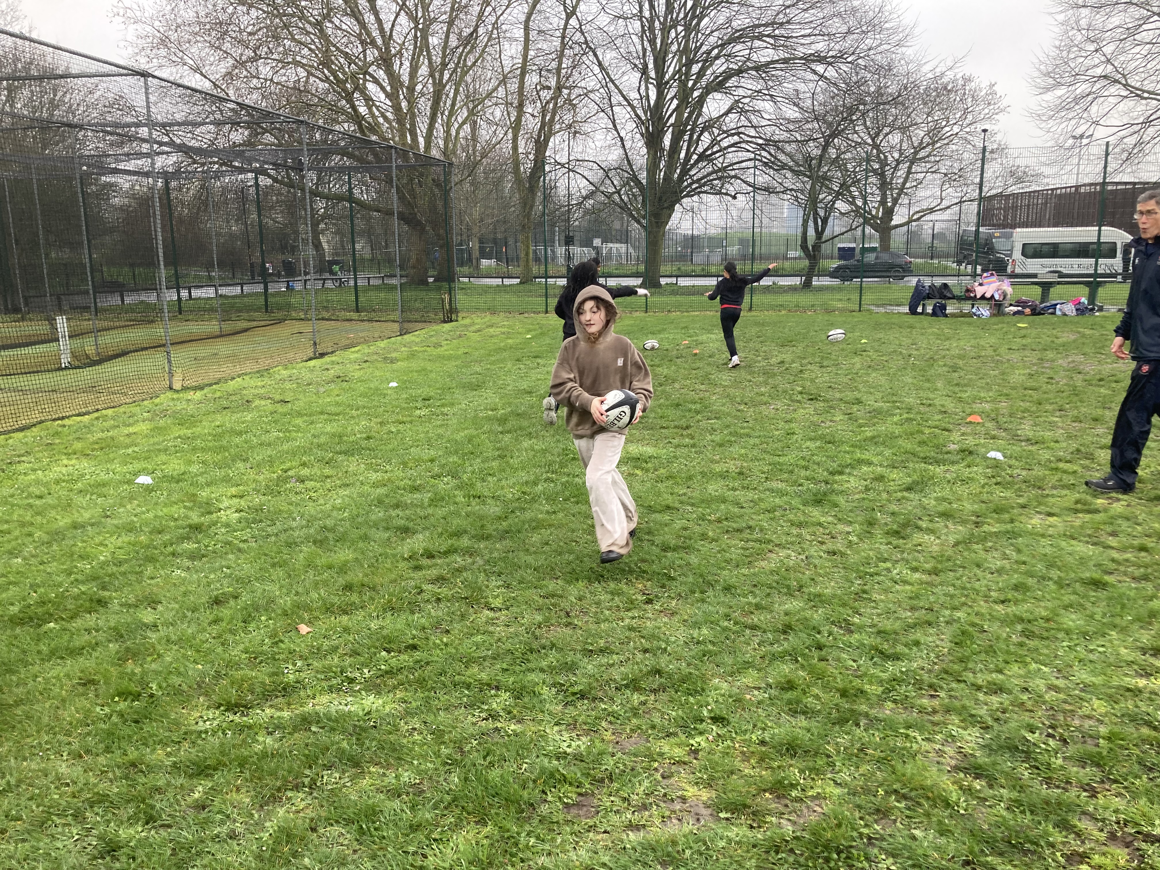 The groups rotated round several coaches who taught them different rugby skills, including dodging, passing, and finding space. Rugby is a sport we didn’t know much about so it was great to learn some new skills.