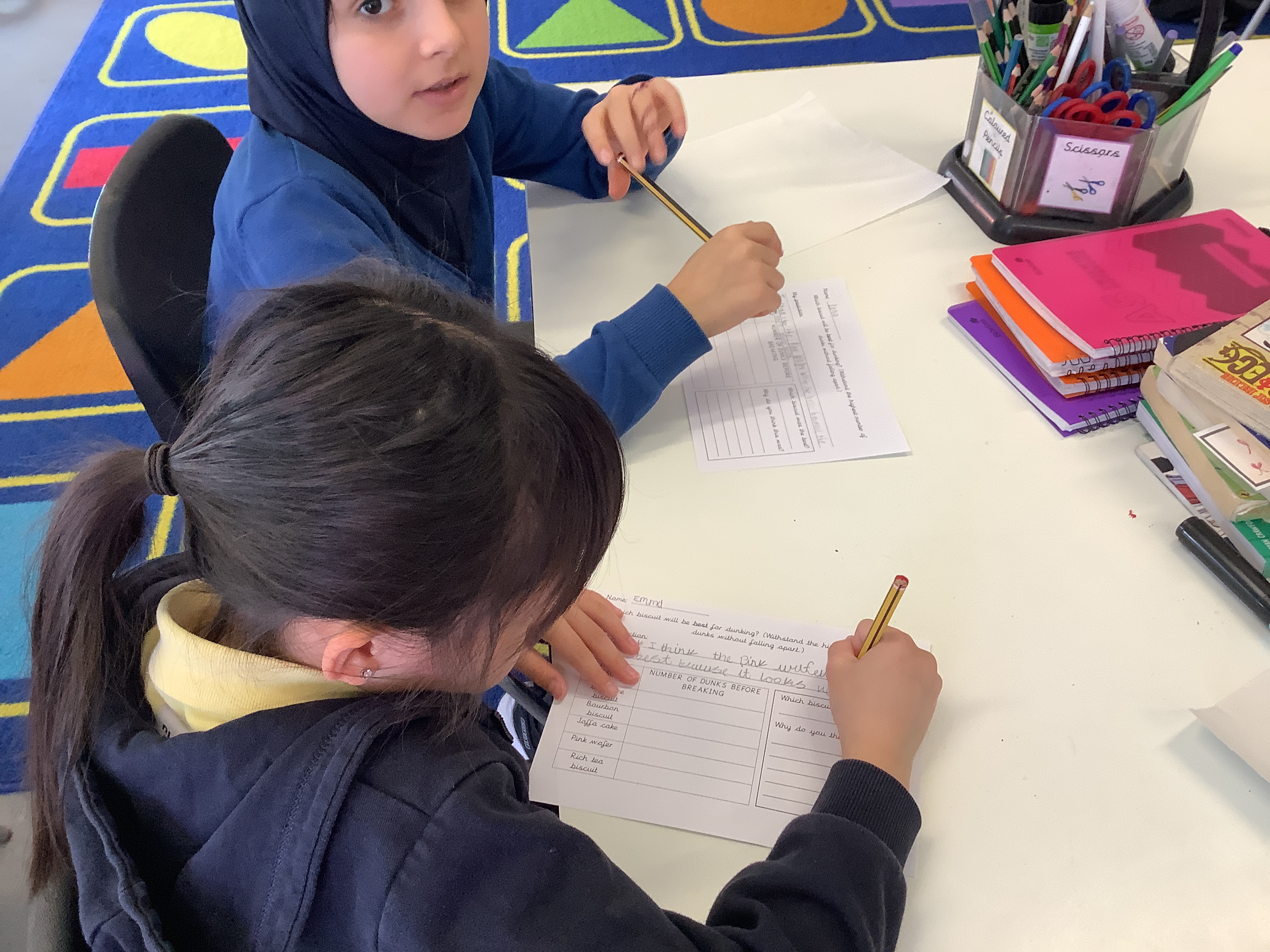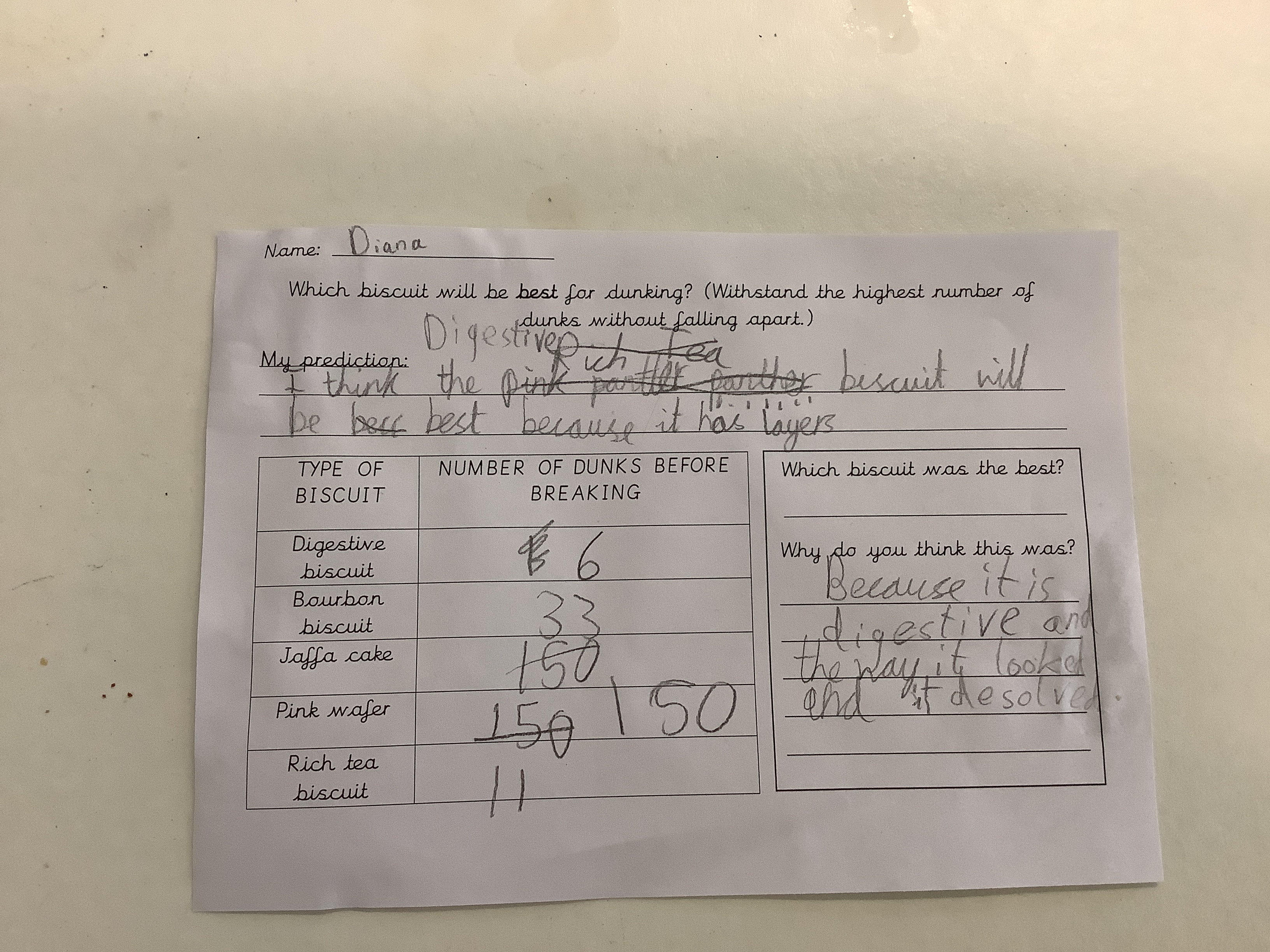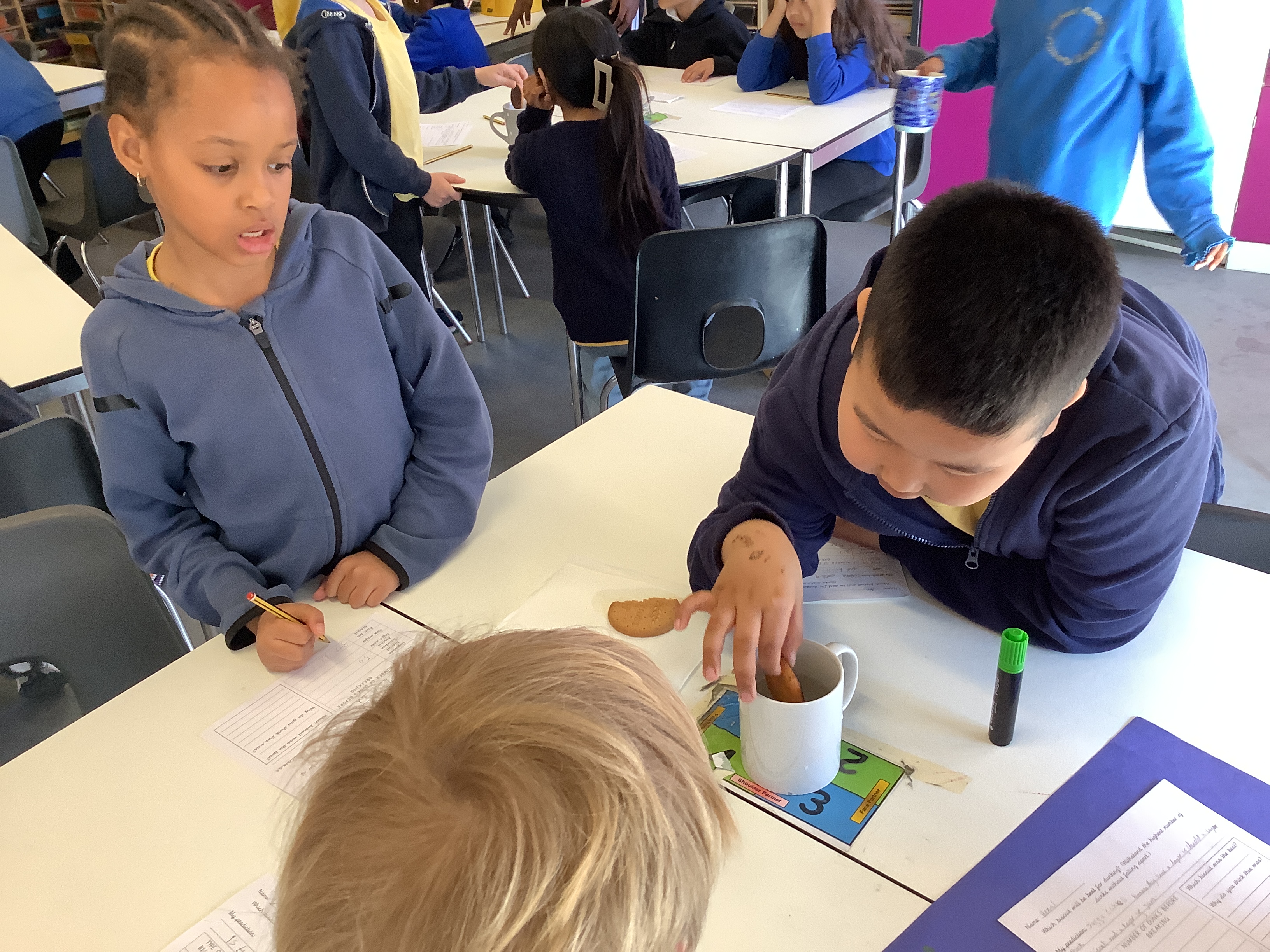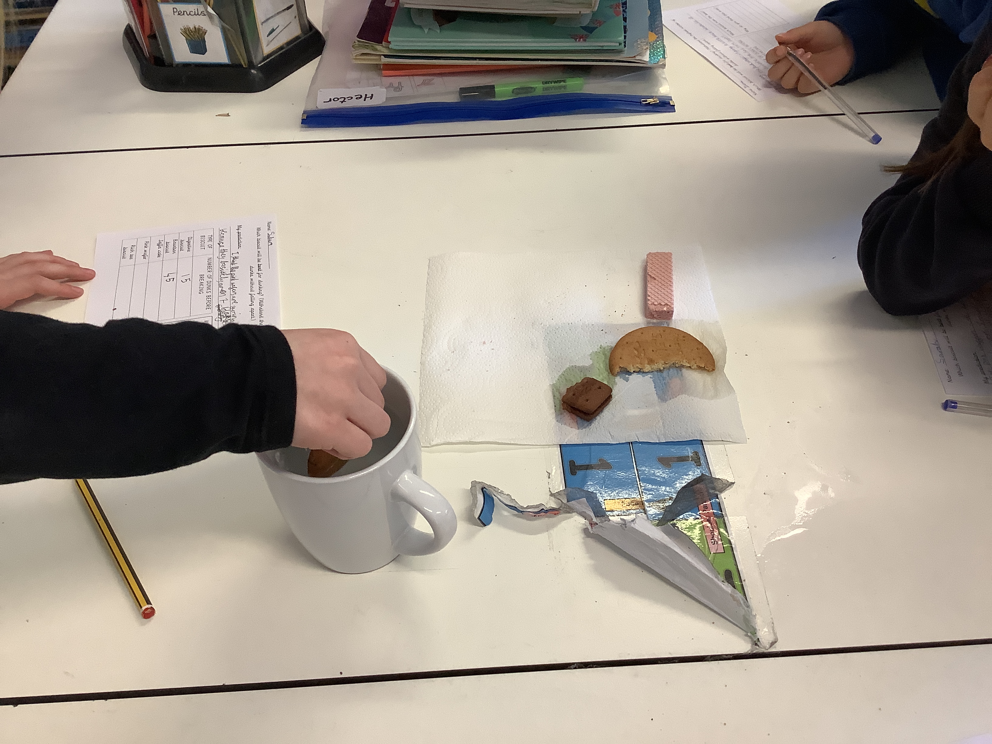 During Science Day, Year 5 tested the VERY important question, “Which biscuit is best for dunking in tea?”
